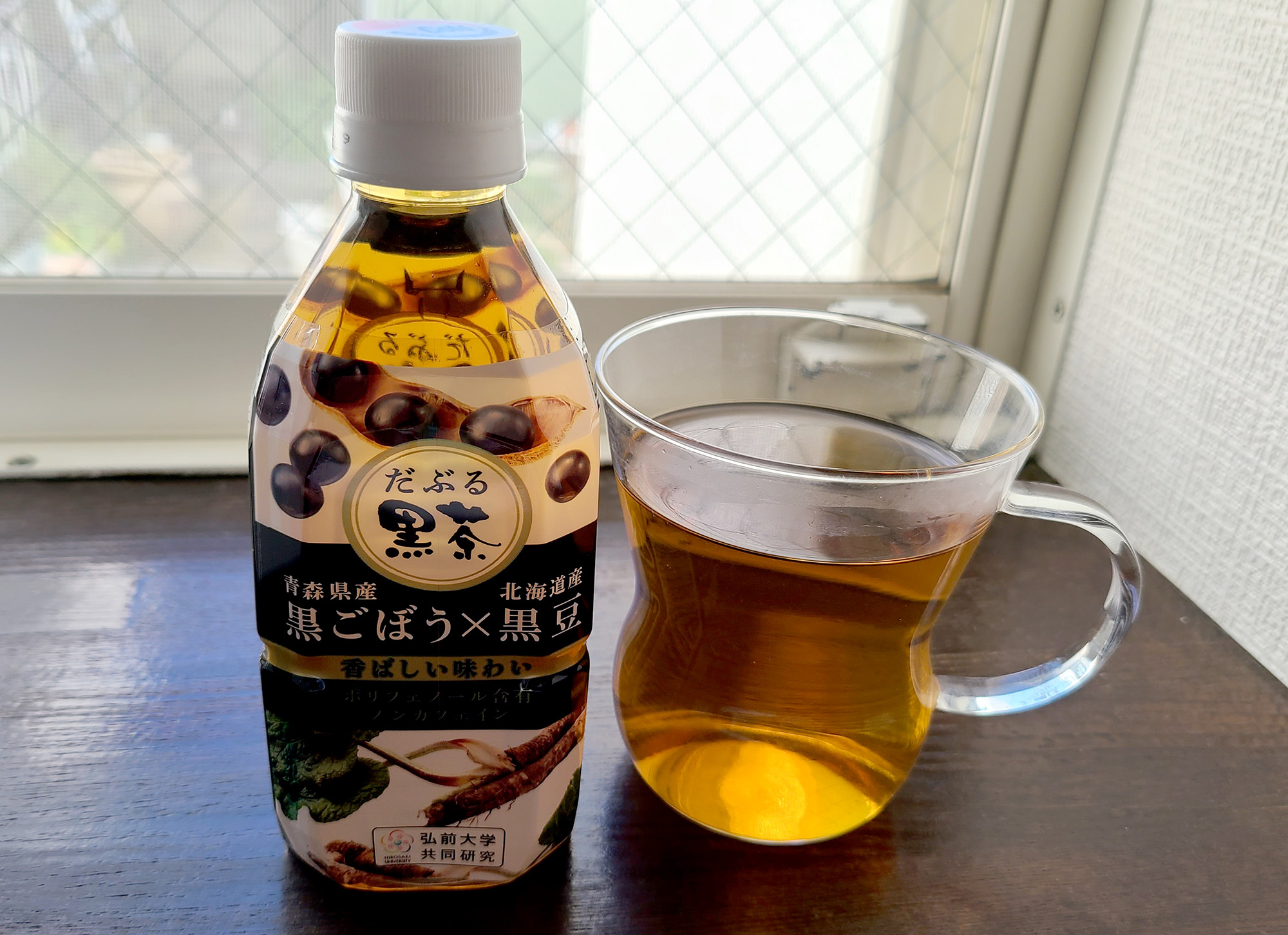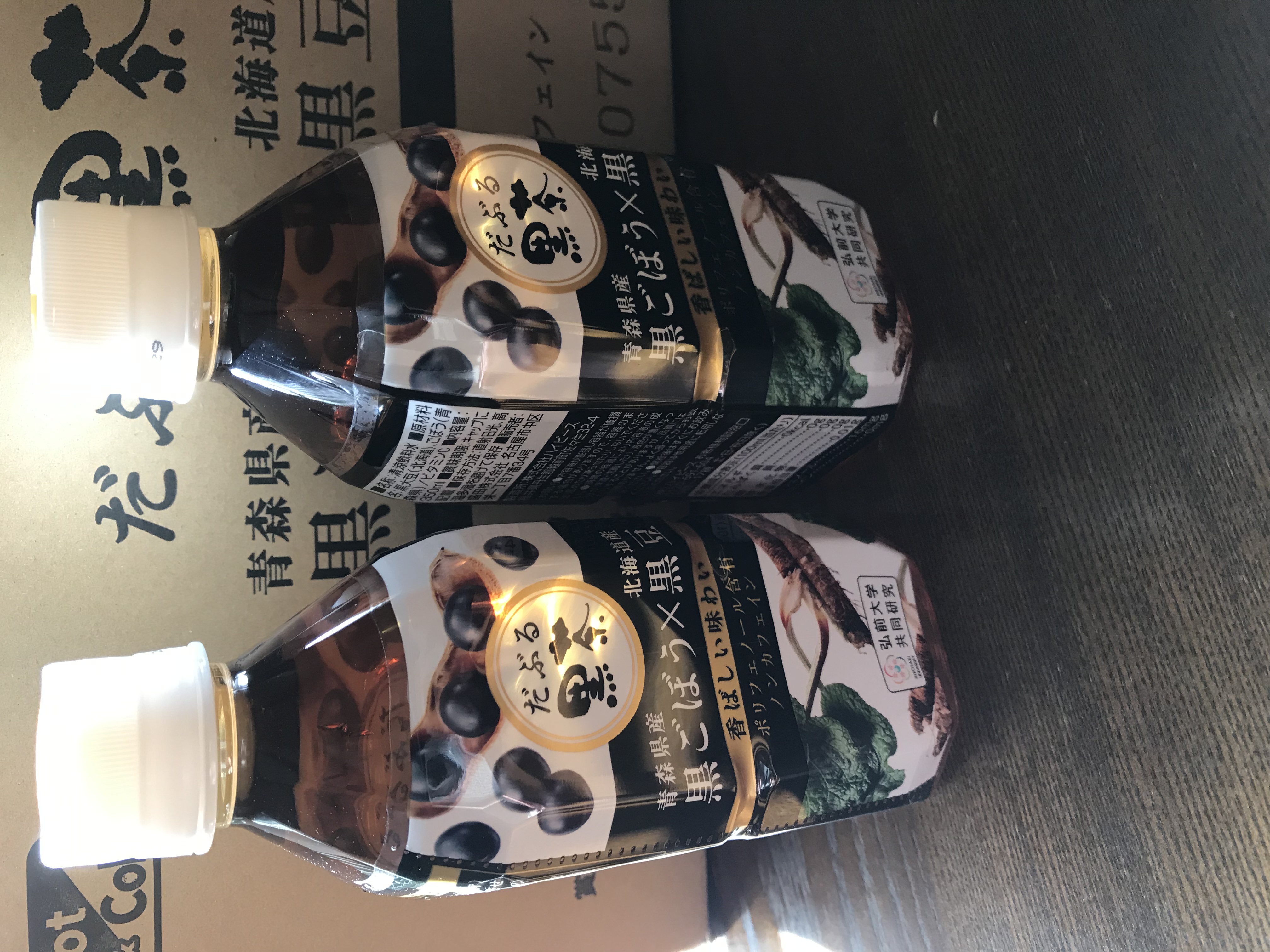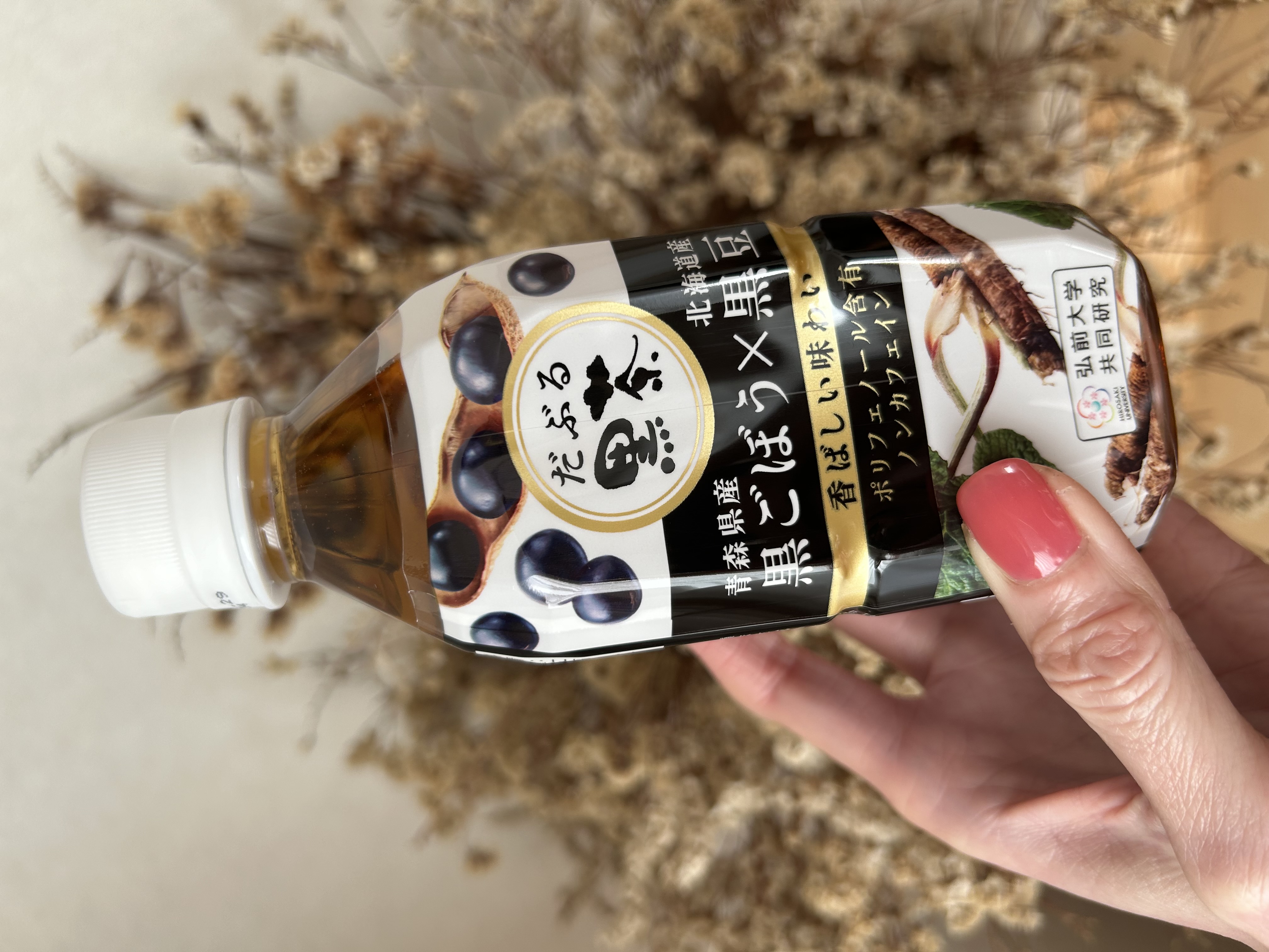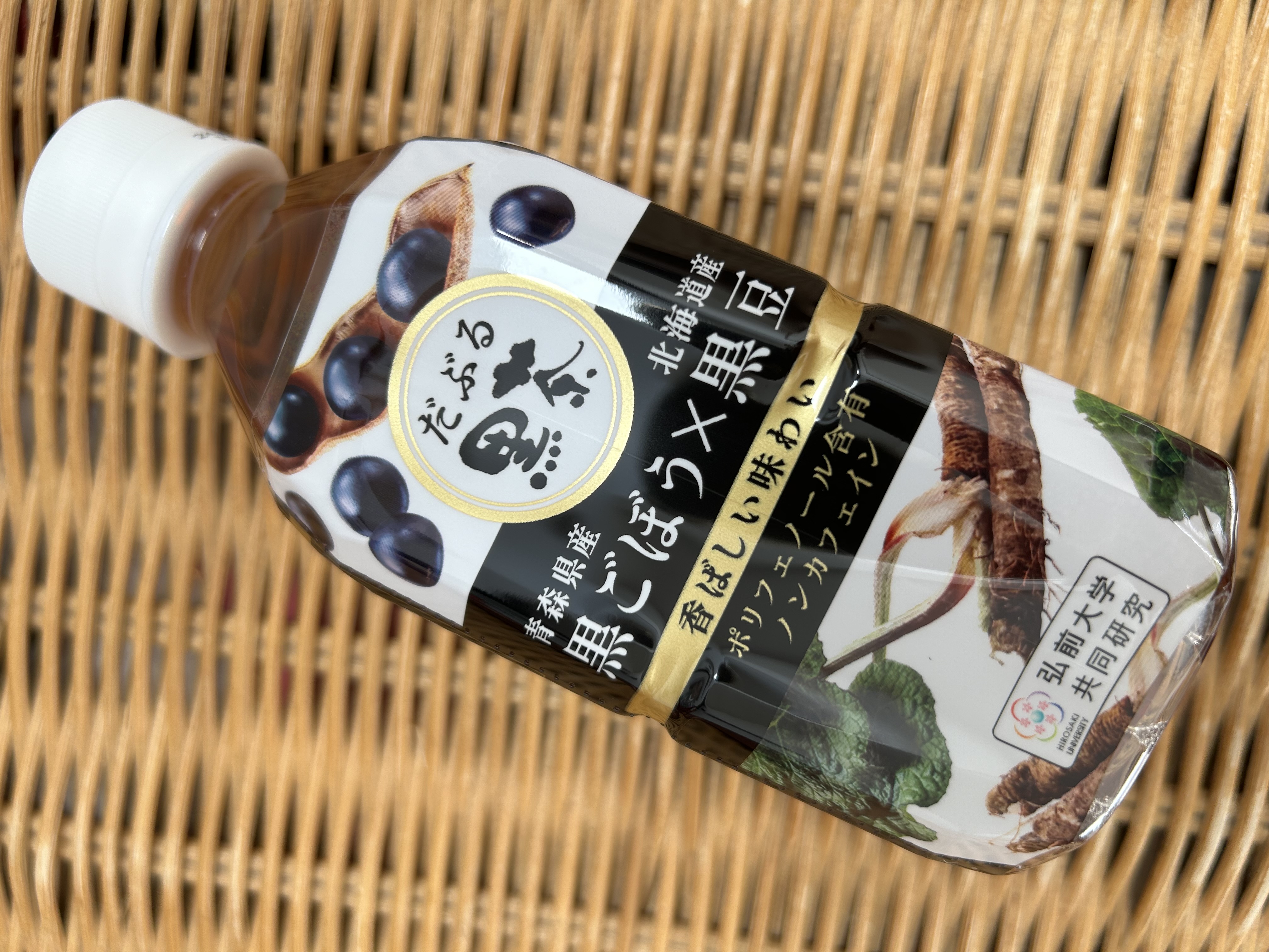 北海道産の黒豆と青森県産の黒ごぼうをブレンドした「黒ごぼう×黒豆茶」です。通常のごぼうを独自技術の製法で黒ごぼうにしています。ごぼう特有の泥臭さは抑えているので香ばしく、黒豆の優しい甘みを感じる商品。ノンカフェイン飲料でポリフェノール含有しています。350mlのペットボトル入りなので、持ち運びにも便利です。