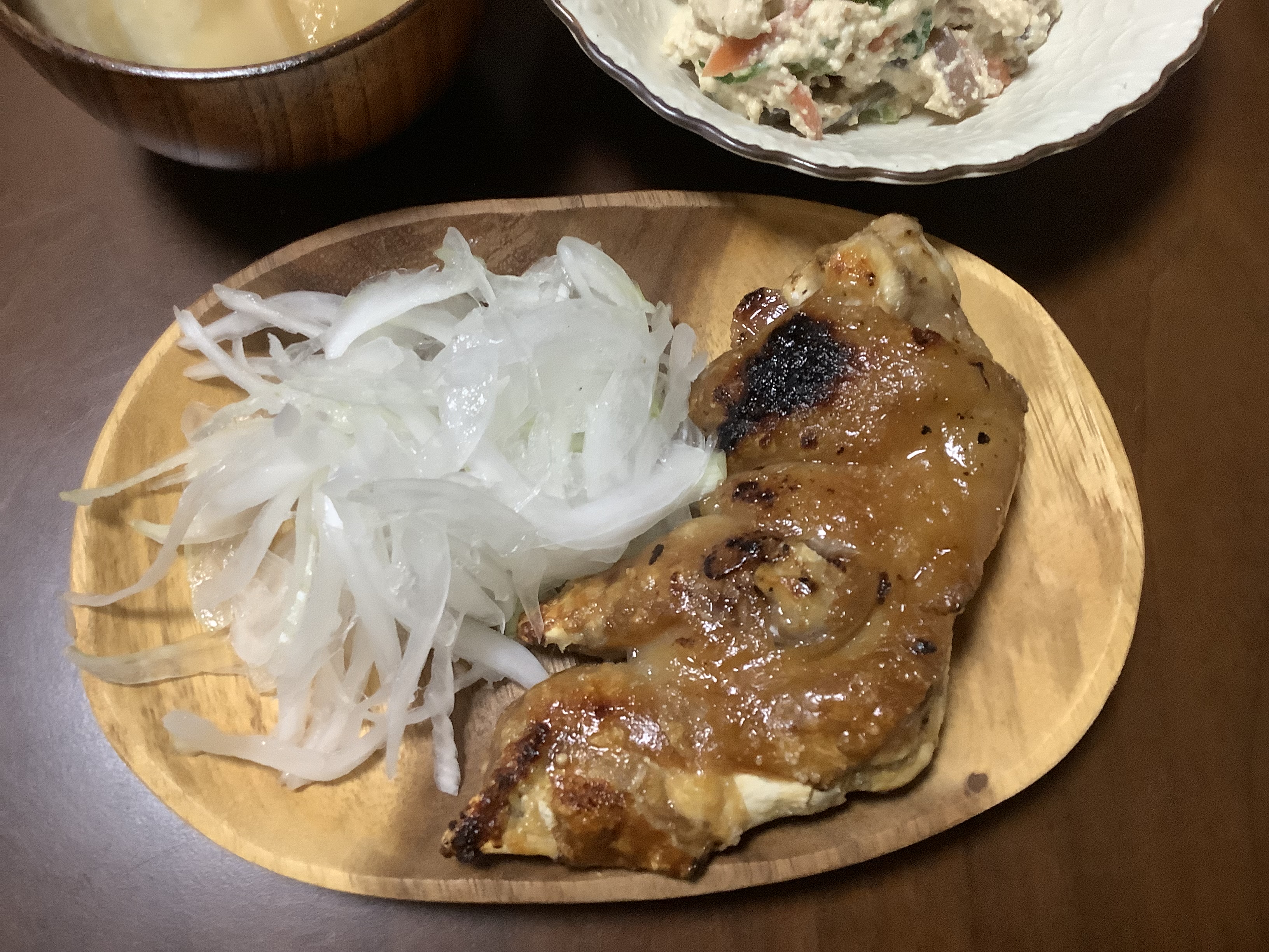 湯煎してから炙ってにんにく醤油特製スパイスは湯煎してからフライパンで焼きました。