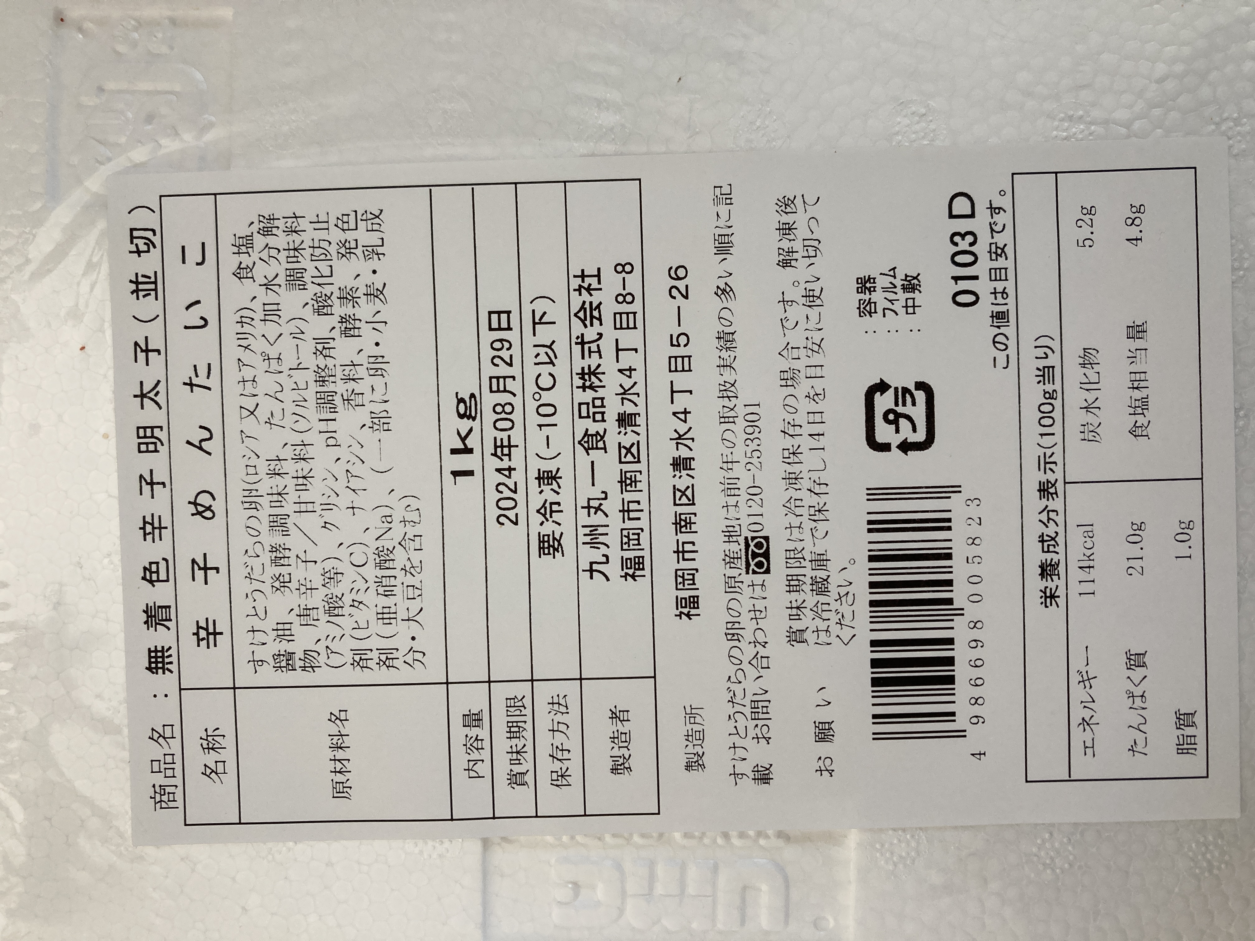 キレ旨明太子1kg 無着色辛子明太子 切れ子