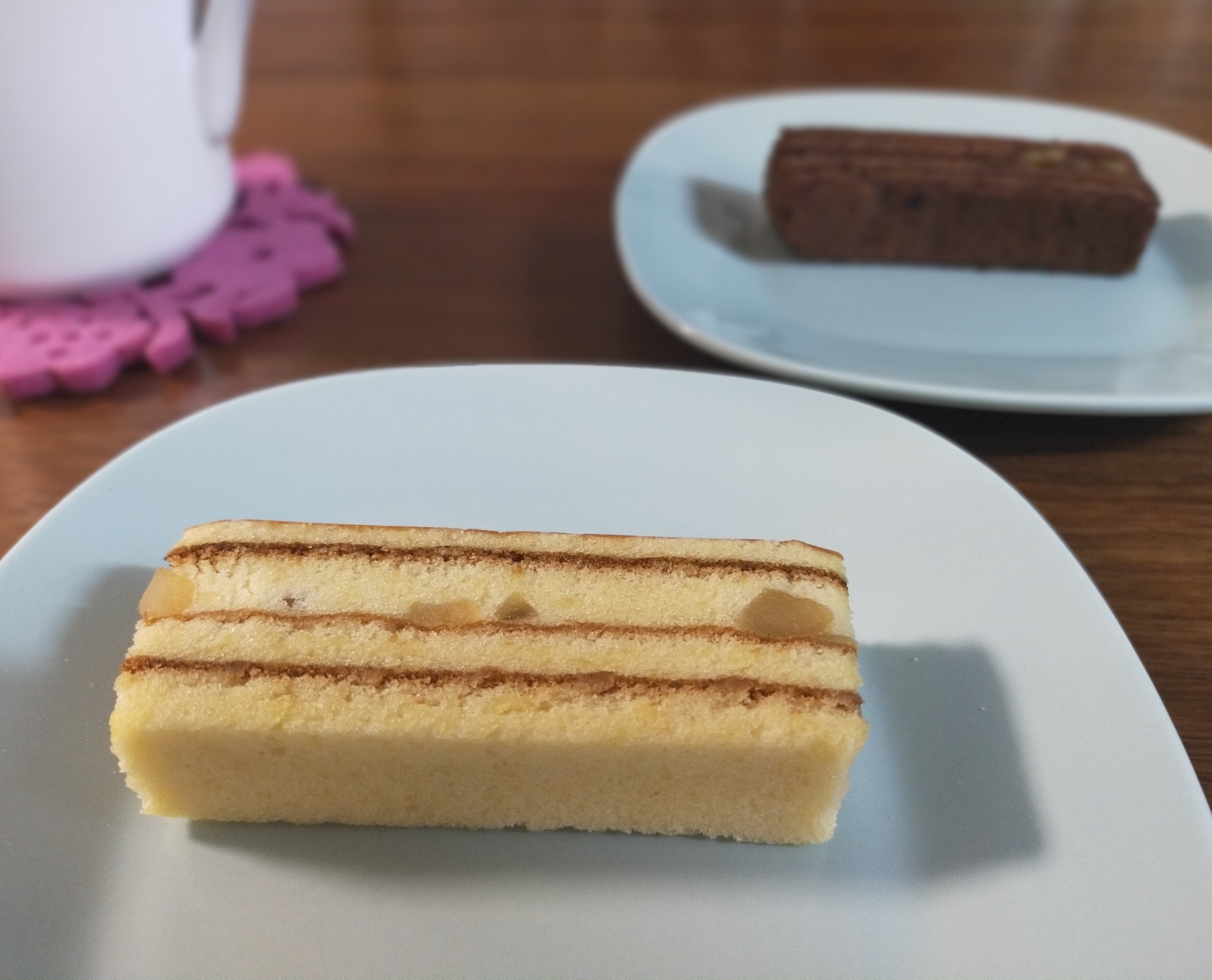 チョコが染み渡ったようなしっとりとしたチョコレート生地と、ラム酒に漬け込んだドライオレンジが相性抜群です。オレンジのほのかな苦味がチョコとマッチし、どこか高貴で香り高いフレーバーです。チョコレート生地が甘すぎずすっきりとした後味で、カカオの風味とオレンジの爽やかな香りの余韻がクセになる大人も喜ぶチョコスイーツです。