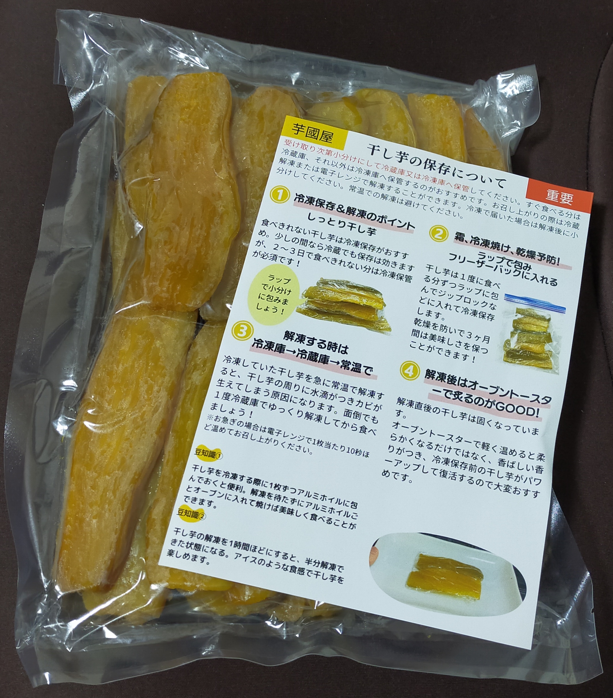干しいも好きの実家の両親にも半分お裾分けして、食べきれないのは冷凍してねと伝えましたが、同じく冷凍するまで残ってないとの返事でした。