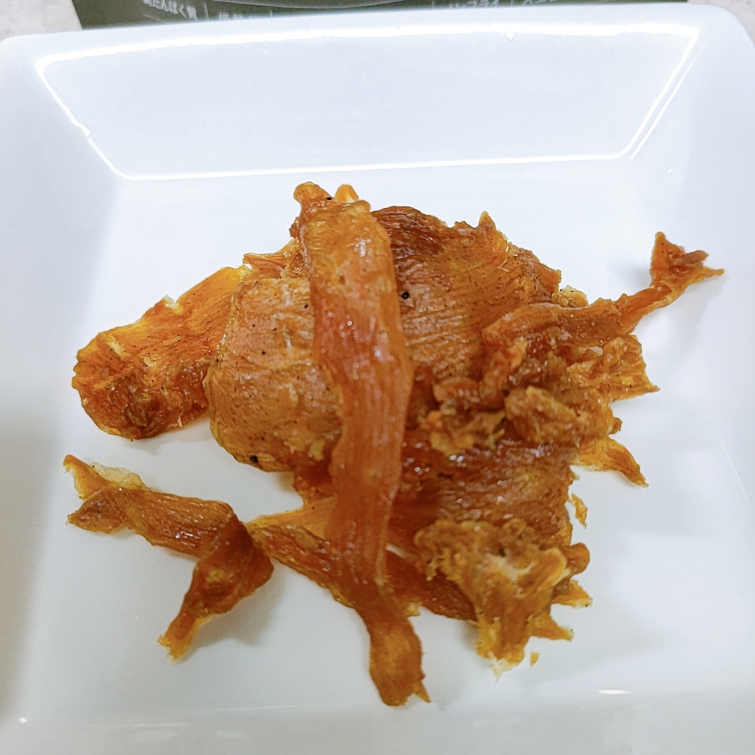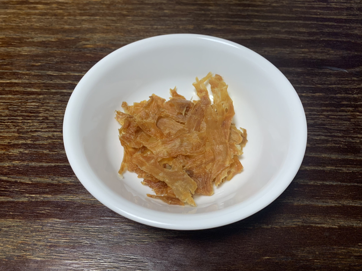 国産若鶏の胸肉を100%使用し、極限まで丁寧に乾燥しローストしてあるチップスタイプなので薄くて軽くパリッとしています。