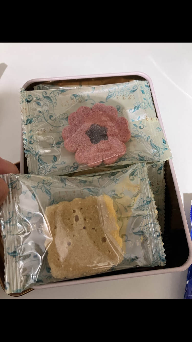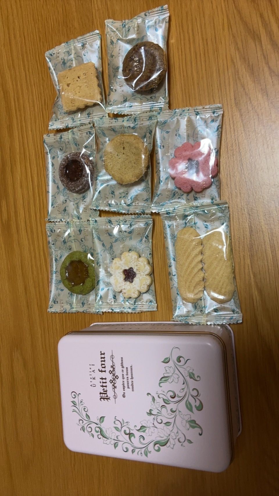 華やかな春を感じるようなデザインの缶で、開けると8種類の可愛いクッキーが入っていました!