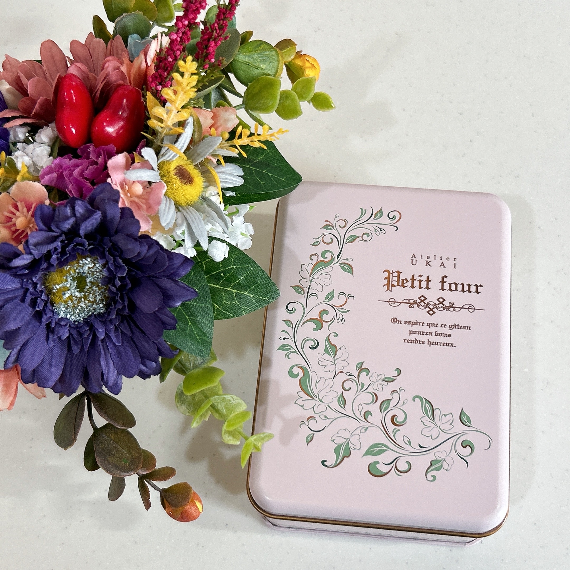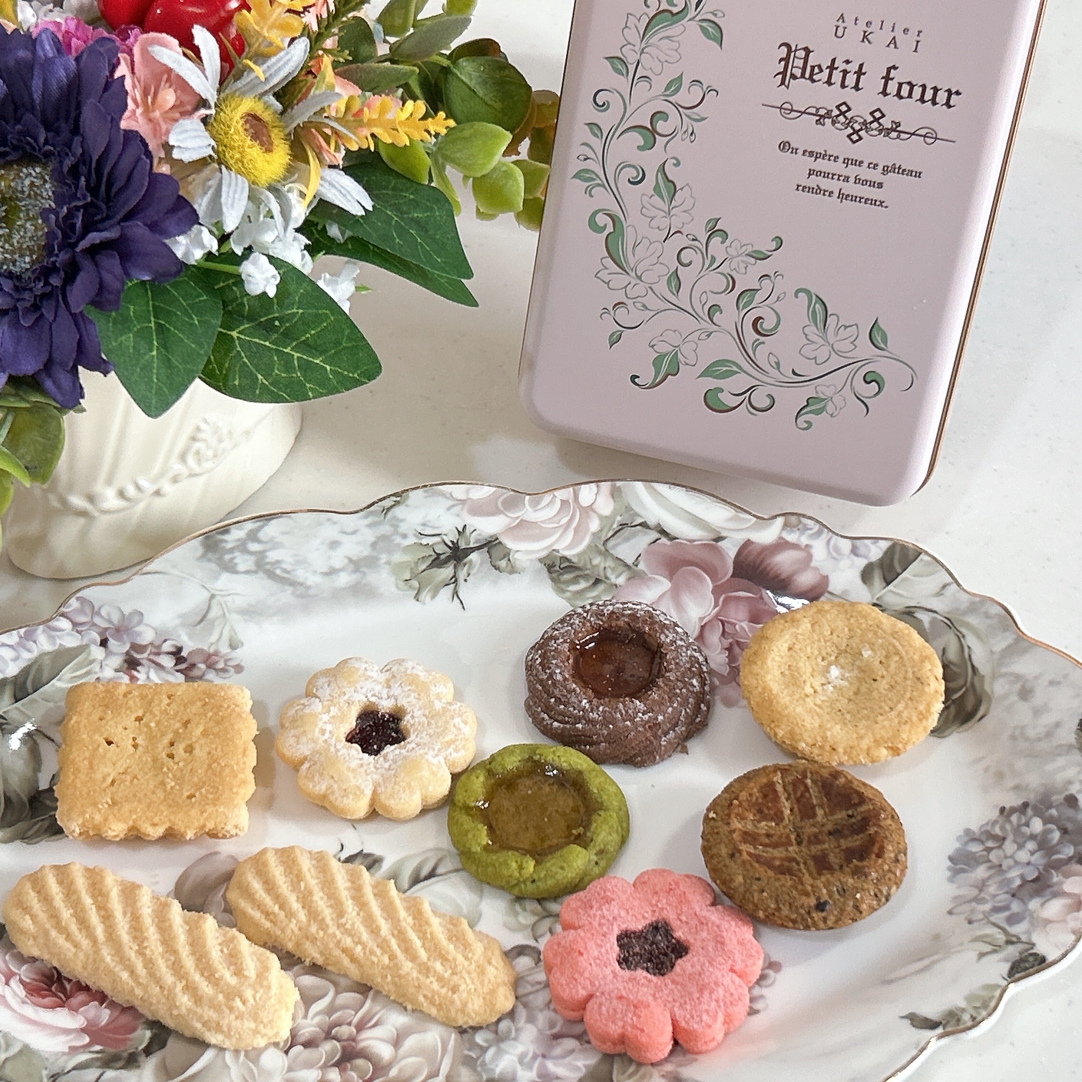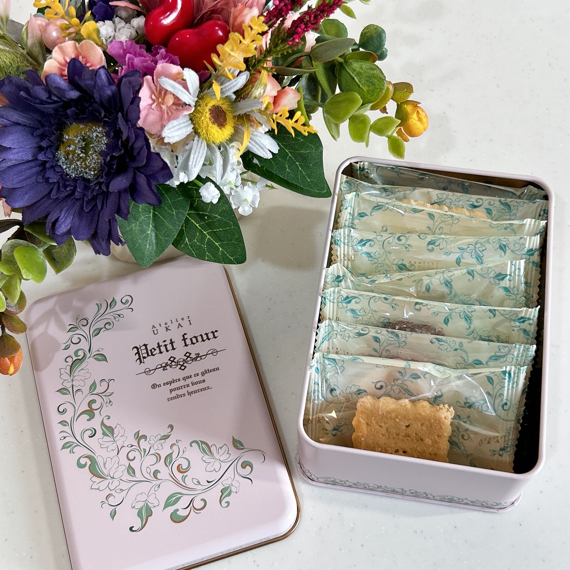 一枚一枚の味わいをじっくりと楽しみたい方や、初めてアトリエうかいのクッキーをお求めの方にもおすすめしたい8個入りのアソート缶です。ご友人やご家族と手軽に分け合えるのも個包装ならでは。エレガントなあしらいを施したパッケージも魅力の、幅広いシーンでご利用いただける一品です。