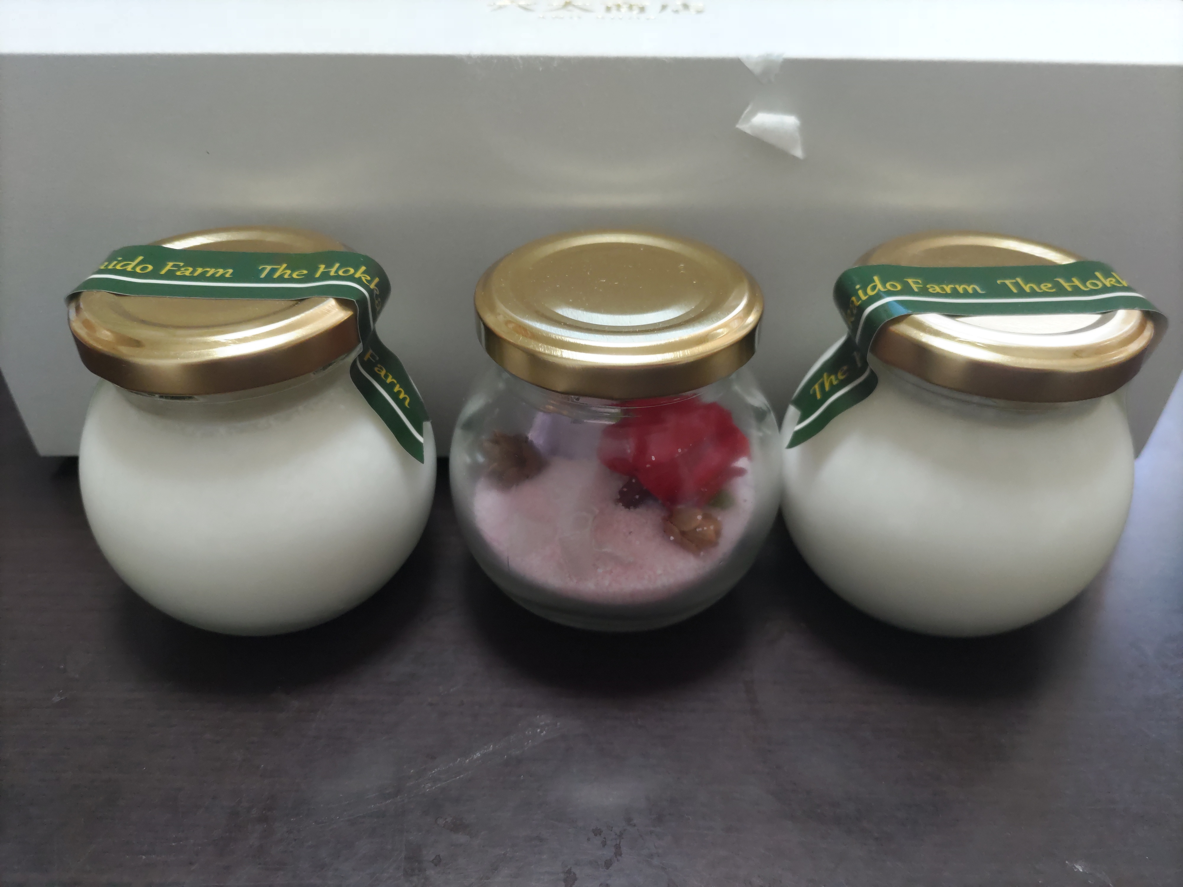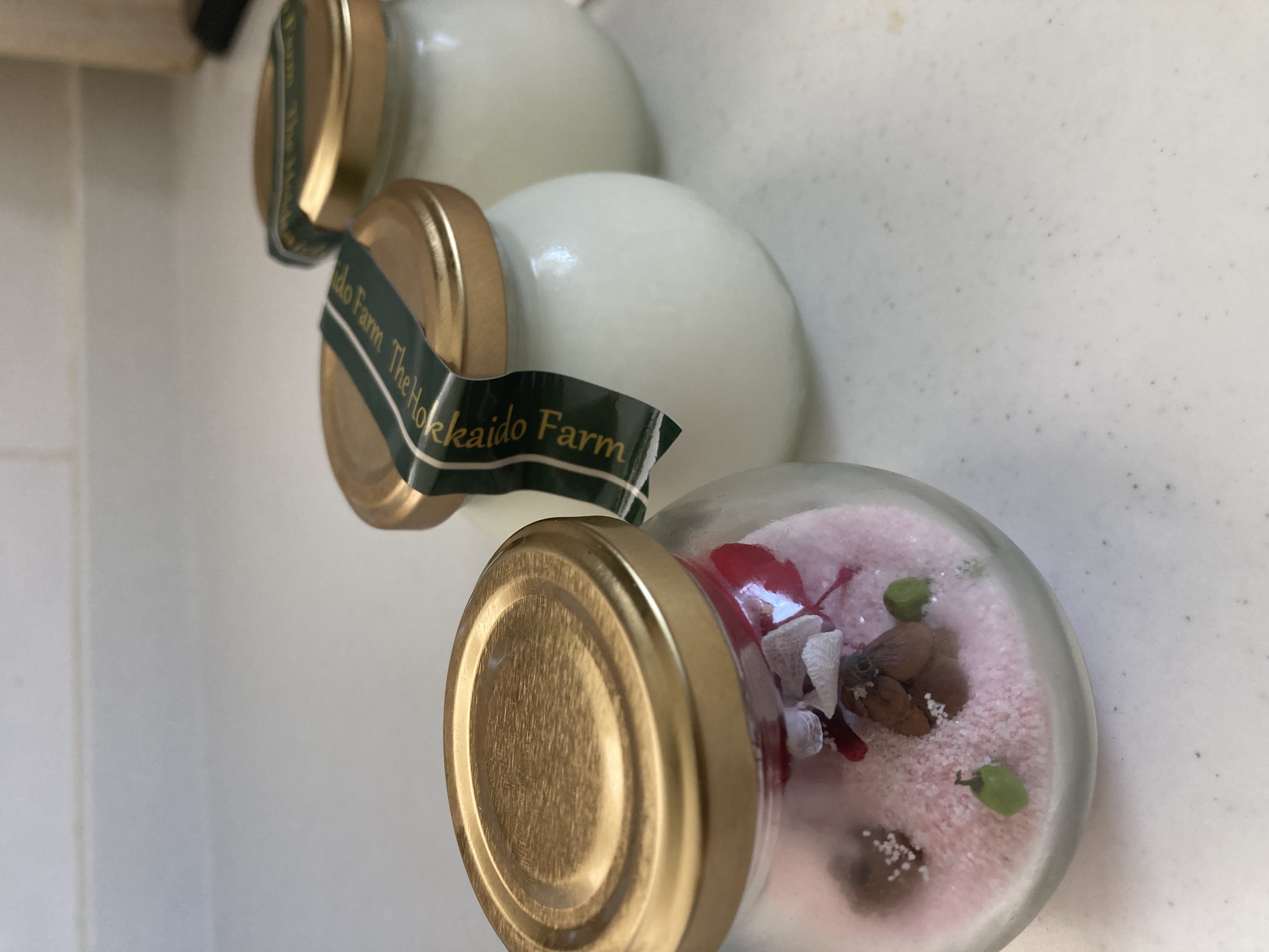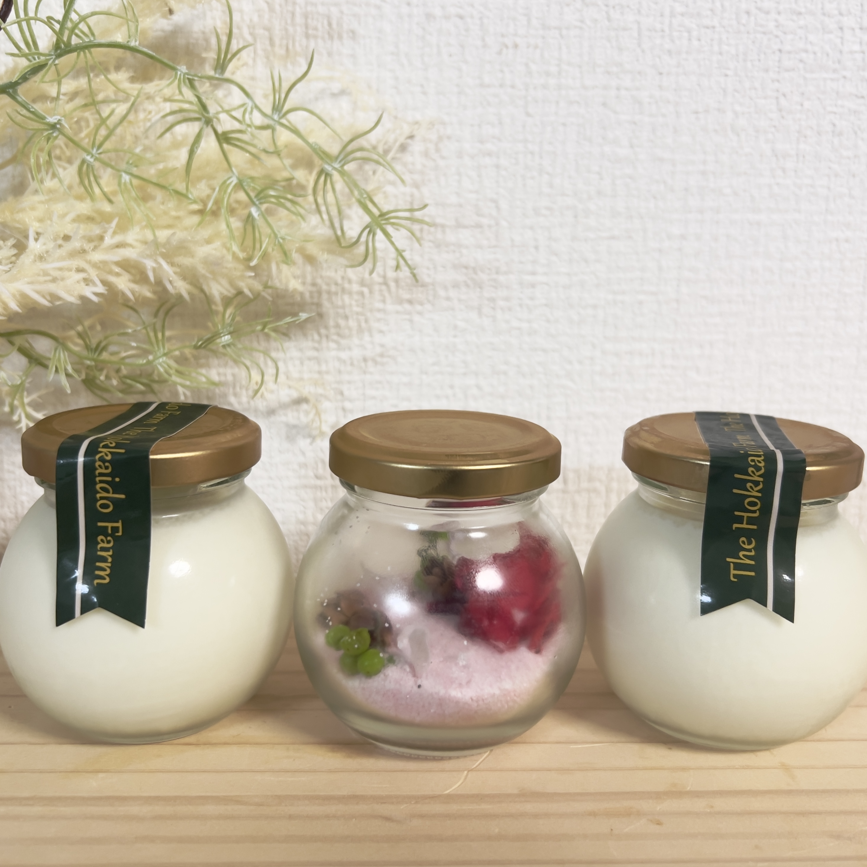 白い黄身だけを使用した濃厚な「白いプリン」と「瓶入りブリザーブドフラワー」のセットです。北の白いプリン「ノンノ」は、自社農場育ちの平飼い鶏卵を使用。その他、北海道生乳、 北海道てんさい糖など北海道の厳選素材を使っています。無添加にこだわっているので、作り置きをせず、注文が入ってから一つ一つ作り上げています。トッピングの「山葡萄ソース」は、果実感あふれる甘みと酸味が魅力。山葡萄シロップと白いプリンでタンチョウ鶴(サルルン)をイメージしているそう。瓶詰されたブリザーブドフラワーも一緒に届くので、贈り物にもおすすめです。