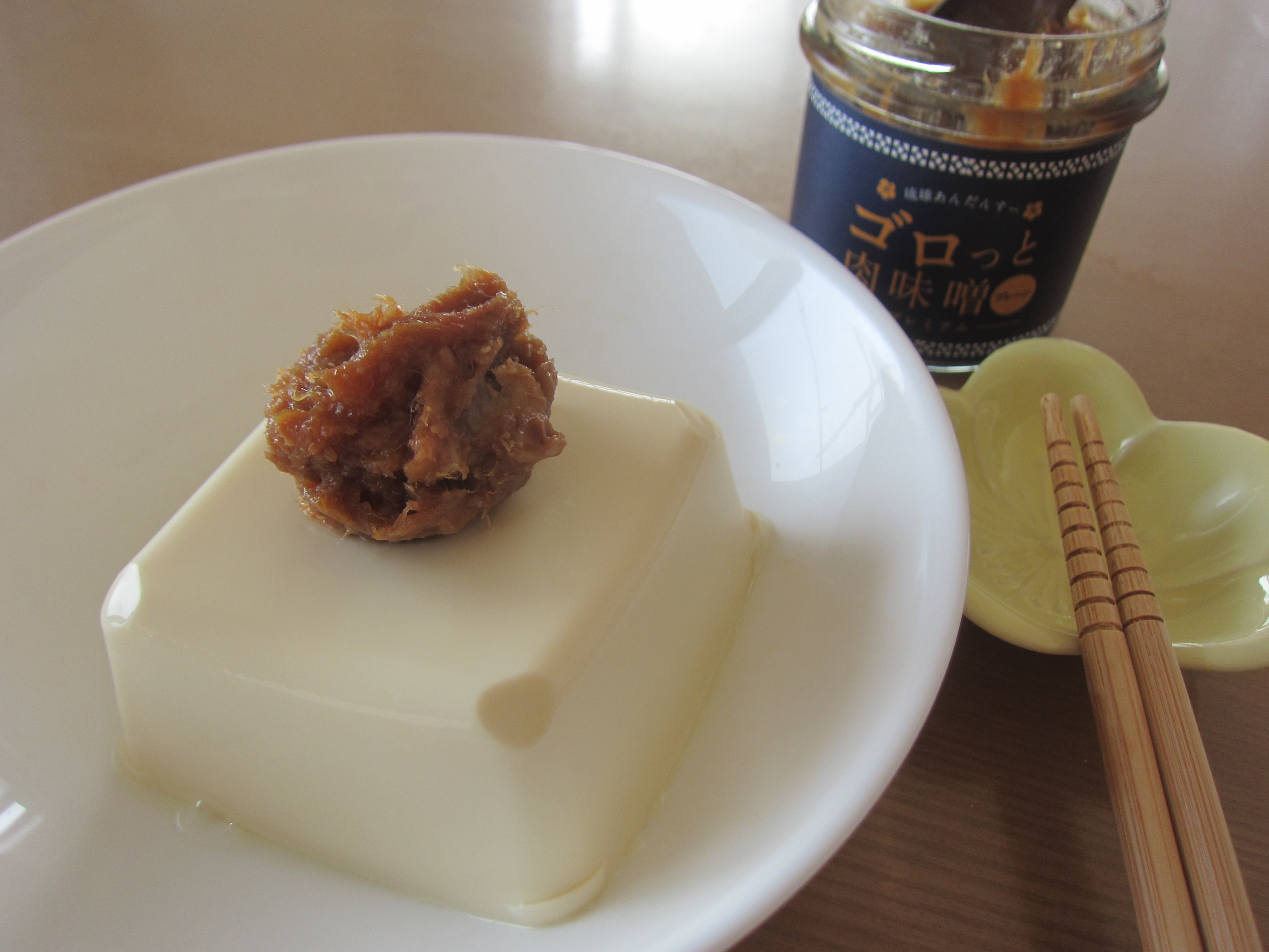 沖縄の食材や食文化を多くの人に知っていただきたいという思いで「ゴロッと肉味噌(琉球あんだんすー)」を発売しました。あんだんすー(あぶらみそ)は昔から沖縄ではご飯のお供の鉄板として親しまれている家庭料理です。各家庭でオリジナルの具材や味付けがあります。
