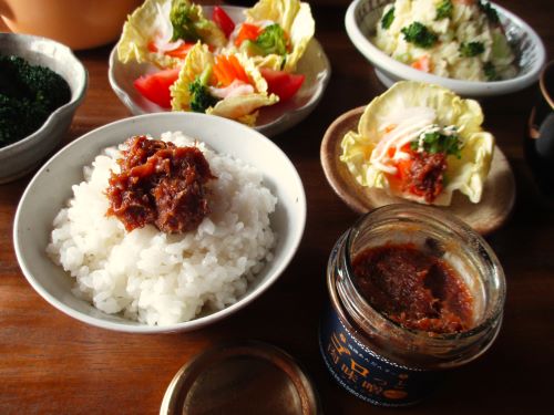 沖縄県産の豚肉、味噌、黒糖など沖縄素材にこだわった「肉味噌」です。ゴロっとした肉が入っているので食べ応え抜群です。「プレーン」は、沖縄では油みそ(あんだんすー)と言って定番の家庭料理として昔からご飯のお供として親しまれています。あんだんすーとは沖縄の方言で「あんだ」が「油」、「んすー(みすー)」が「みそ」という意味です。シンプルな材料で時間をかけて、ひとつひとつ丁寧に手作りしています。