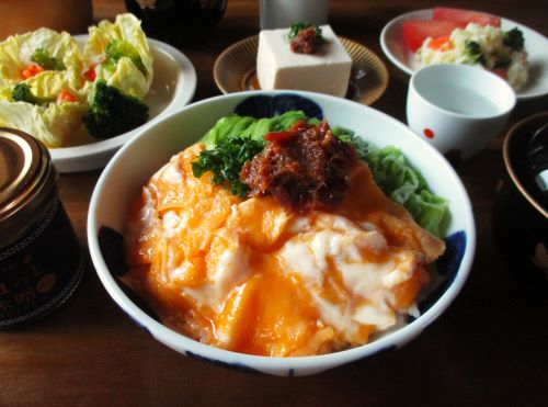 我が家では、ご飯にのせたほか、ふかしたじゃが芋、お豆腐、焼きおにぎり(チーズもトッピング)していただきました。
