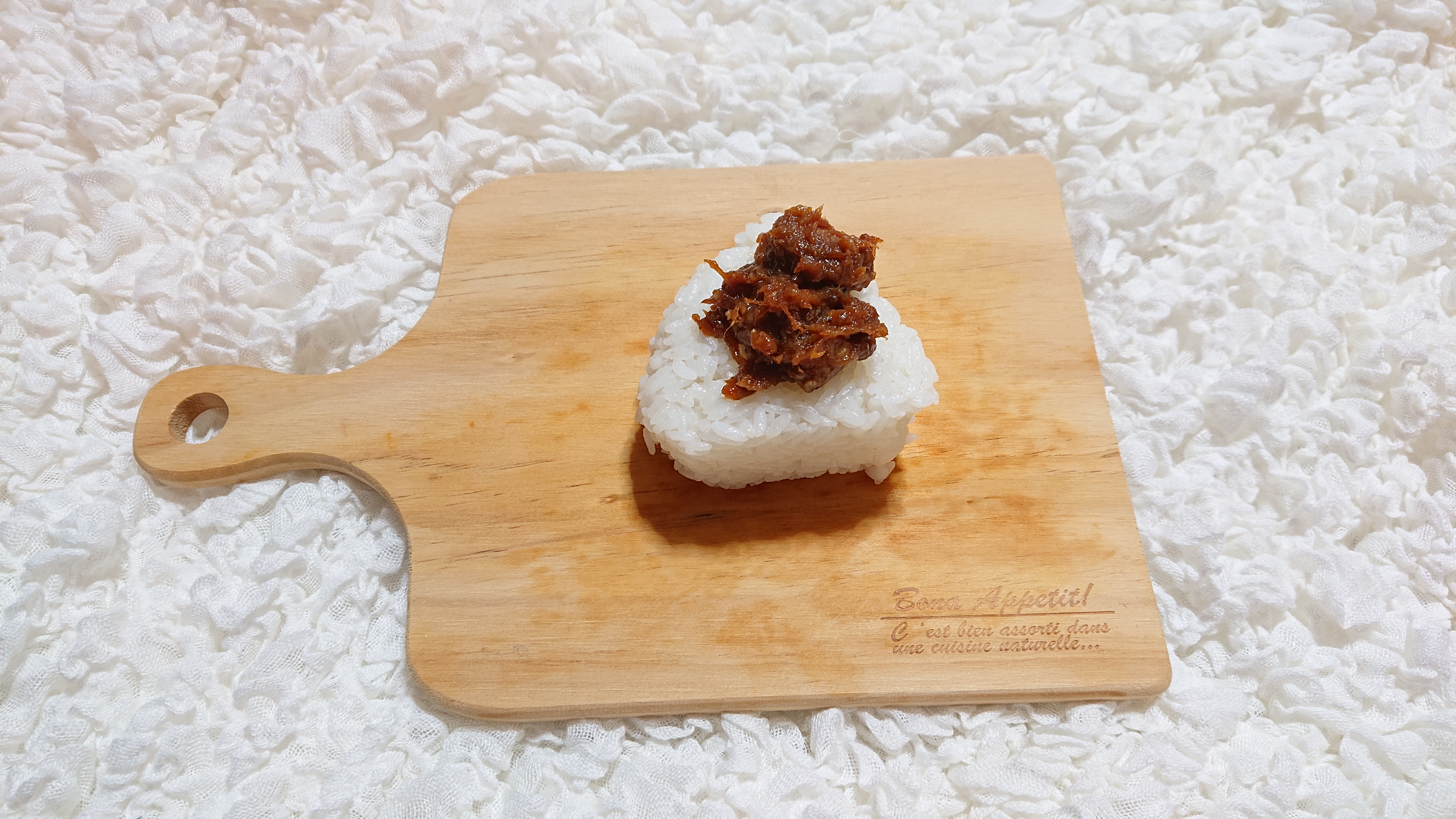 最近はポークたまごおにぎりの具材として使用されていて、スパムの塩気とあんだんすーの甘い味噌の味付けが相まってすごく美味しいですよ。