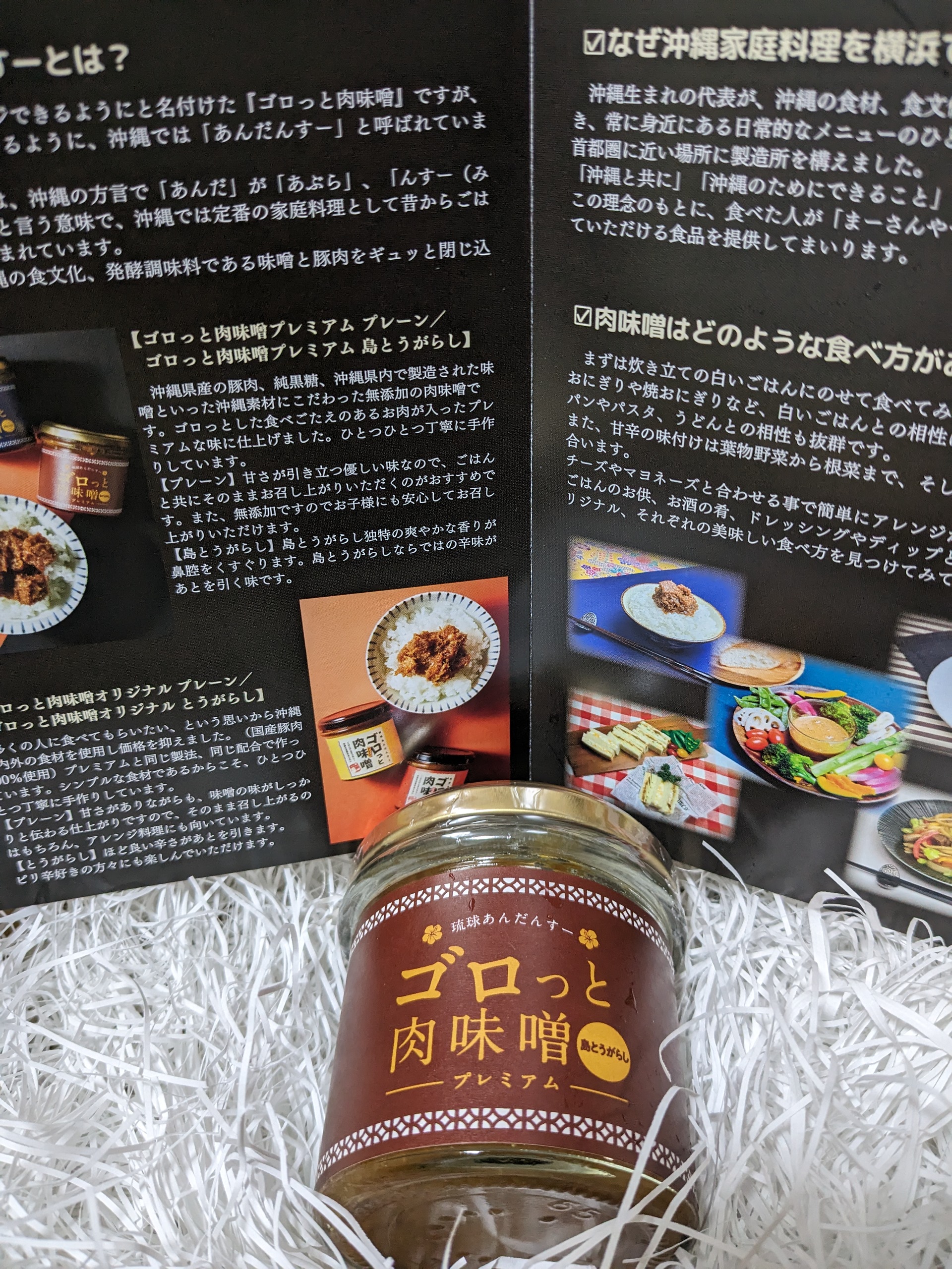 沖縄の食材や食文化を多くの人に知っていただきたいという思いで「ゴロッと肉味噌(琉球あんだんすー)」を発売しました。あんだんすー(あぶらみそ)は昔から沖縄ではご飯のお供の鉄板として親しまれている家庭料理です。各家庭でオリジナルの具材や味付けがあります。