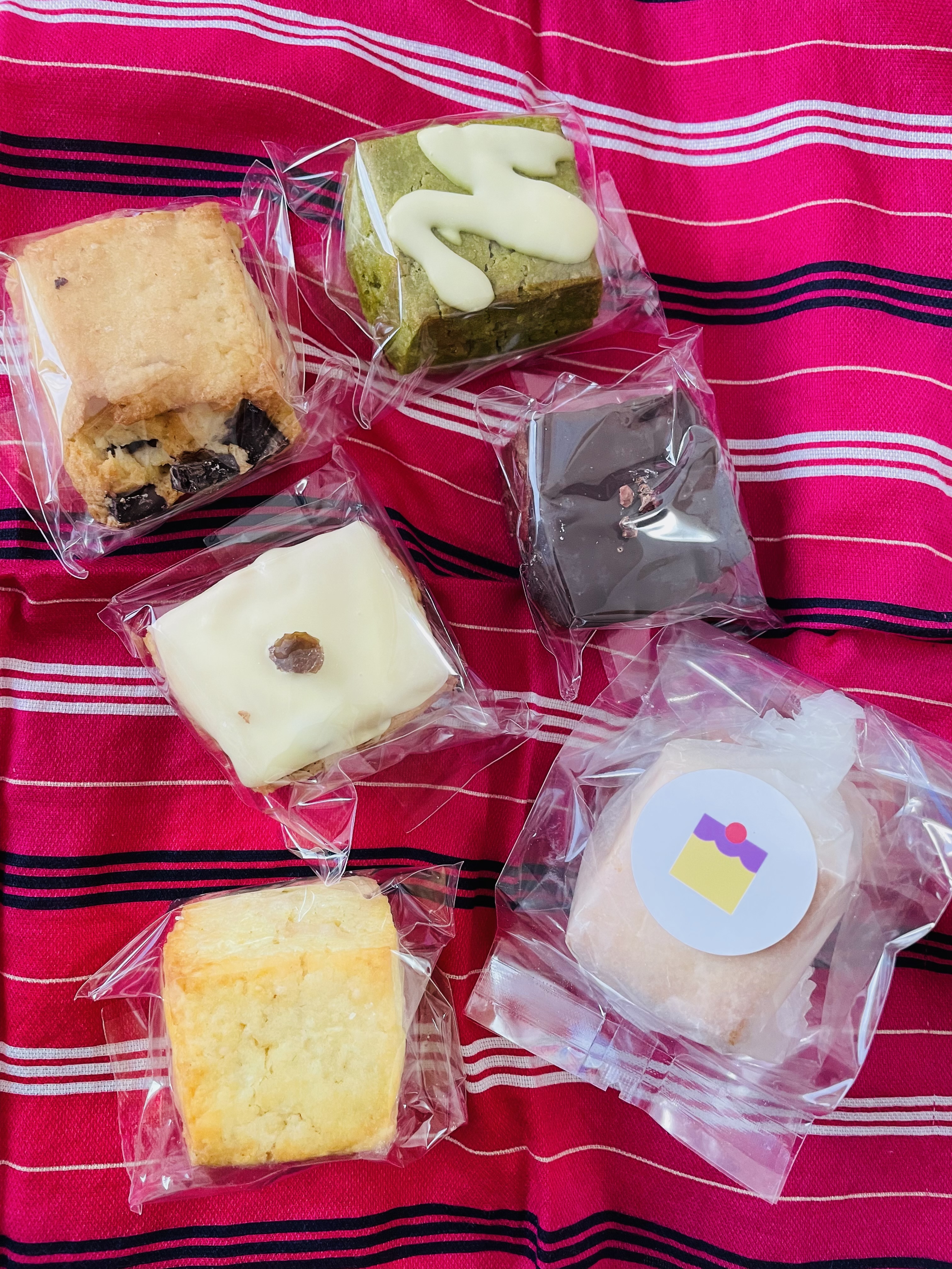 ミニサイズのスクエア型でデコレーションしたスコーンはかわいいです。