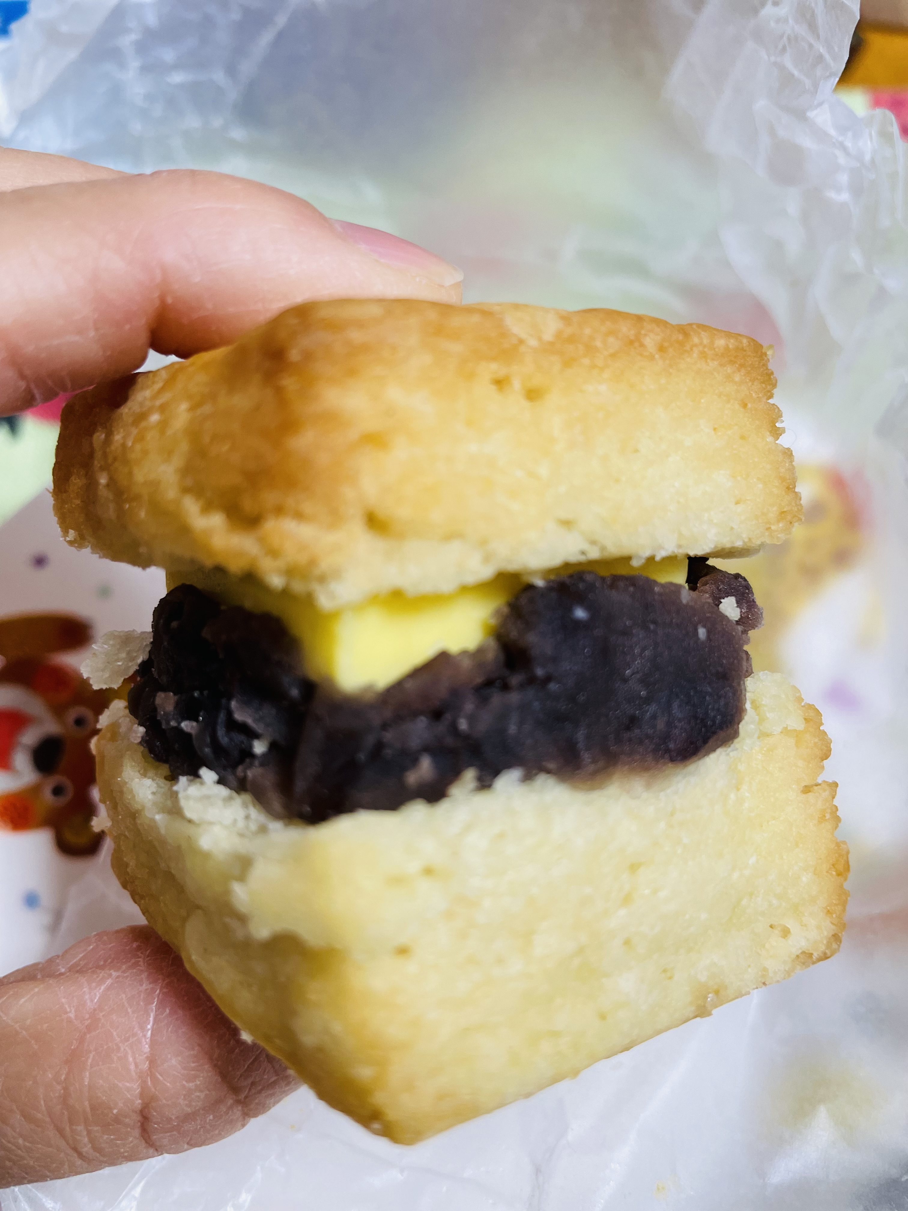 挟んであるので食べずらい上にホロホロした生地なので、一気に食べる感じ。
