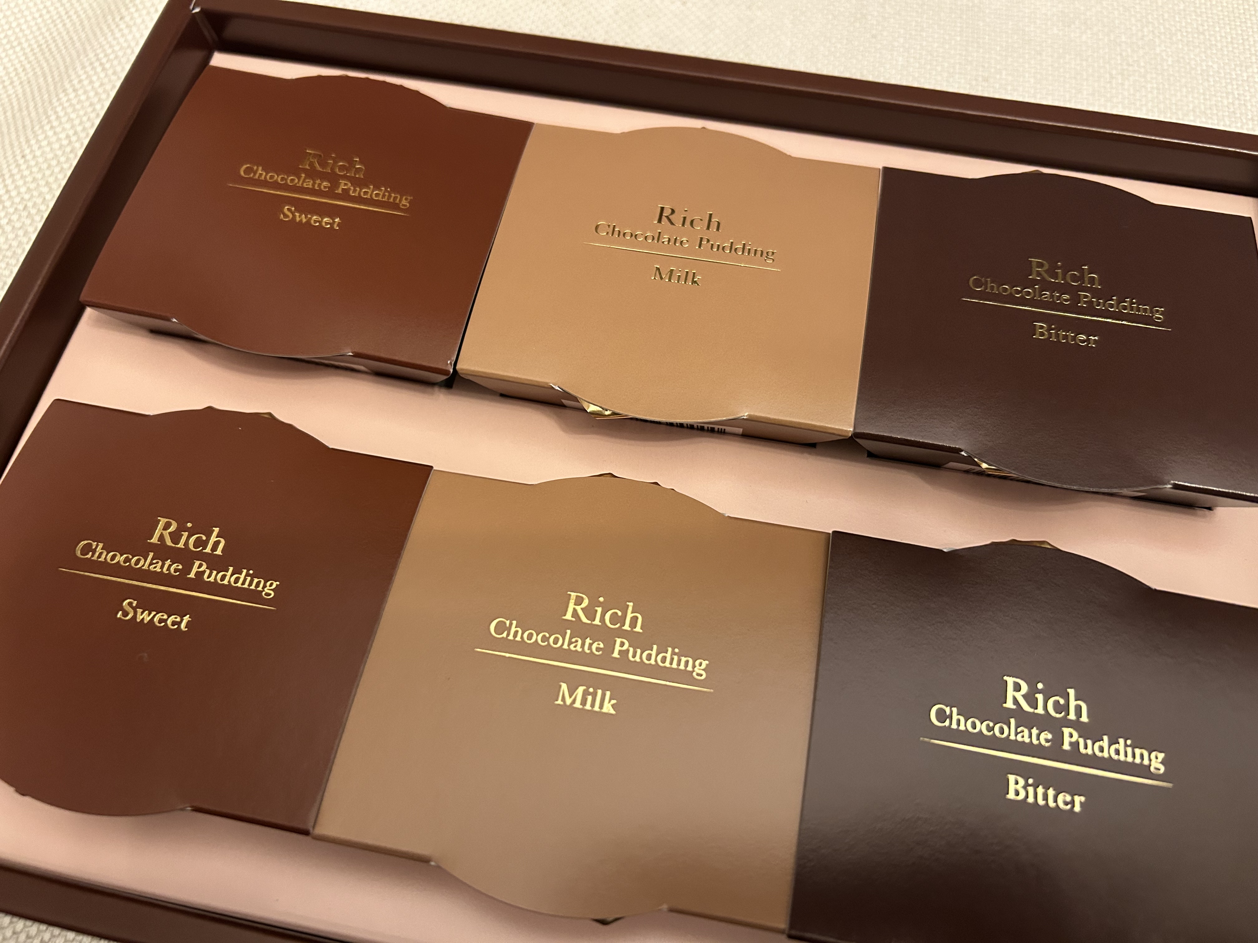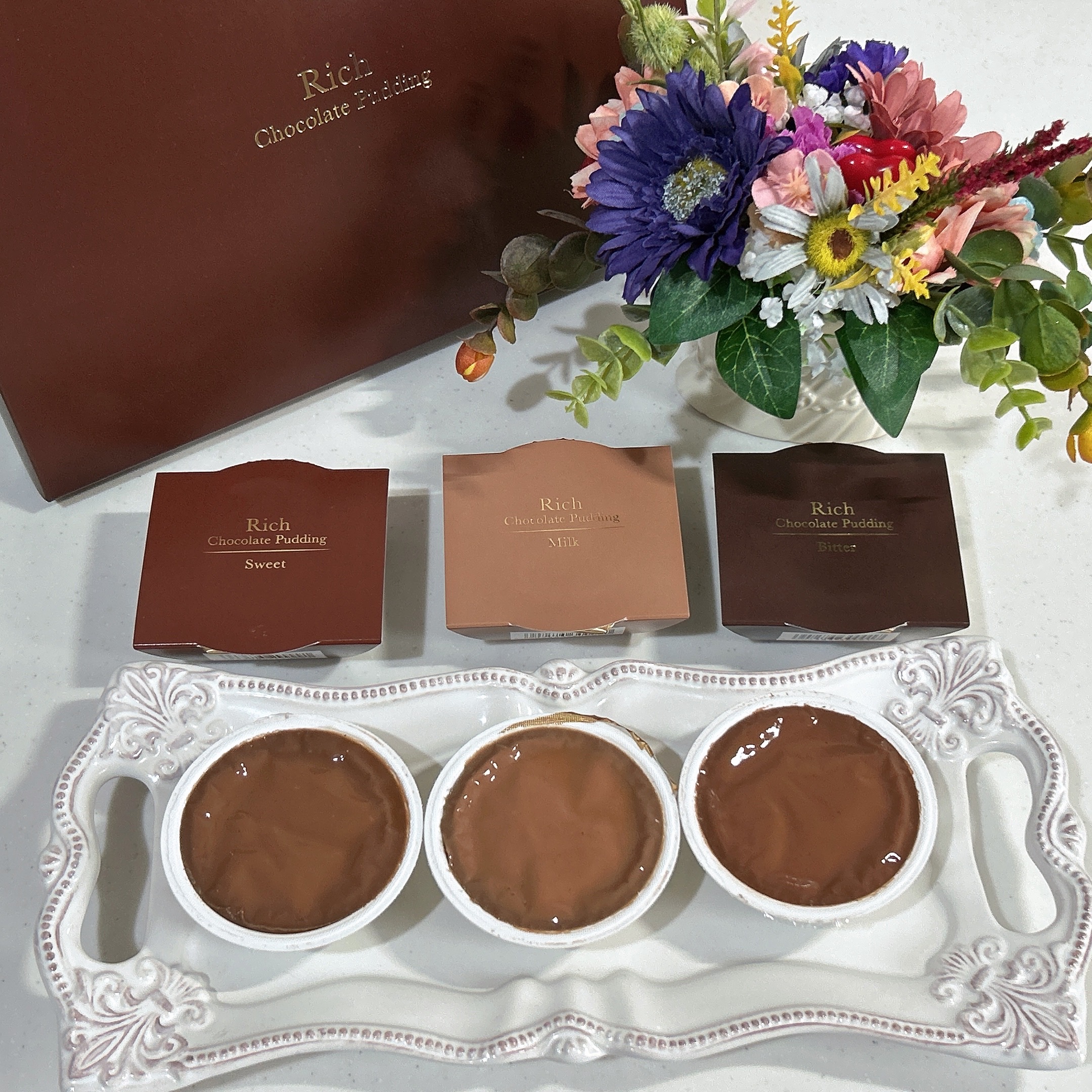 厳選したチョコレートを使用、滑らかな口当たりの「チョコレートプリン」です。チョコレートの深く濃厚な味が、口いっぱいに広がります。風味豊かでまろやかな味わいで、なめらかな口溶けの「ミルク」、苦味・酸味・甘味のバランスがよく、フルーティーさも味わえる「スイート」、濃厚なカカオの香りと風味が広がる「ビター」の3種セット。異なる味わいのセットなので食べ比べが楽しめます。チョコレート色の上品なボックスに入って届くので、贈り物にもおすすめです。