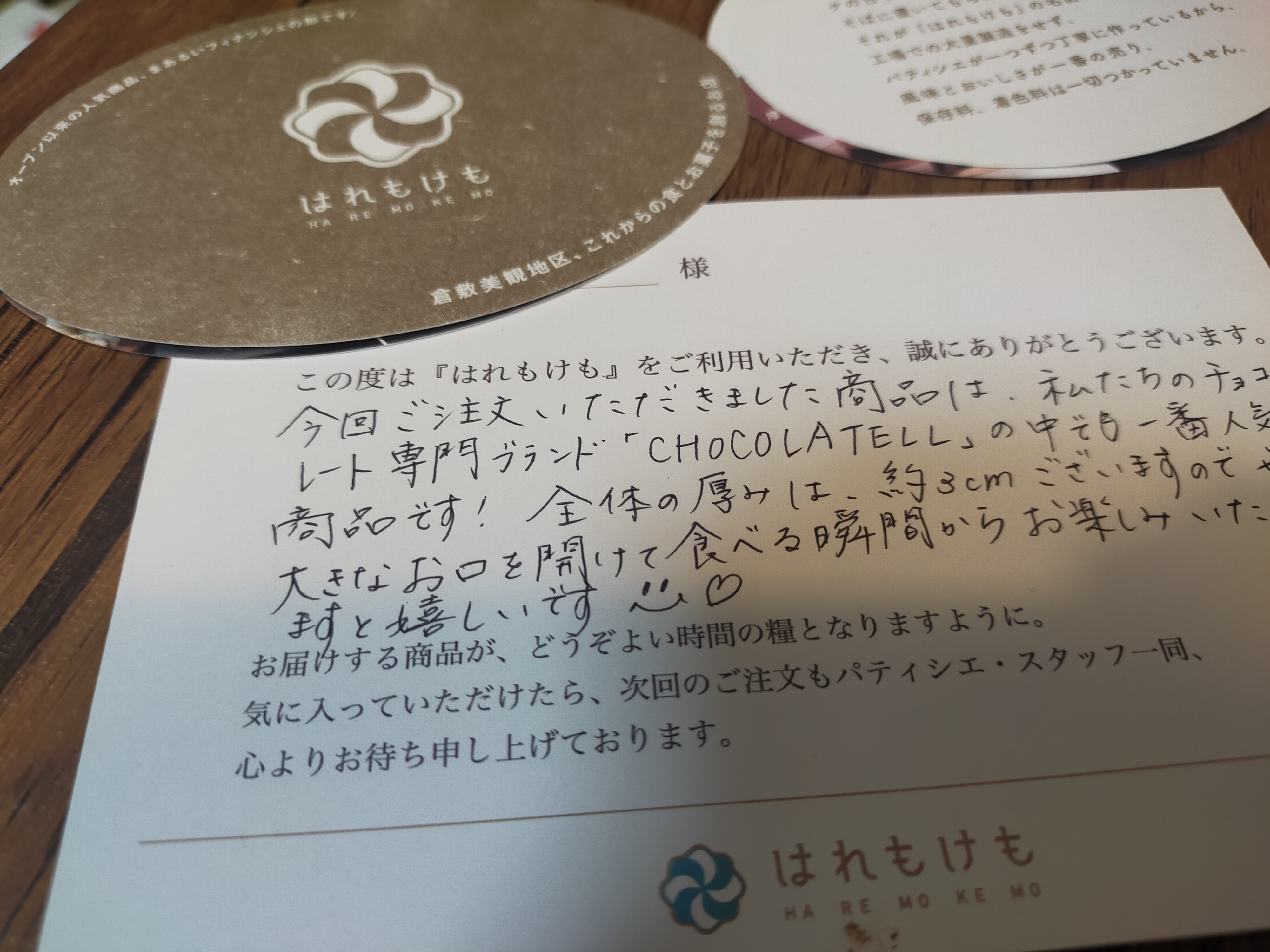 手書きのメッセージが入っていました。これは嬉しい。自分だけに書いてくださった特別感がありますね。