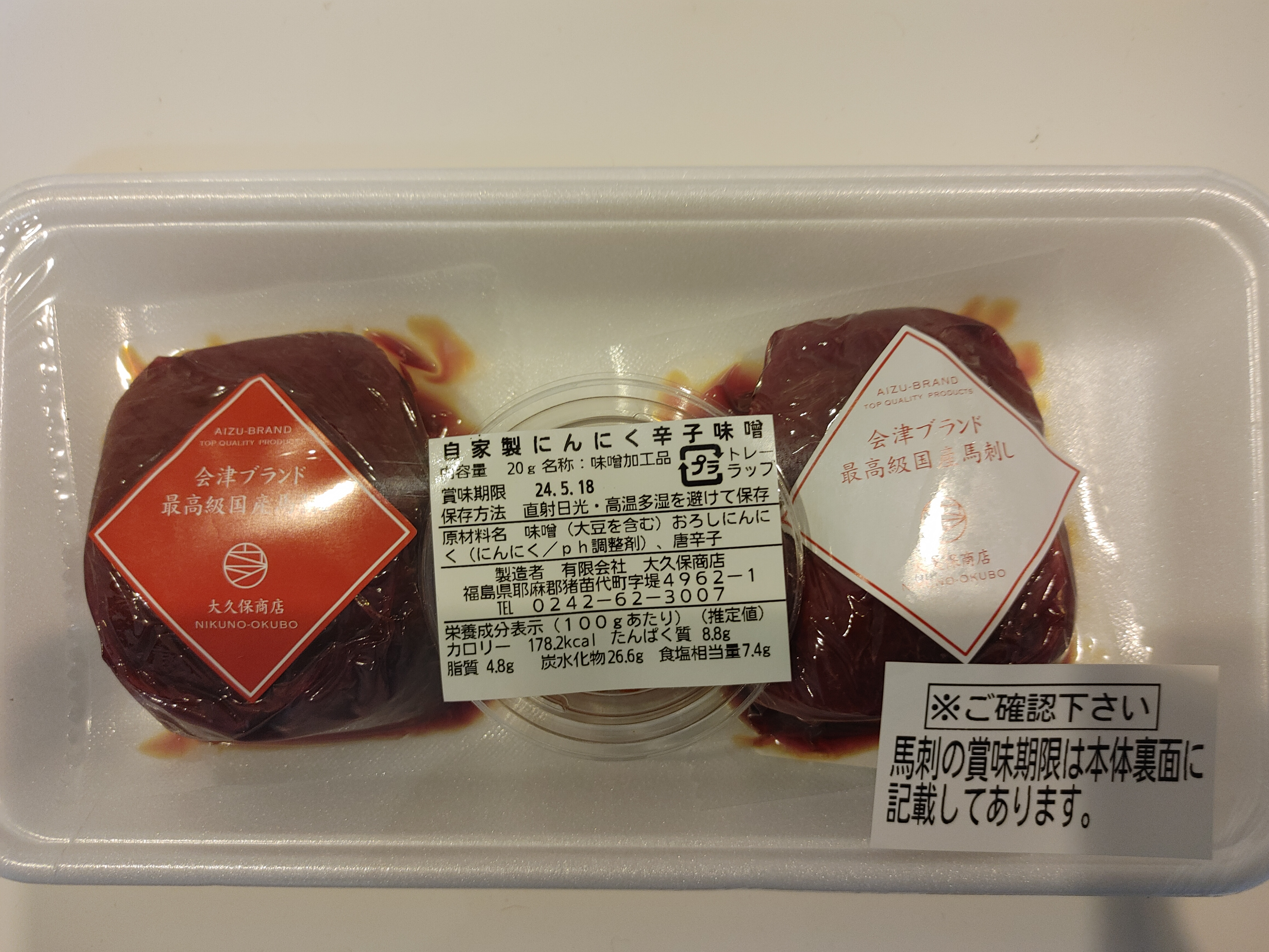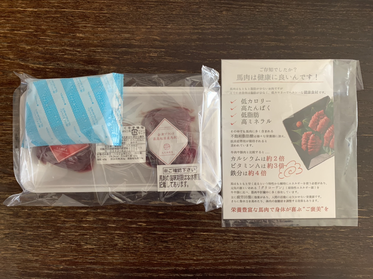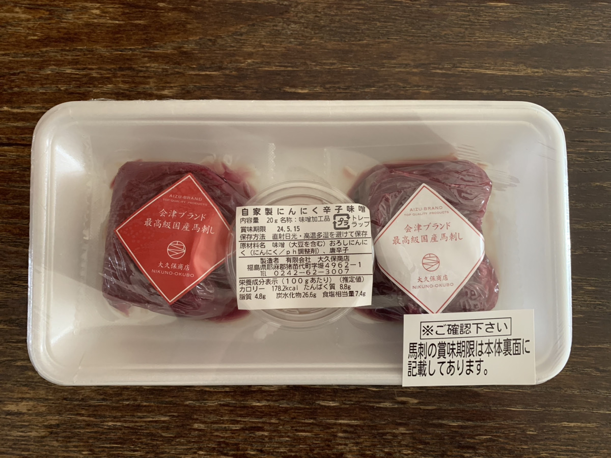 会津国産馬刺し高級部位2種セット 合計200g (ランプ100g・ロース 100g/自家製にんにく辛子味噌付き)