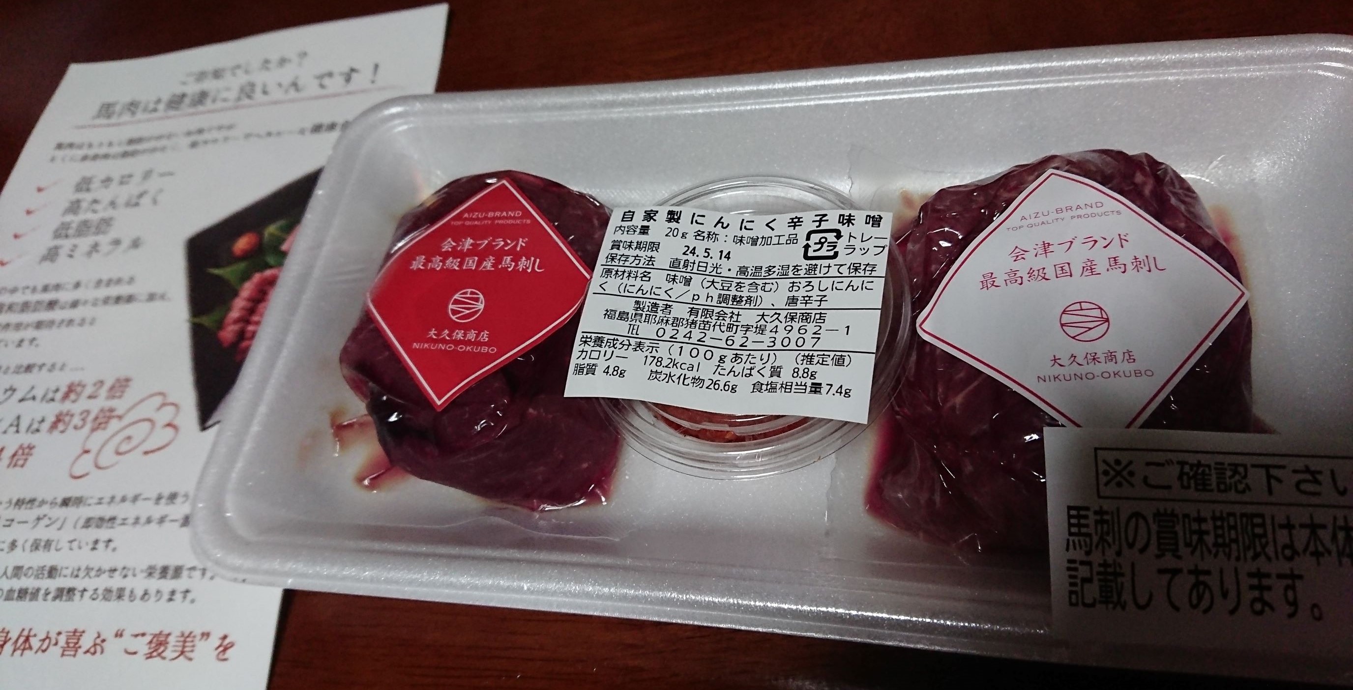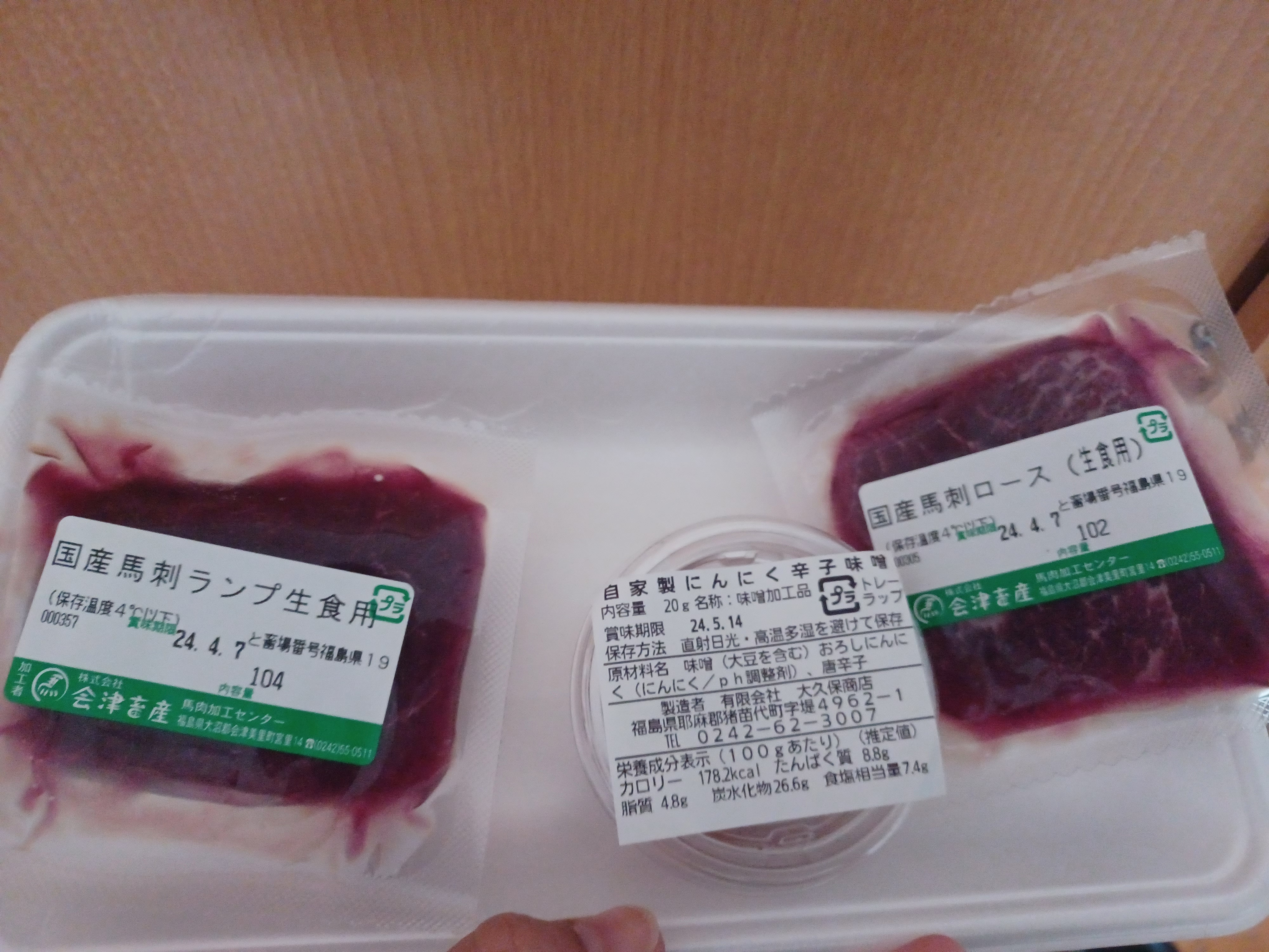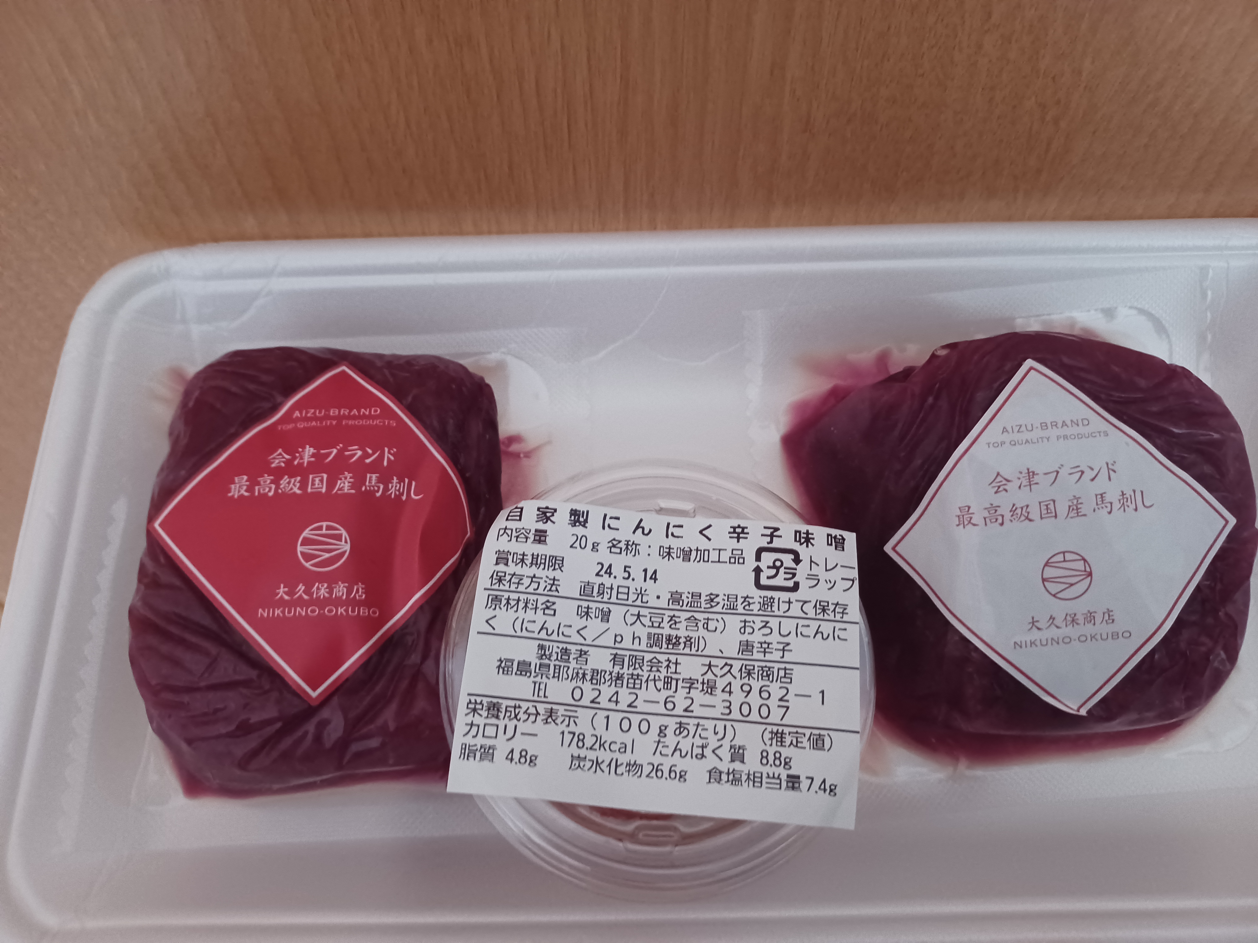 会津国産馬刺し高級部位2種セット 合計200g (ランプ100g・ロース 100g/自家製にんにく辛子味噌付き)