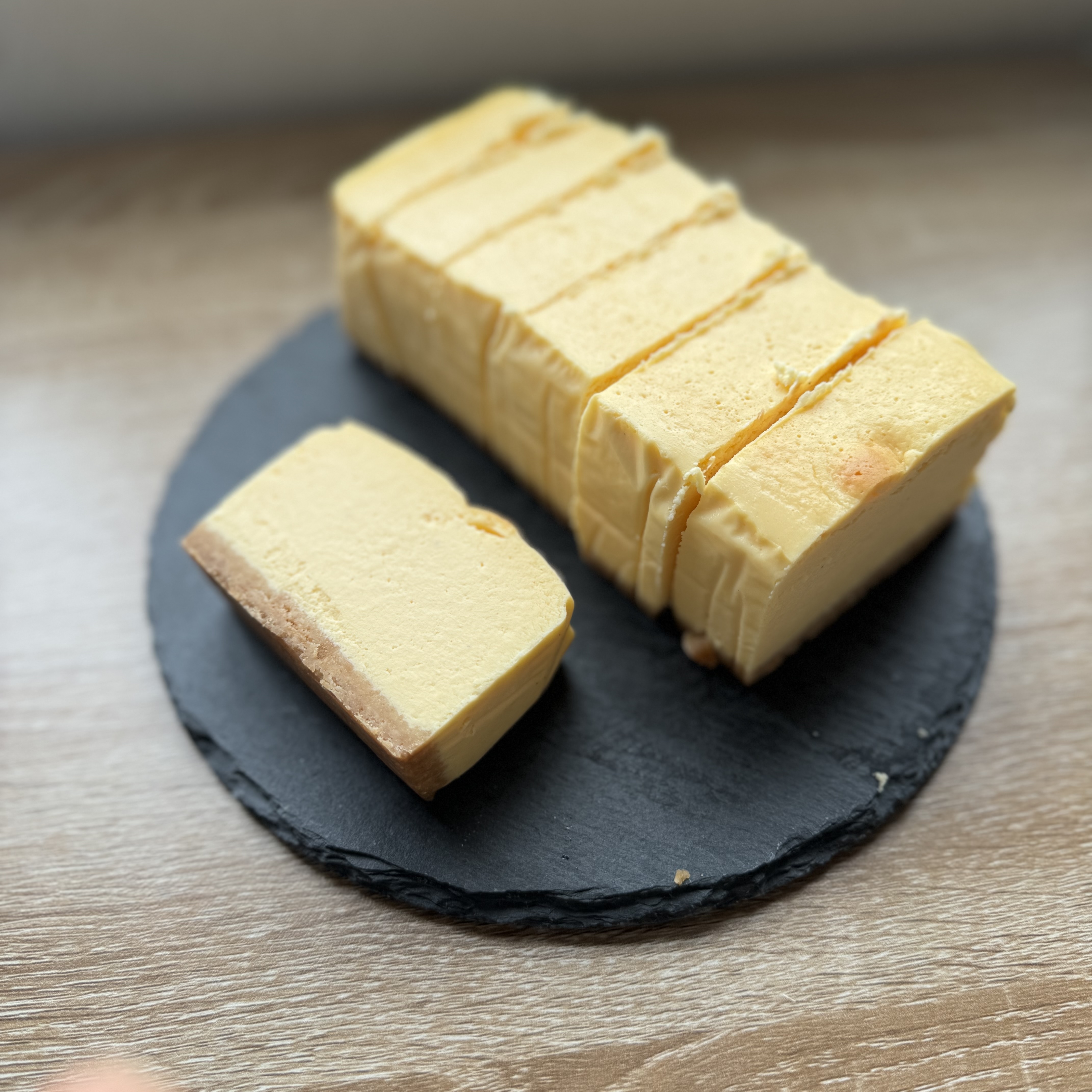 甘さを極限まで控えた「チーズケーキ」です。濃厚でありながら、レモンの程よい酸味を感じる爽やかな味わいです。ほんのりついた焼き色がそれぞれに異なるのは、大量生産しておらず手作りだから。ティータイムのお供には勿論のこと、ワインとの相性も抜群です。注文が入ってから一つ一つ丁寧に焼き上げています。カットなし又はカットあり、冷凍又は冷蔵と条件が選べるので用途に合わせて選択でき便利です。プリザーブドリーフが添えた、赤ちゃんを優しく包むような「おくるみ包装」で、環境に優しいバガスBOXに入って届くので贈り物にもおすすめです。