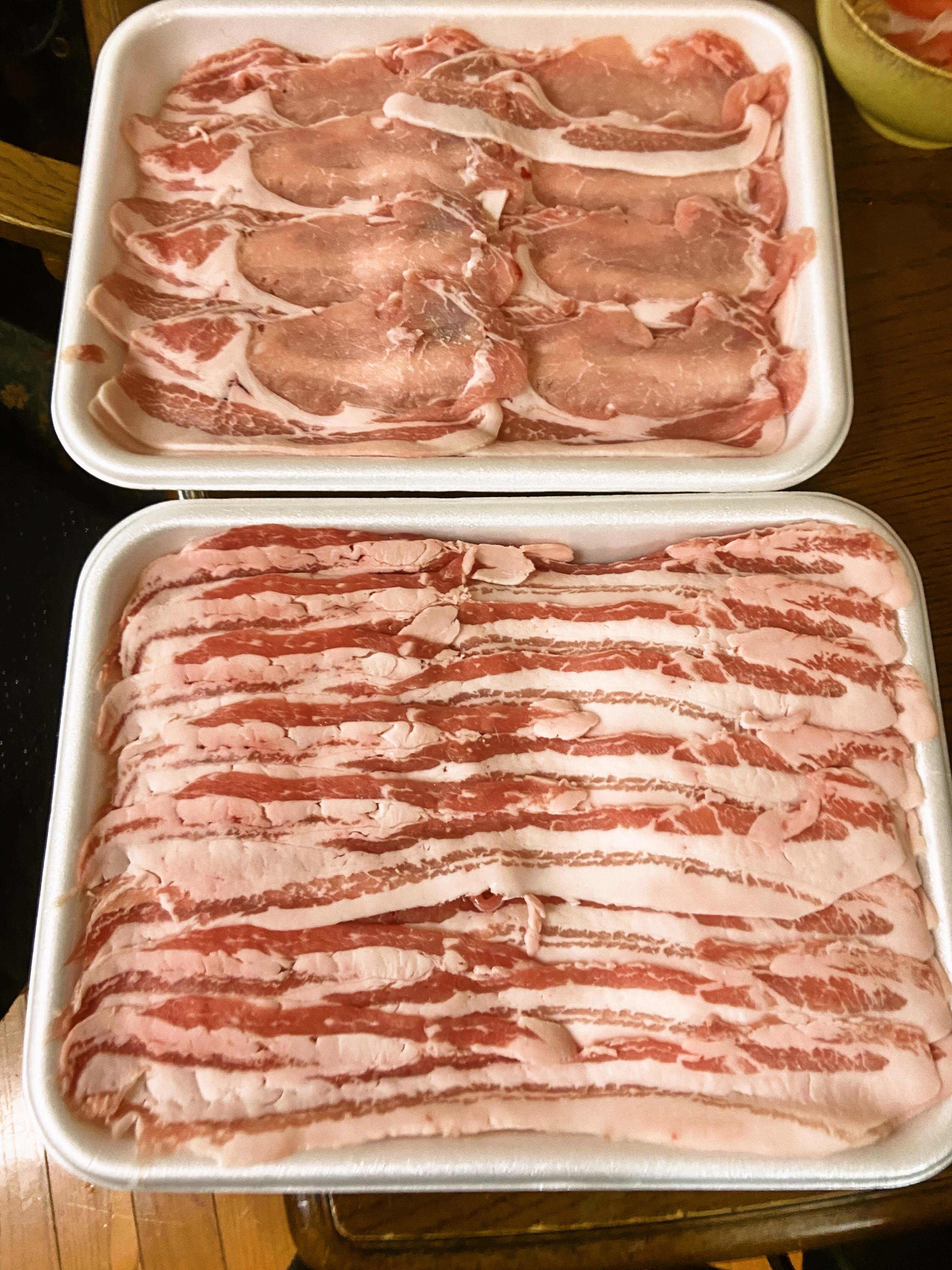 中を開けると「十豚」のロースとバラの、しゃぶしゃぶ用のお肉がそれぞれ700gづづ入っていてとても綺麗な桜色をしたお肉でした。