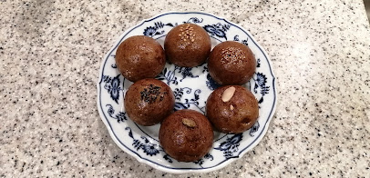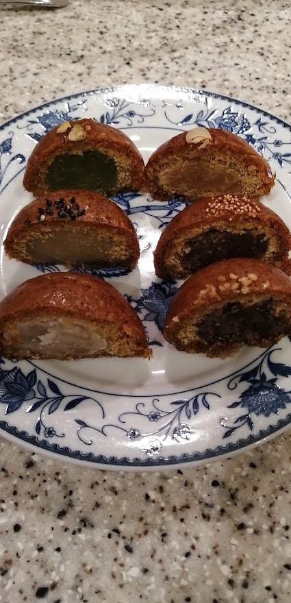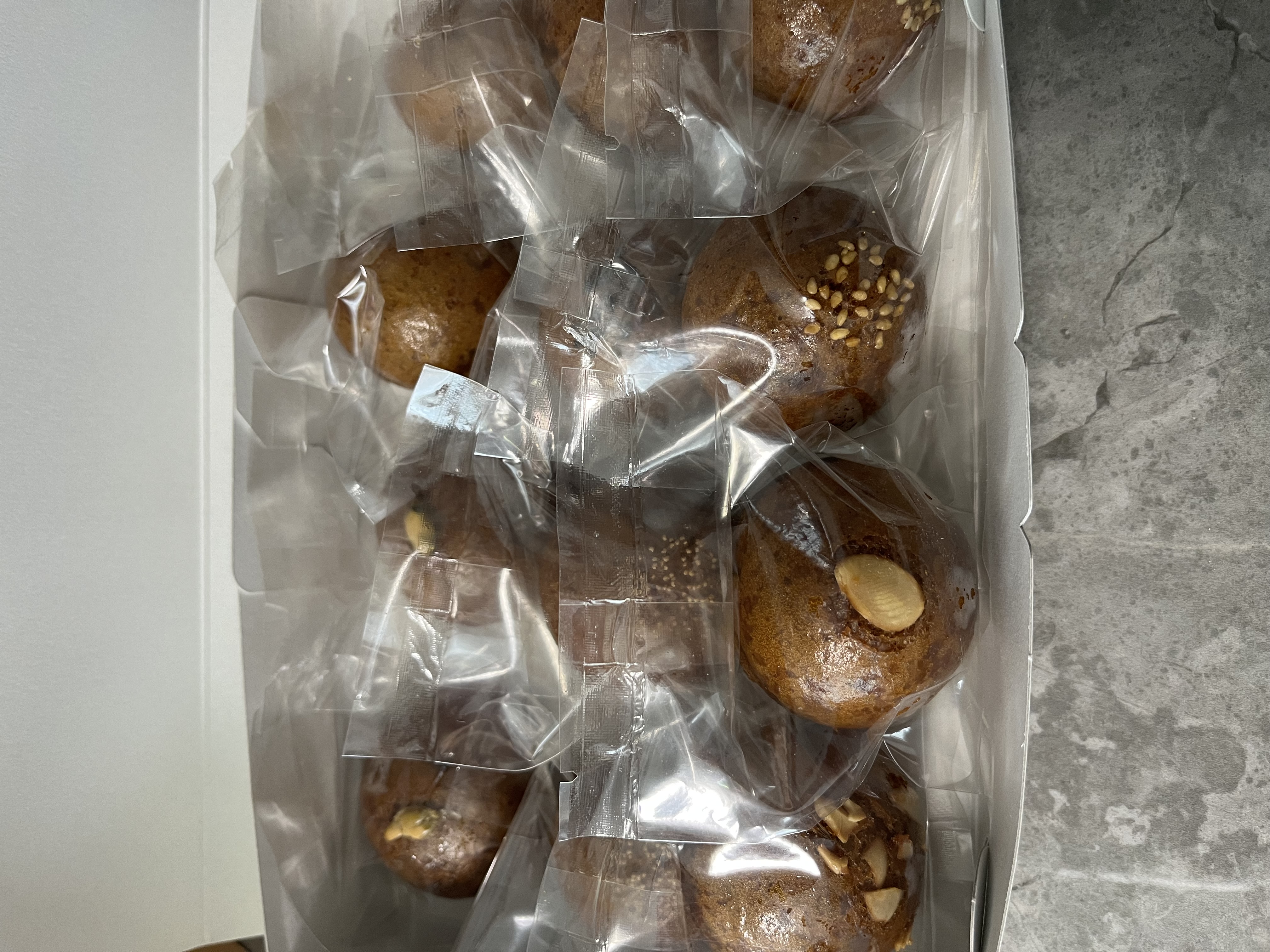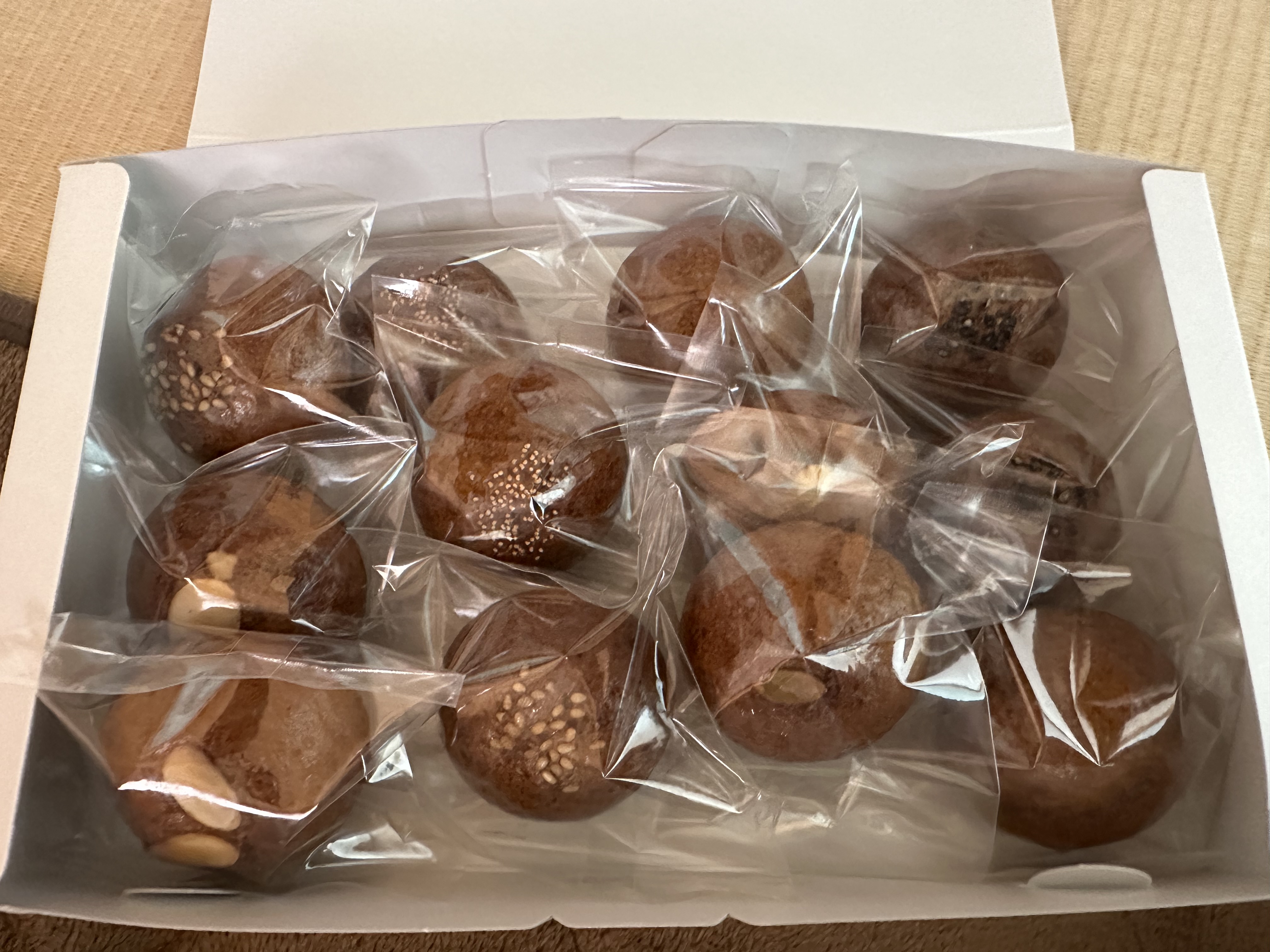 それぞれにけし、黒ゴマ、かぼちゃの種、白ゴマ、アーモンドなどがトッピングしてあり、どのあんが入っているのかがわかります。