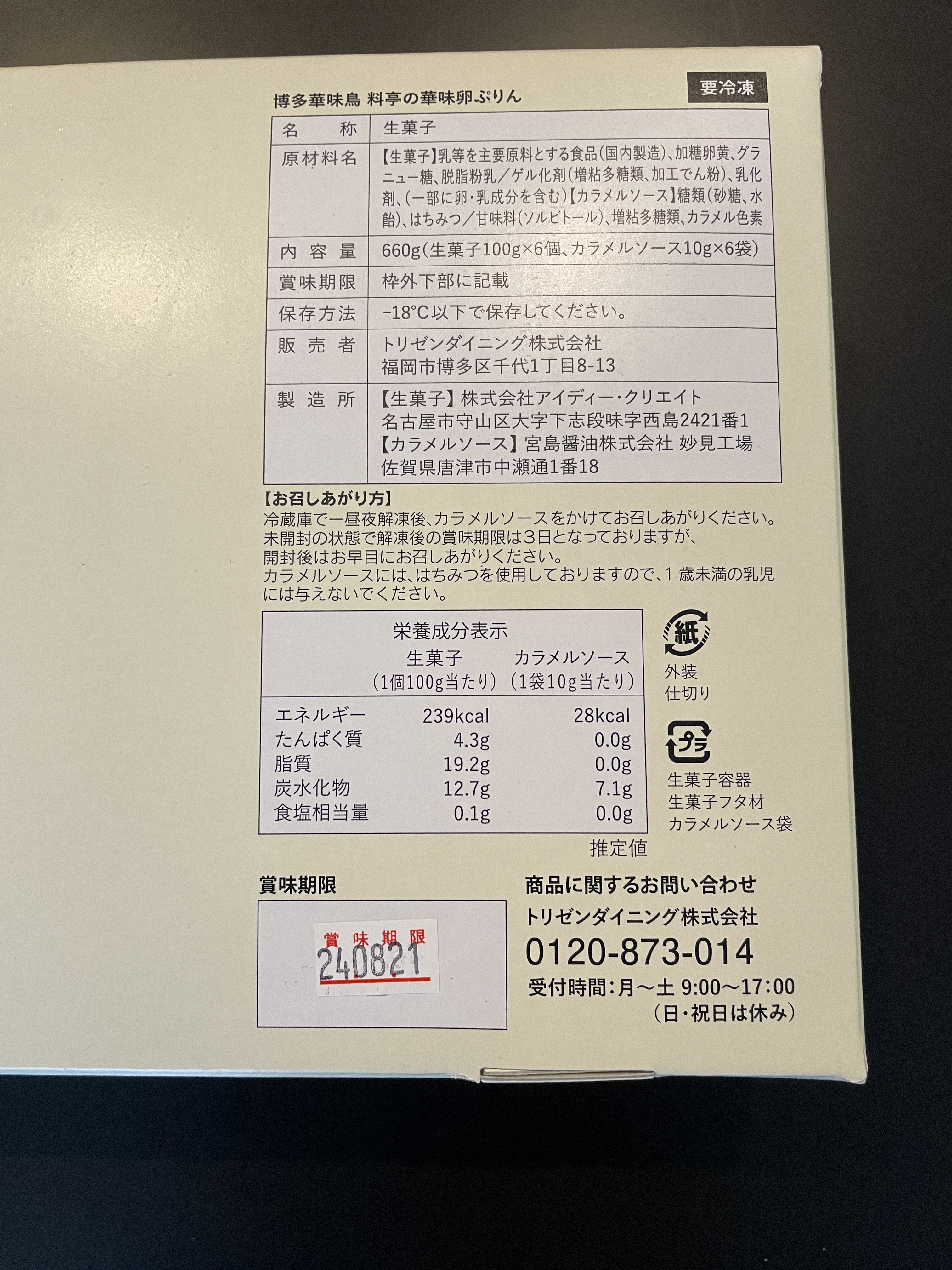 完全解凍すれば凄く卵の風味を感じるものの、半解凍ではかなりさっぱり感じます。