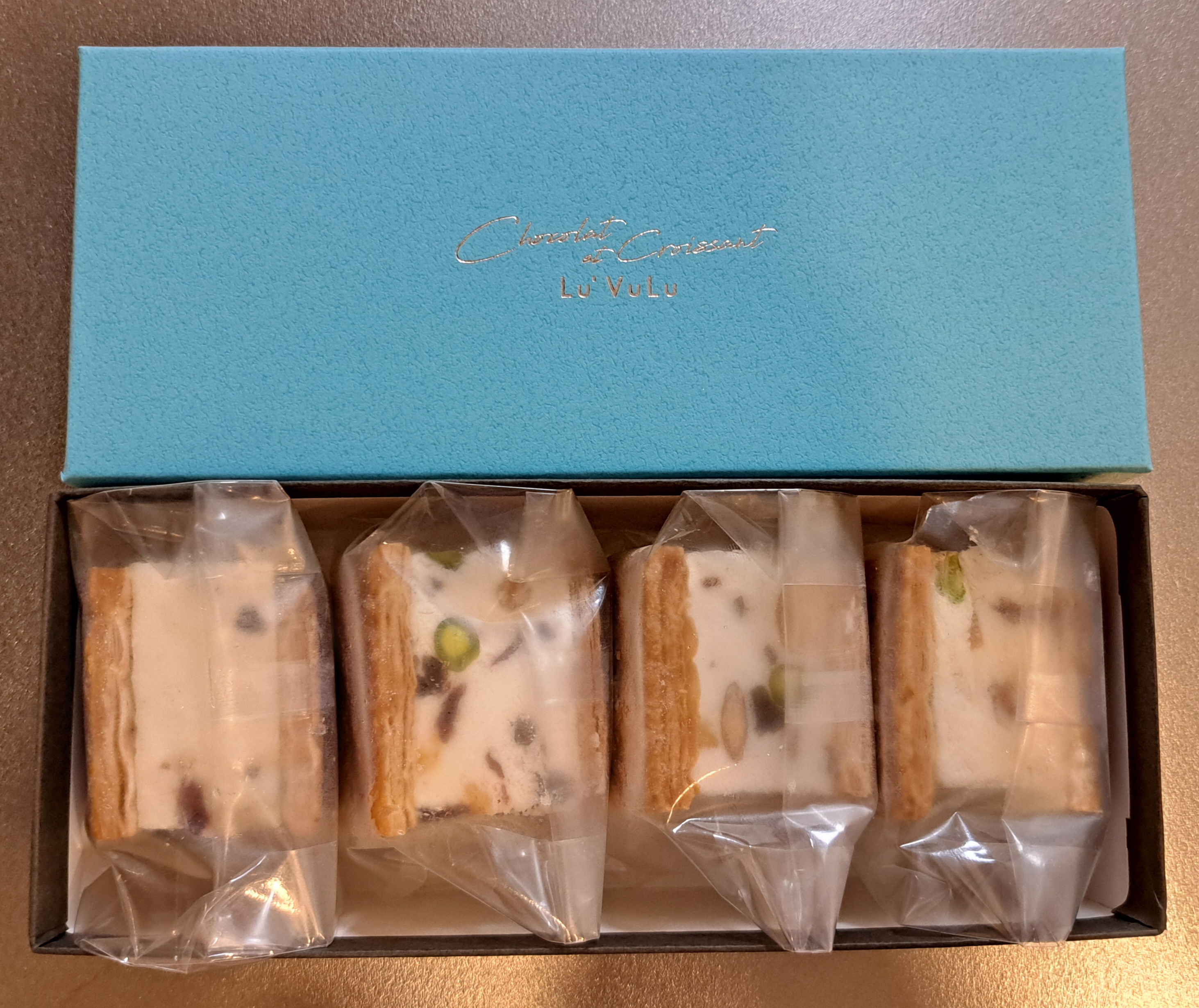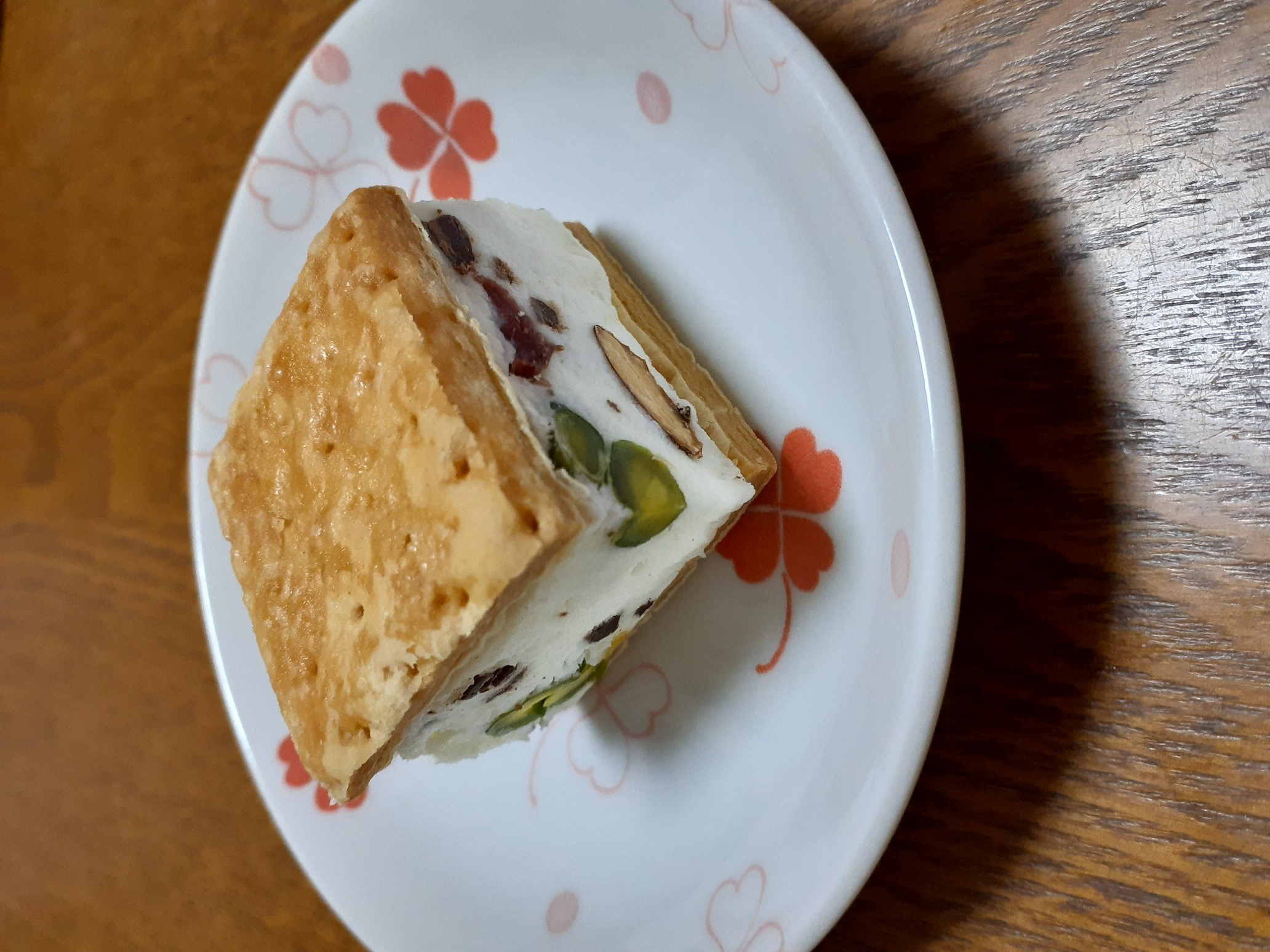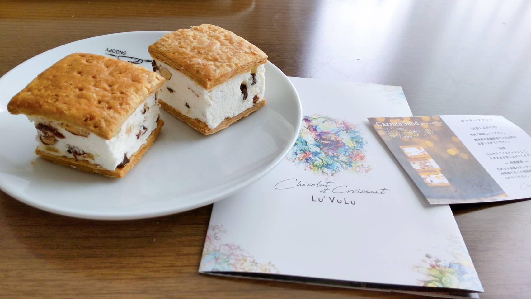 クリームを挟んでいる生地は、しっとりとしており、香ばしい風味が、凍ったクリームとの相性はバツグンです。