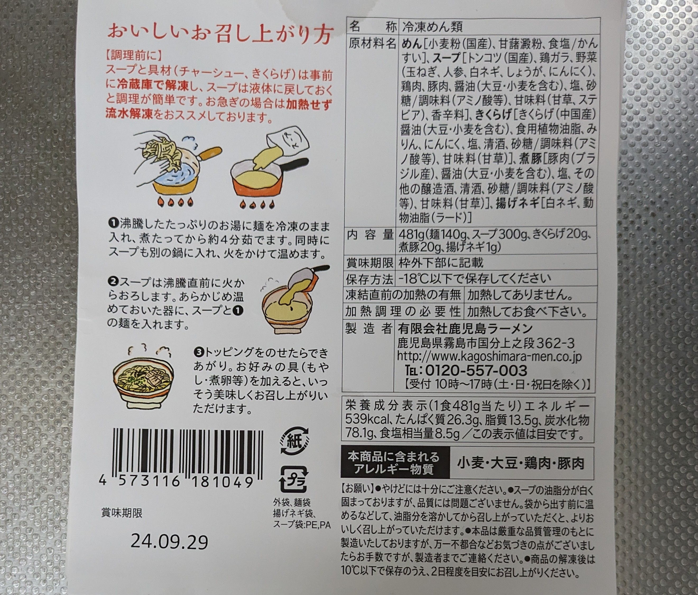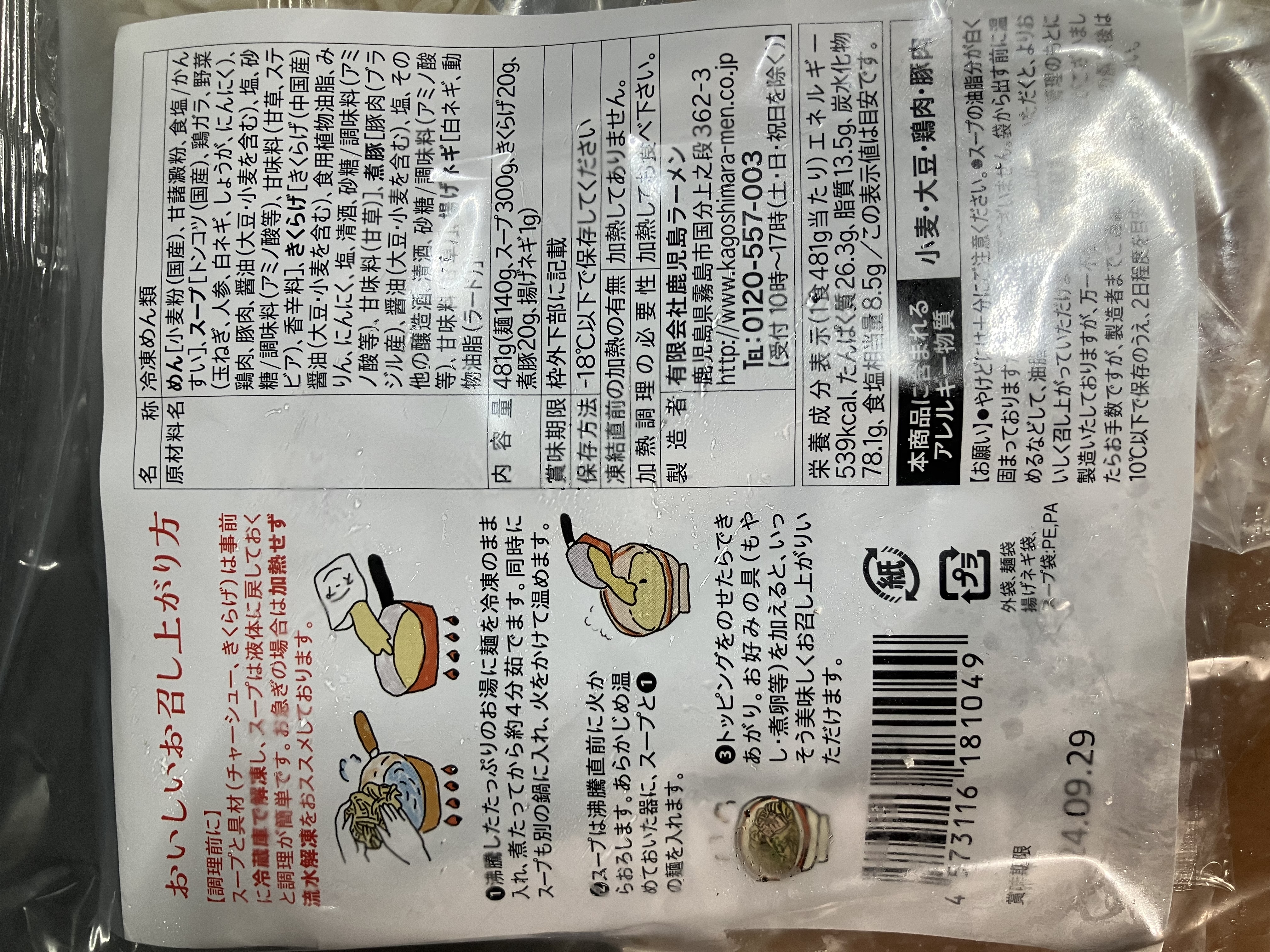 ただし、個包装のうち、麺だけは冷凍のままにしておかねばなりません。