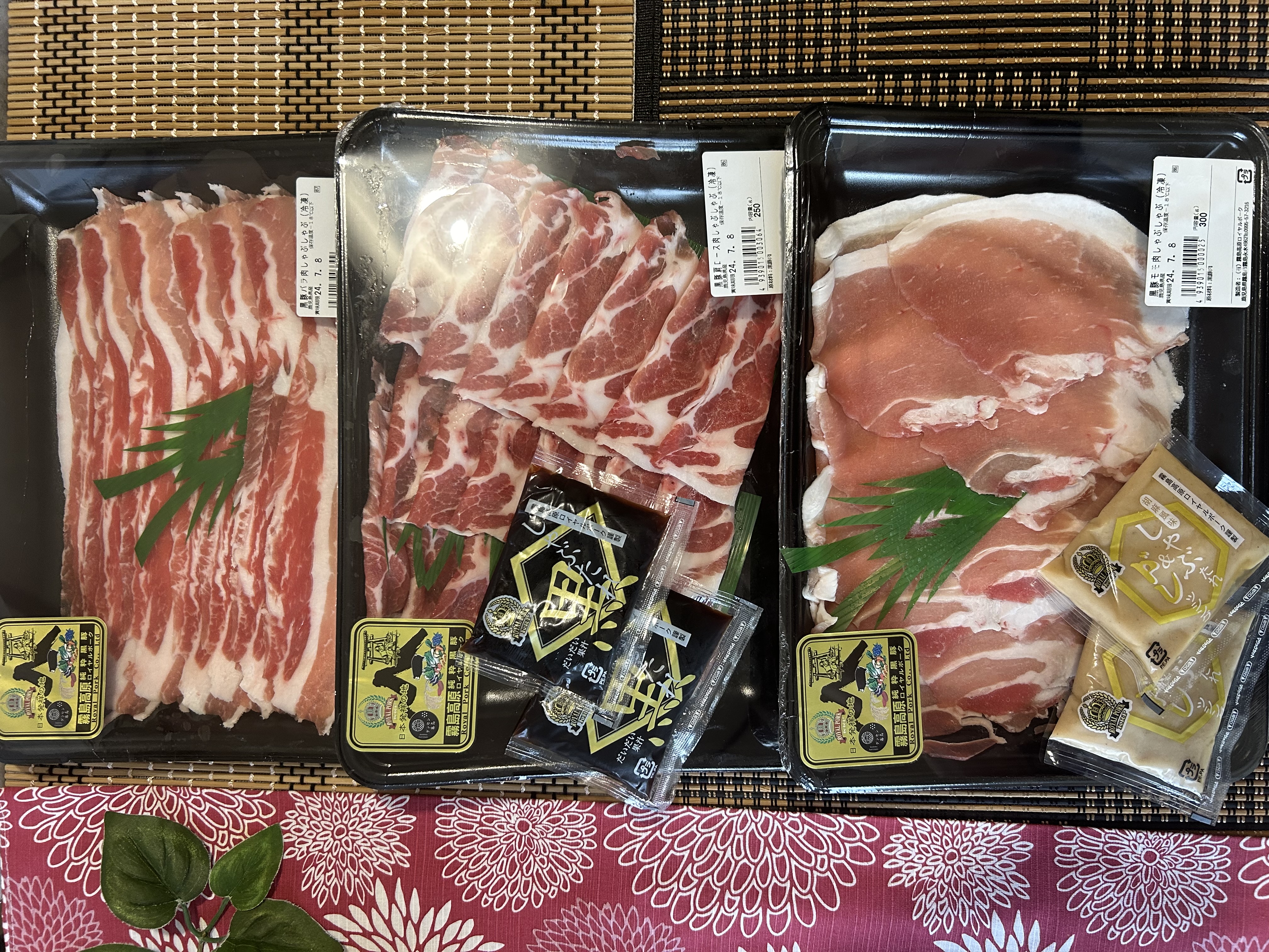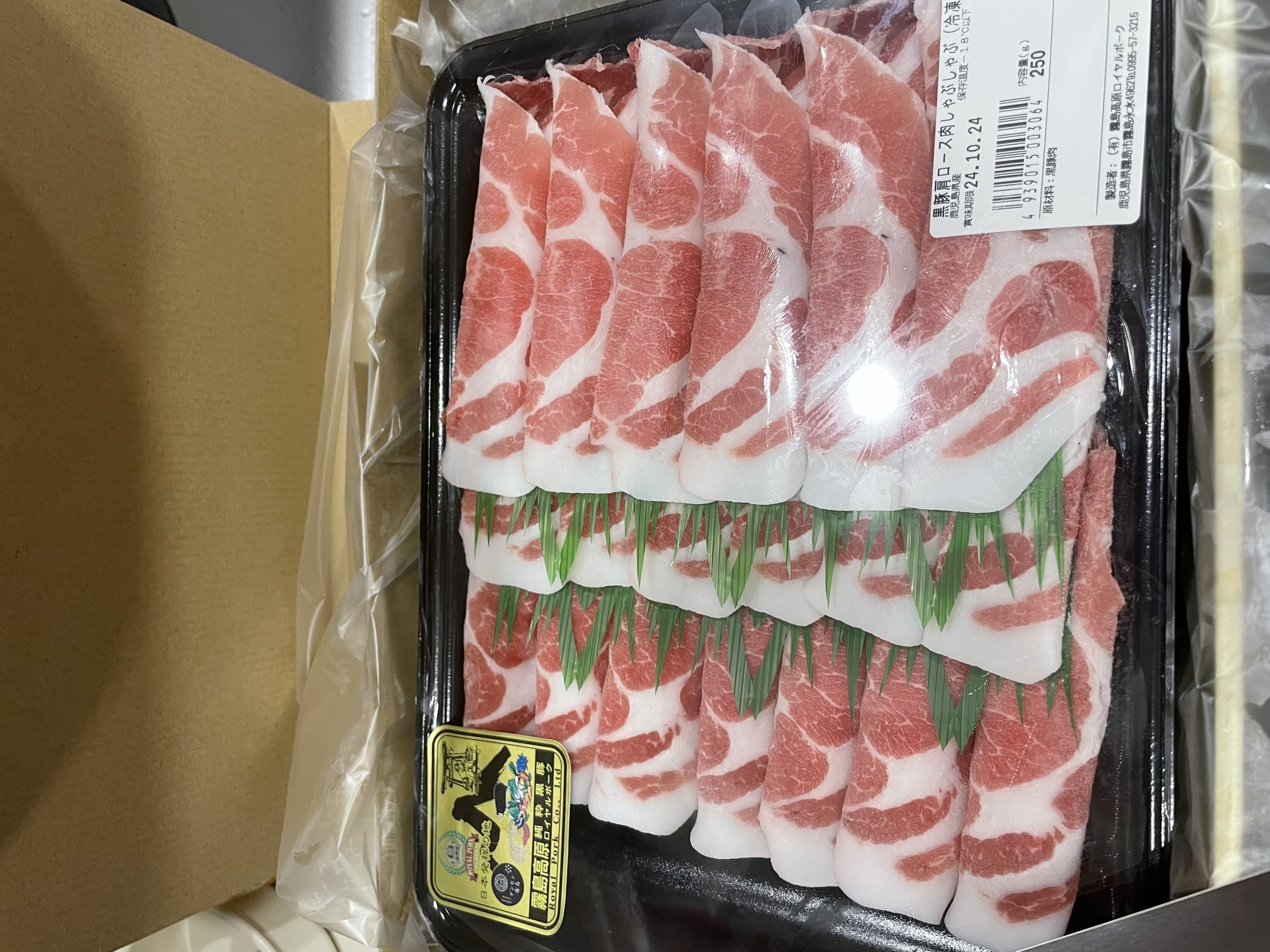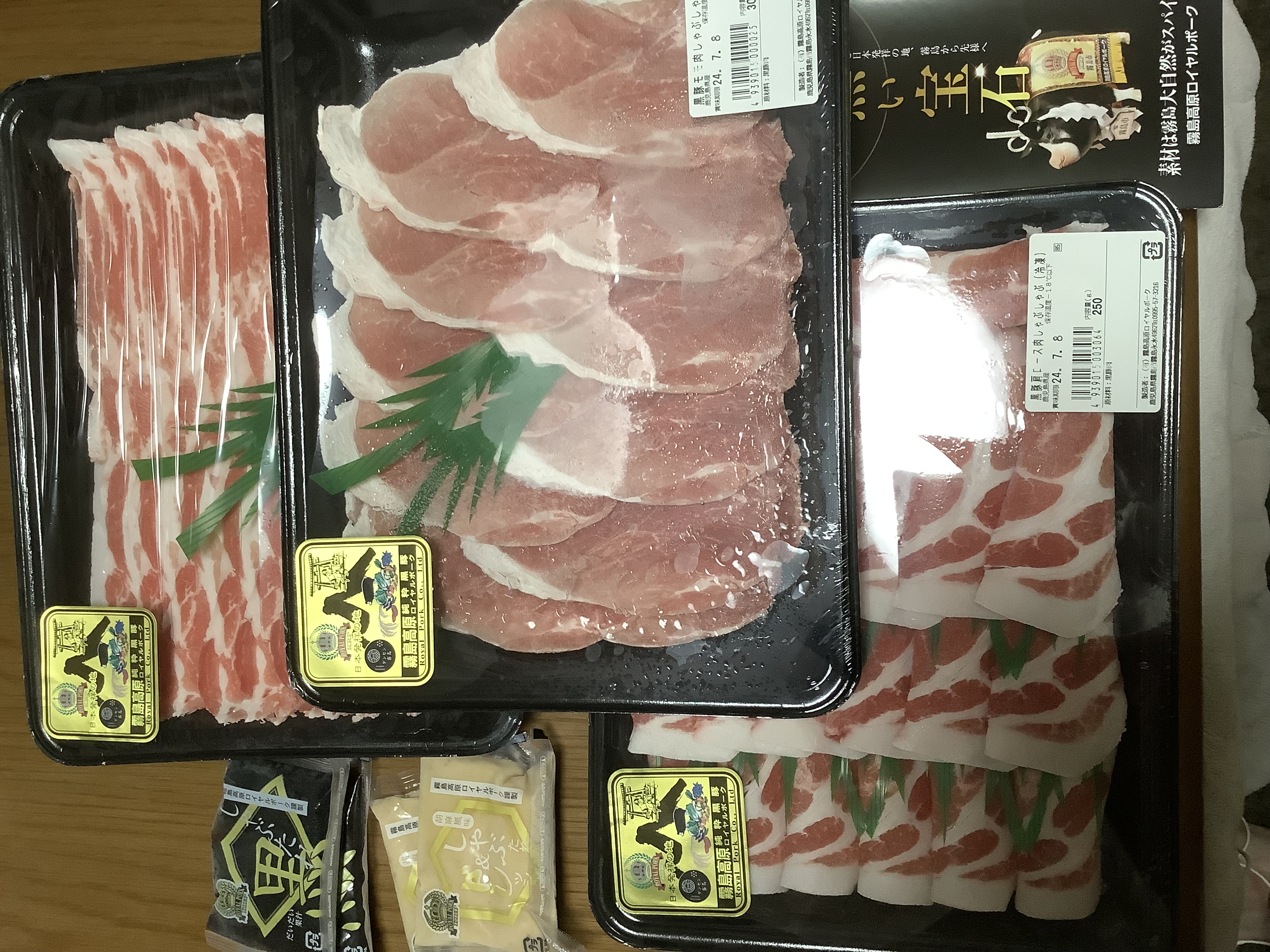 箱を開けると黒豚肩ロース肉・黒豚バラ肉・黒豚モモ肉の3種類のお肉がそれぞれ入っています。お肉が綺麗なピンク色で、見るだけで美味しそうな感じが伝わってきます。