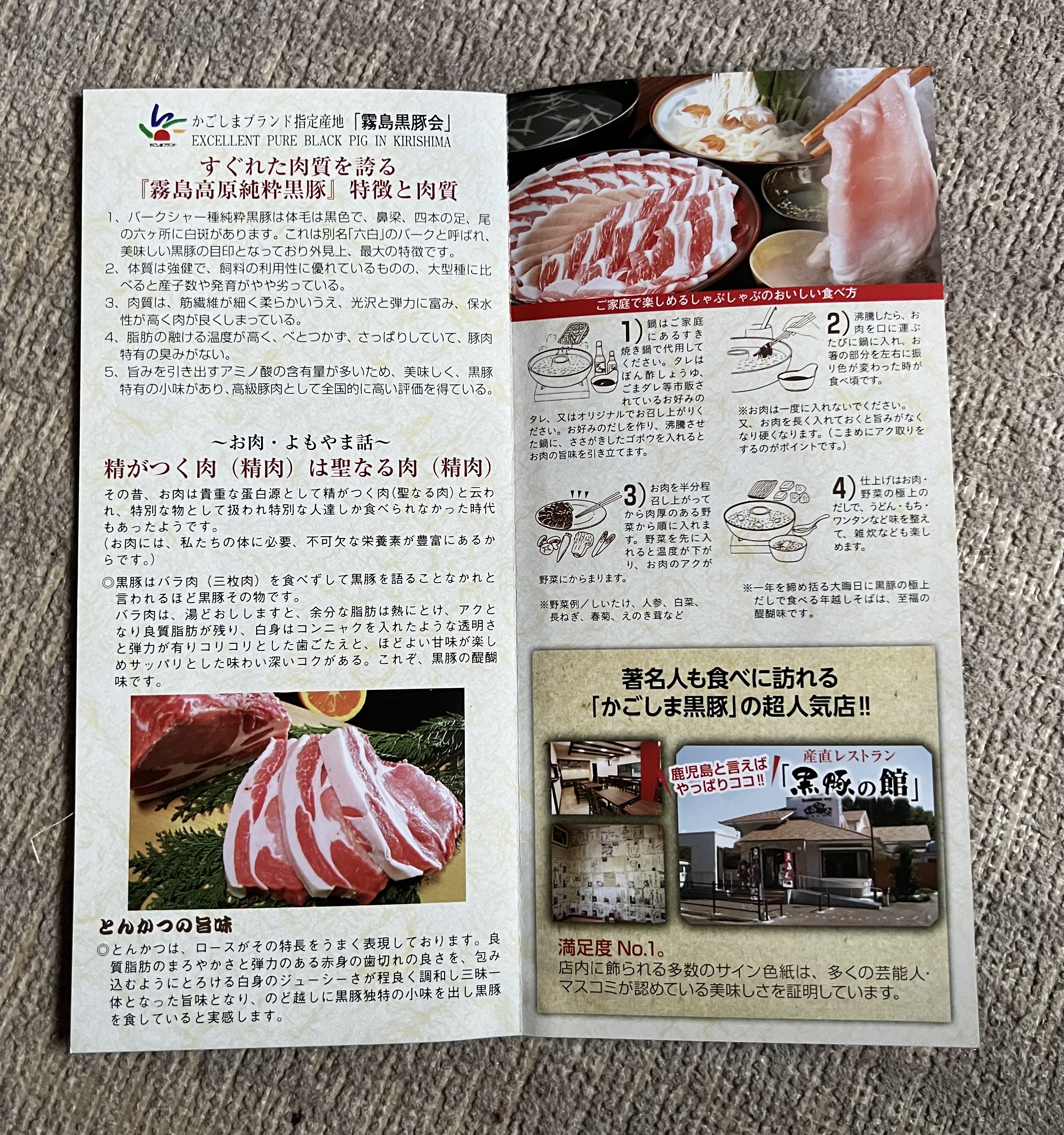 しゃぶしゃぶの美味しい食べ方やおすすめの具材などが書かれたリーフレットも入っています。冷凍で届くので、前日から冷蔵庫で自然解凍していただきました。お肉が綺麗にカットされて並べられているので取り分けやすかったです。