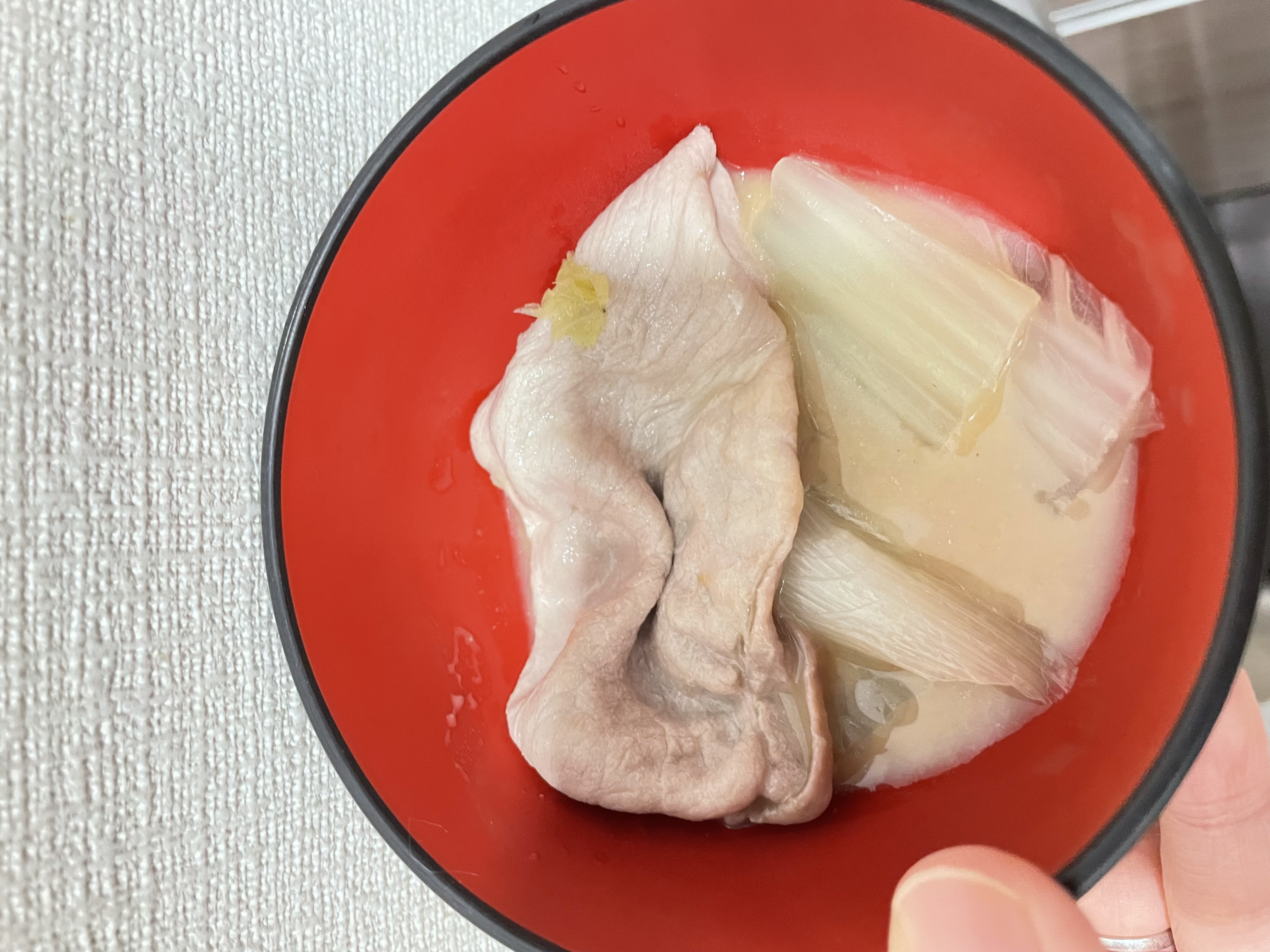 モモ肉はしゃぶしゃぶにすると固くなりそうなイメージでしたが、パサつかずしっとりしていて、柔らかいながらも身がしっかり詰まっています。モモ肉は脂身が少ないので、赤身の美味しさを感じられてヘルシーに食べられます。