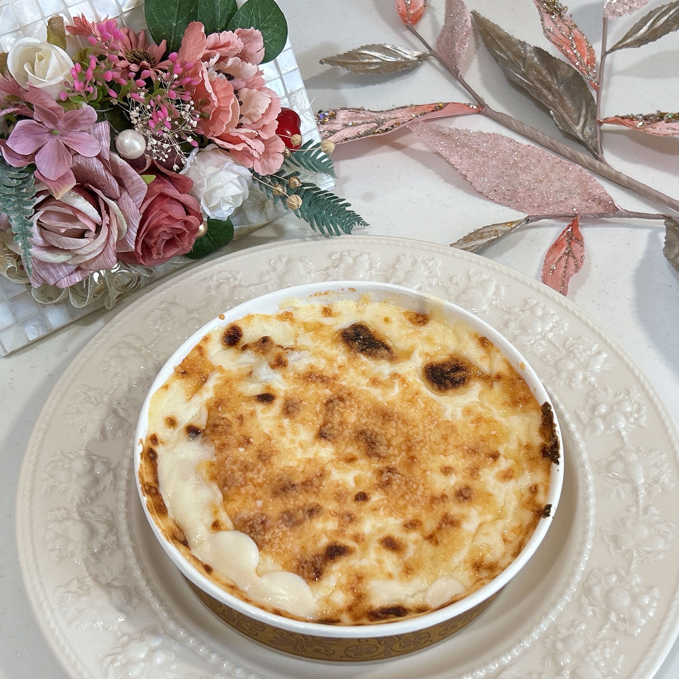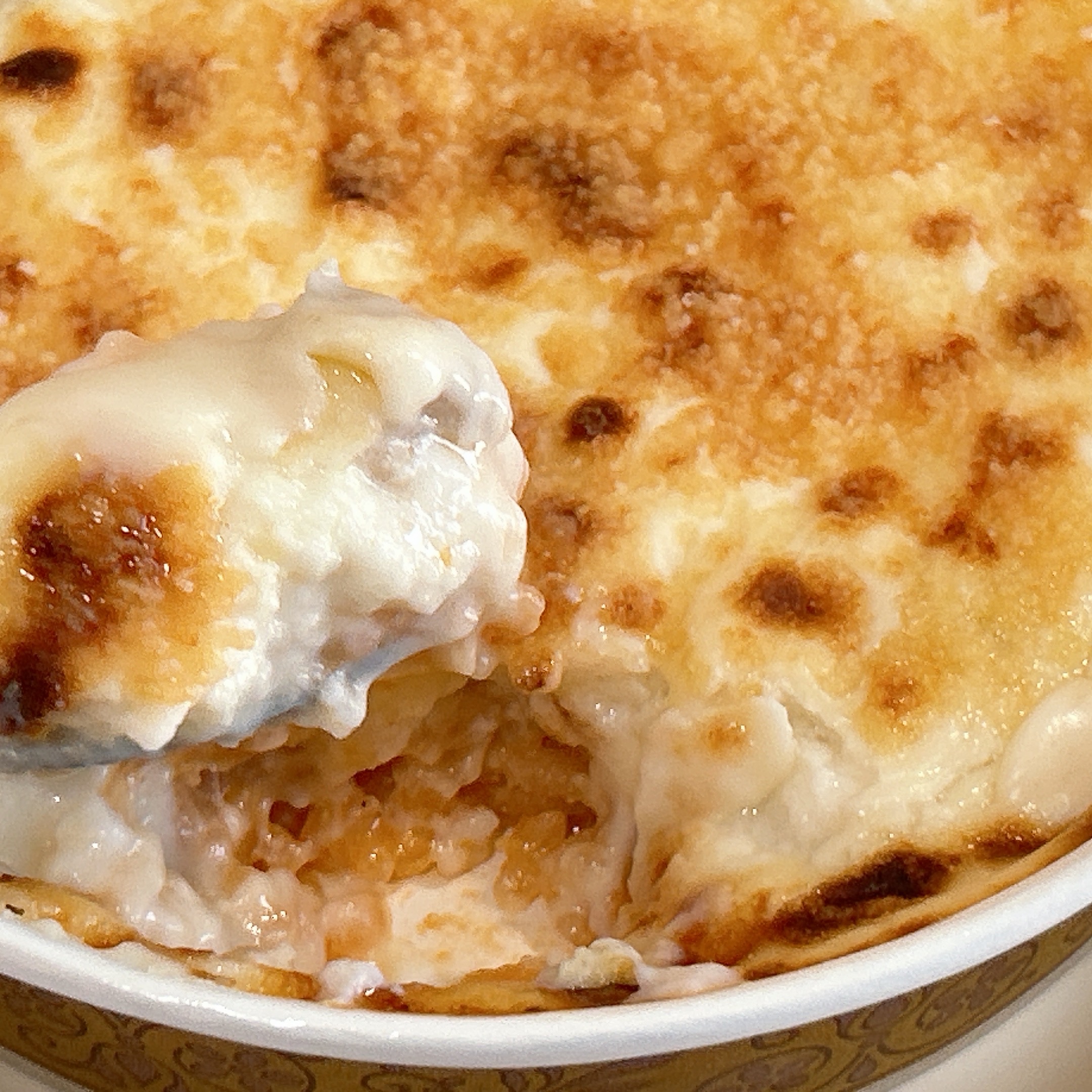 ベシャメルソースとライス、厳選したチーズをリゾートオリジナルのグラタン焼き器で丁寧に焼き、優しい風味のあるグラタンに仕上げています。
