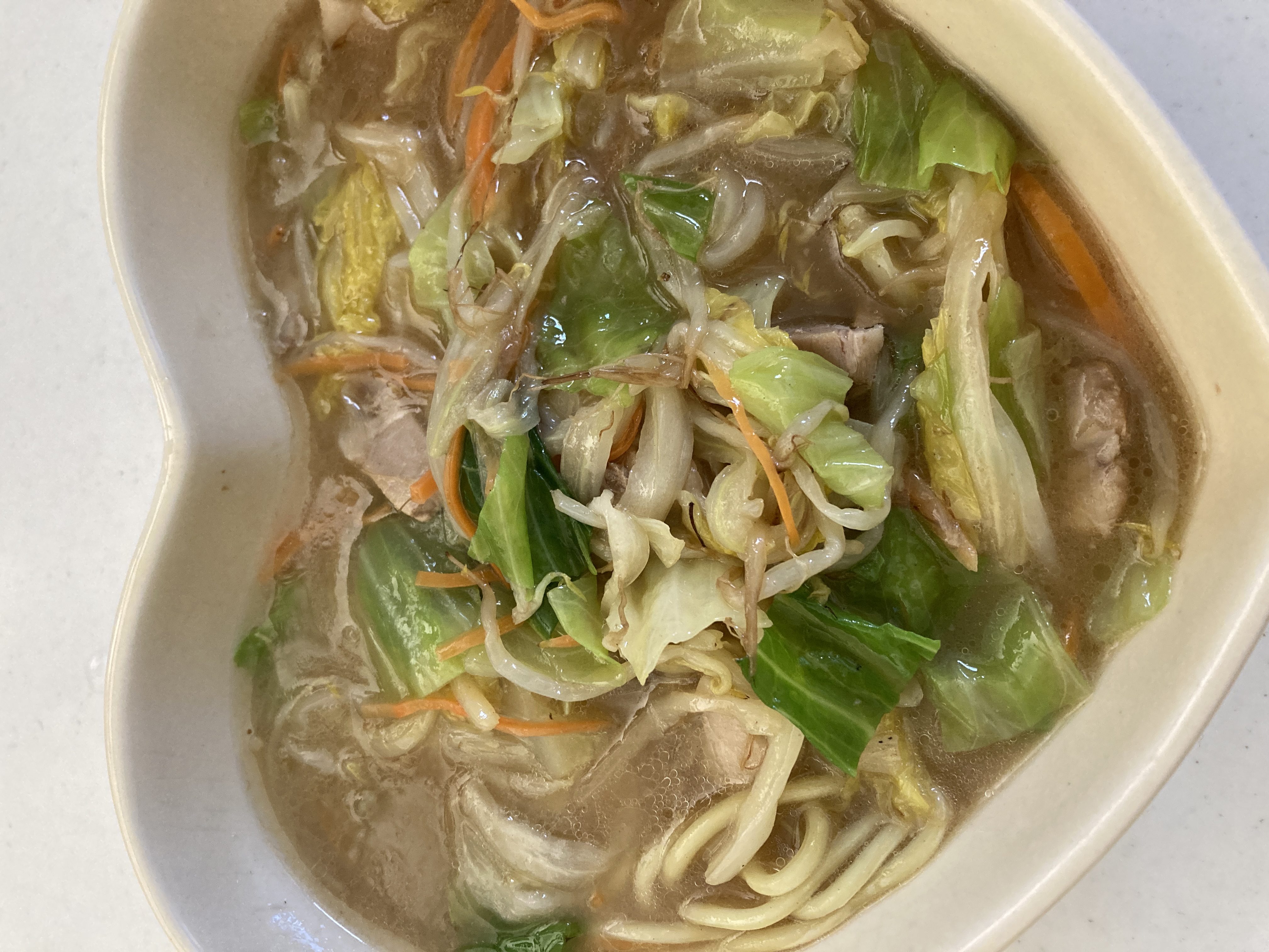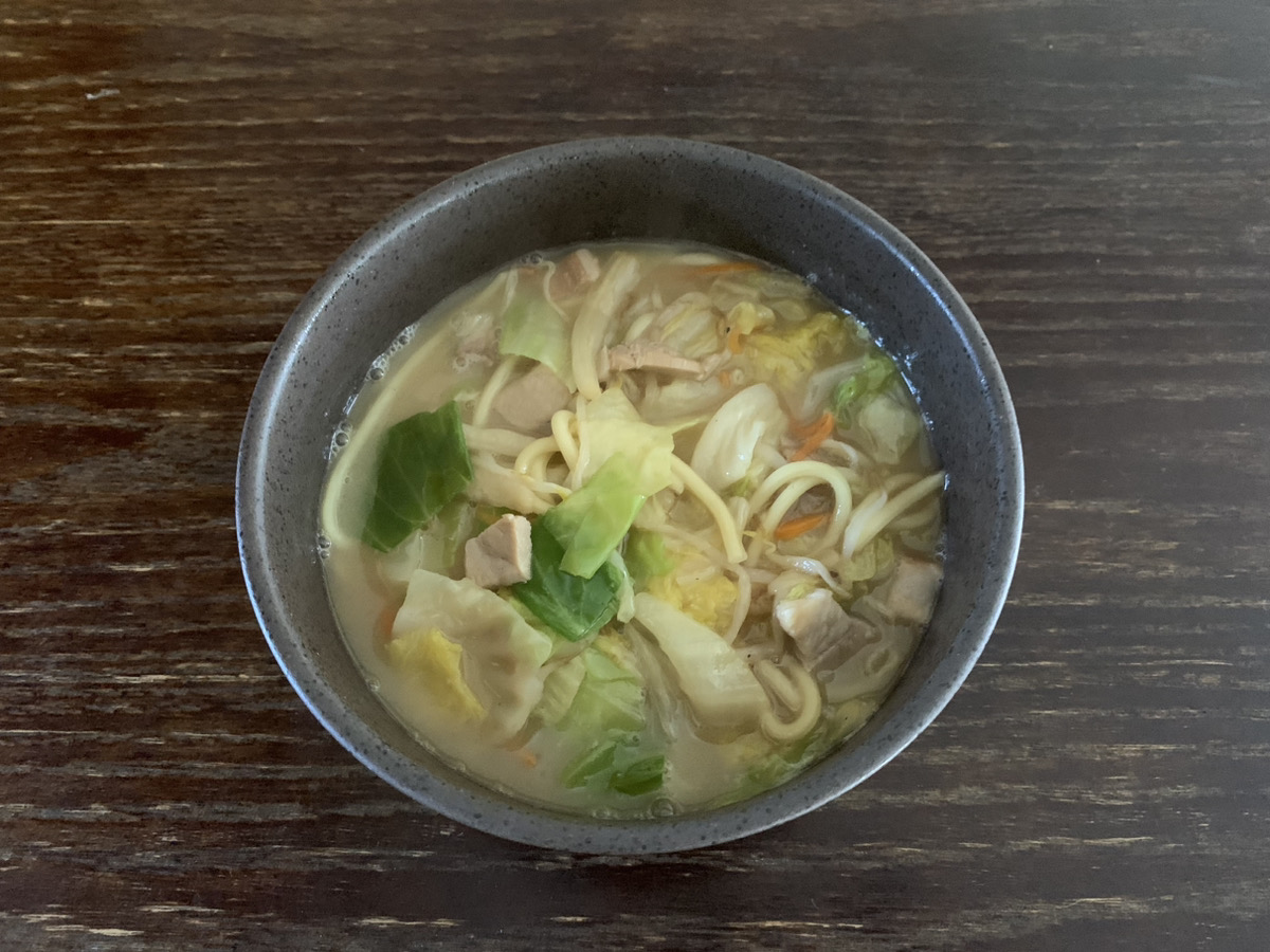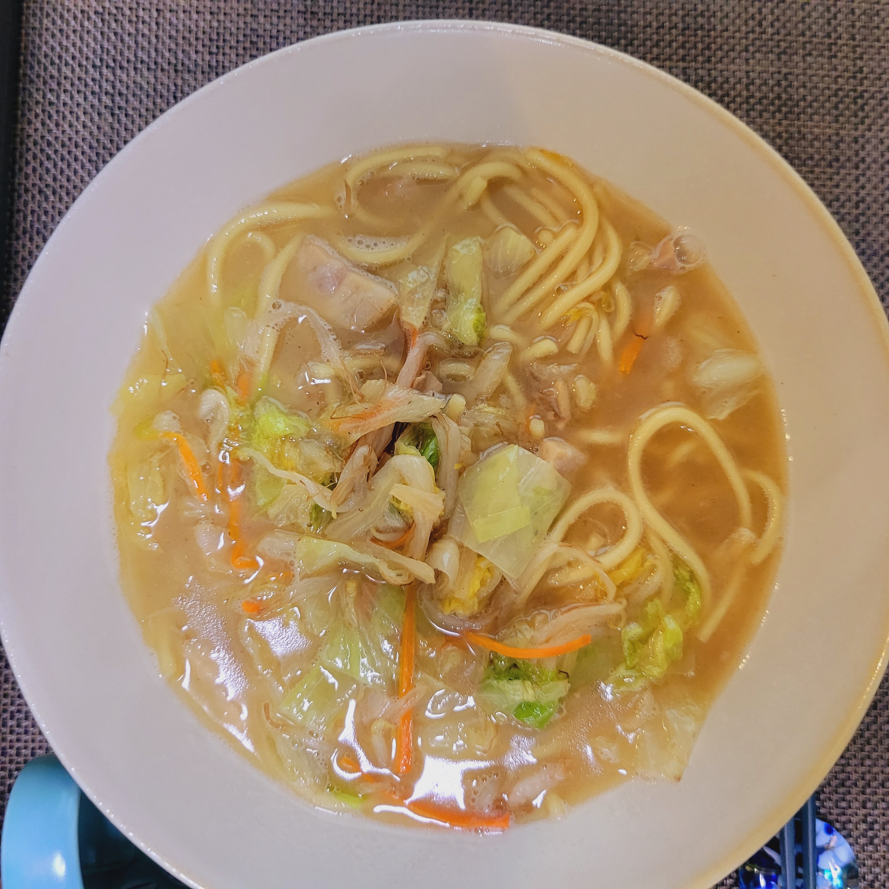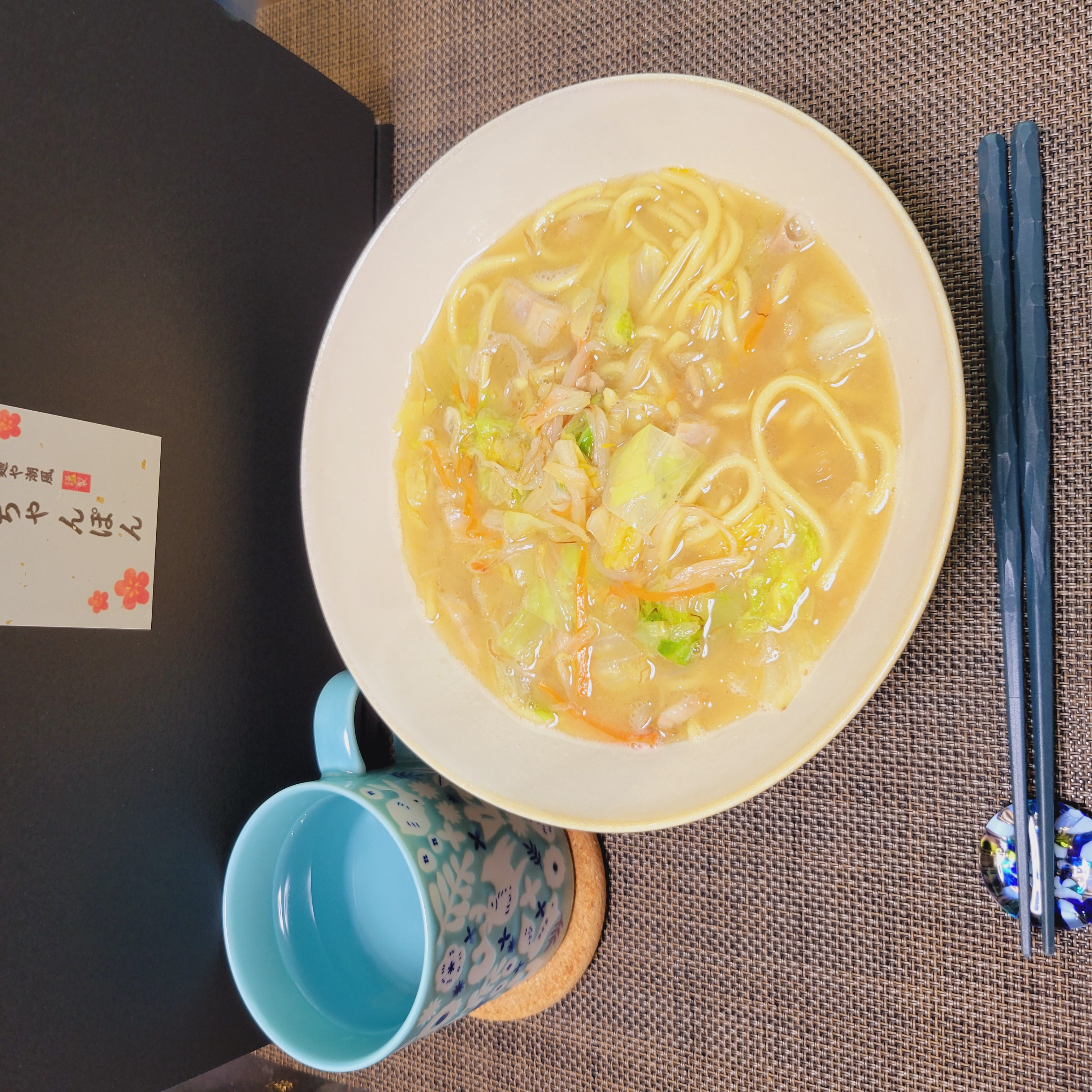 いっそ、❝天然塩ちゃんぽん鍋❞と称し、鍋料理として頂き、残った煮汁にご飯を入れて少し煮込み、溶き卵やスライスチーズを投入して煮汁も全部食べ切るっていうのも有りだと思う!絶対美味しい♪