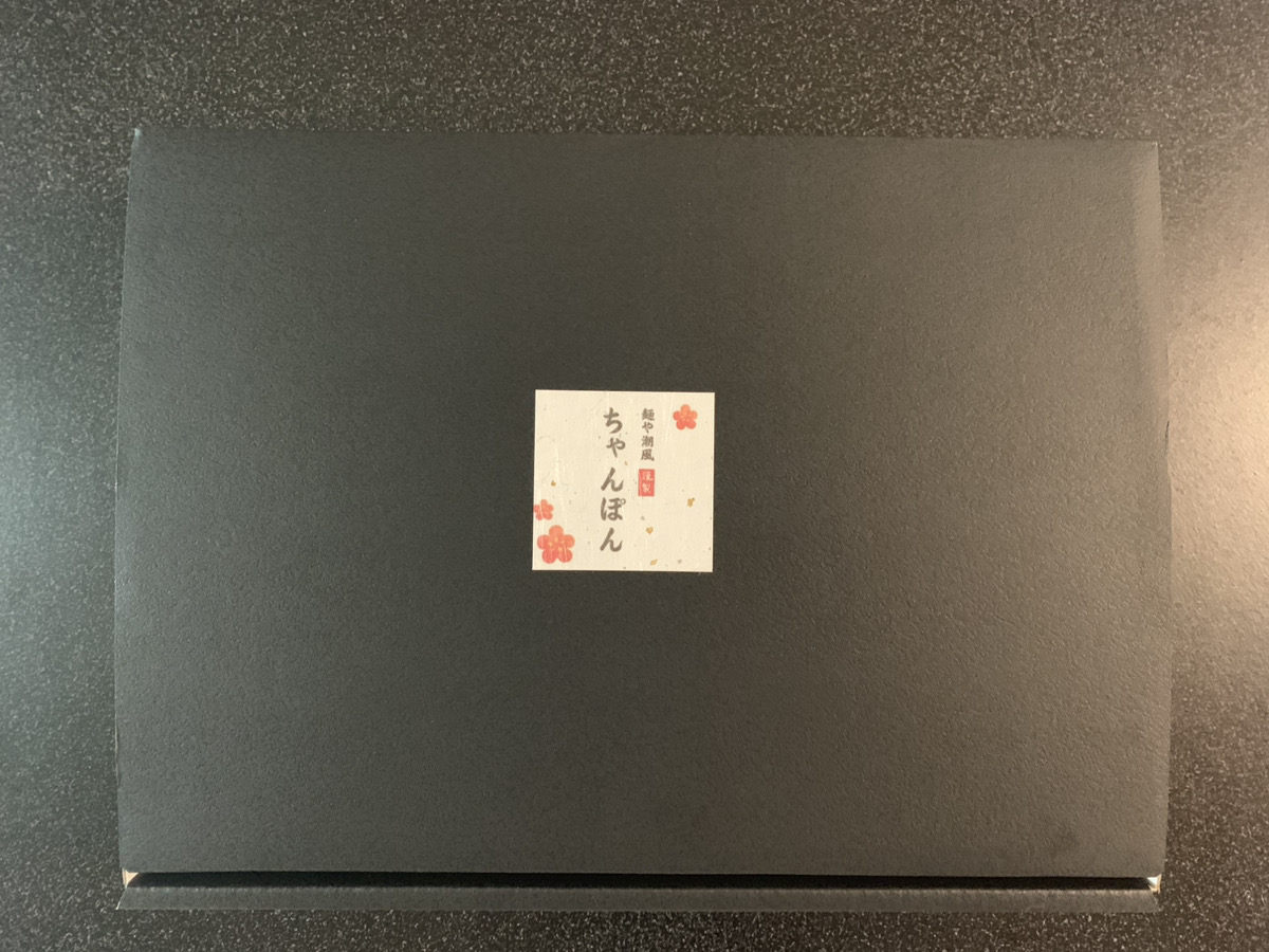 この可愛らしい包装紙を外して現れたのが、「天然塩ちゃんぽん」3食分が きっちり収められた漆黒の化粧箱!