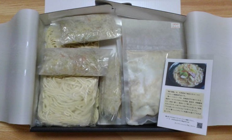 「潮風 冷凍ちゃんぽんのおいしいお召し上がり方」という 葉書サイズのリーフレットも、防水性の透明な袋に入れて添えられていました♪
