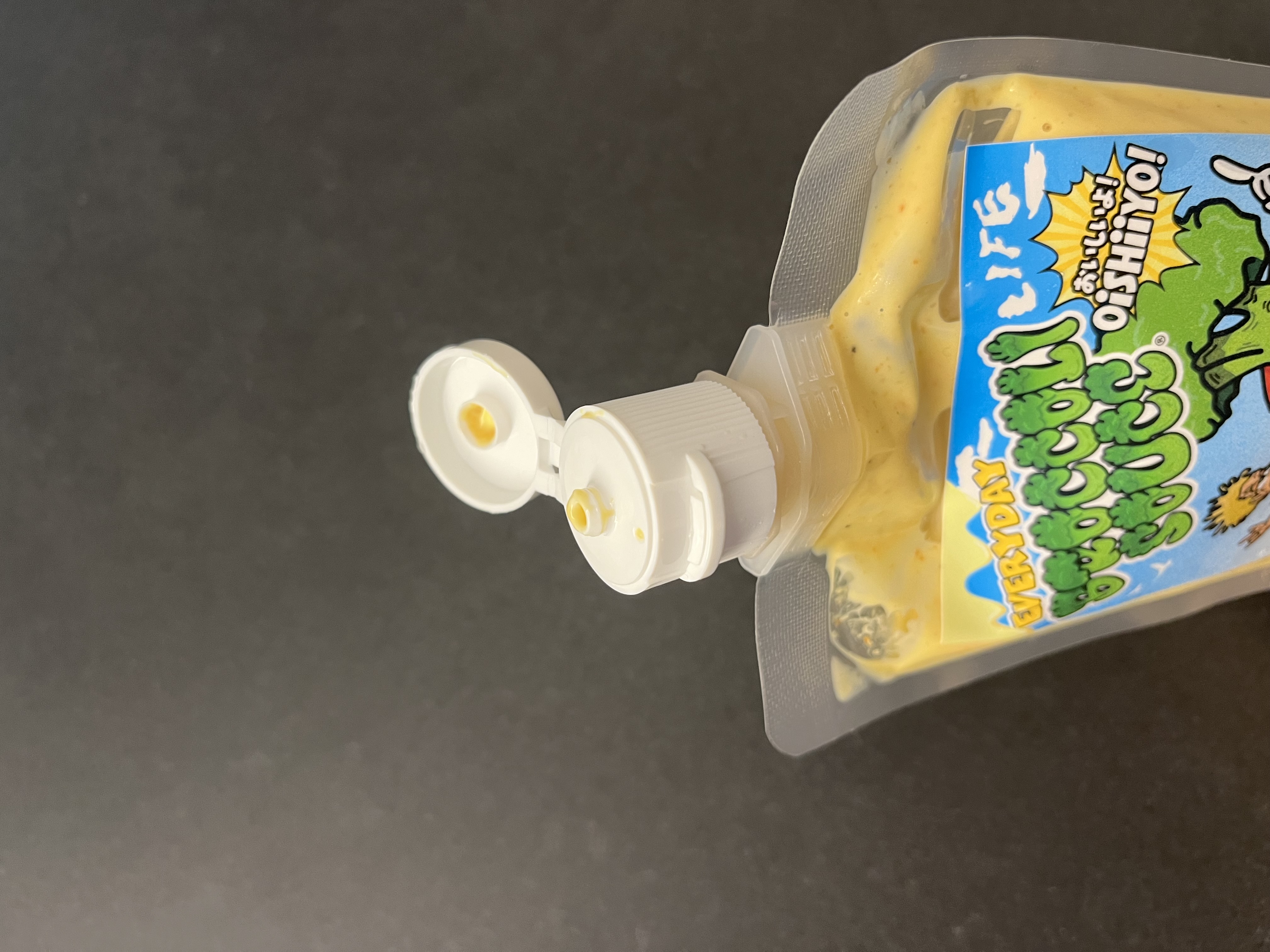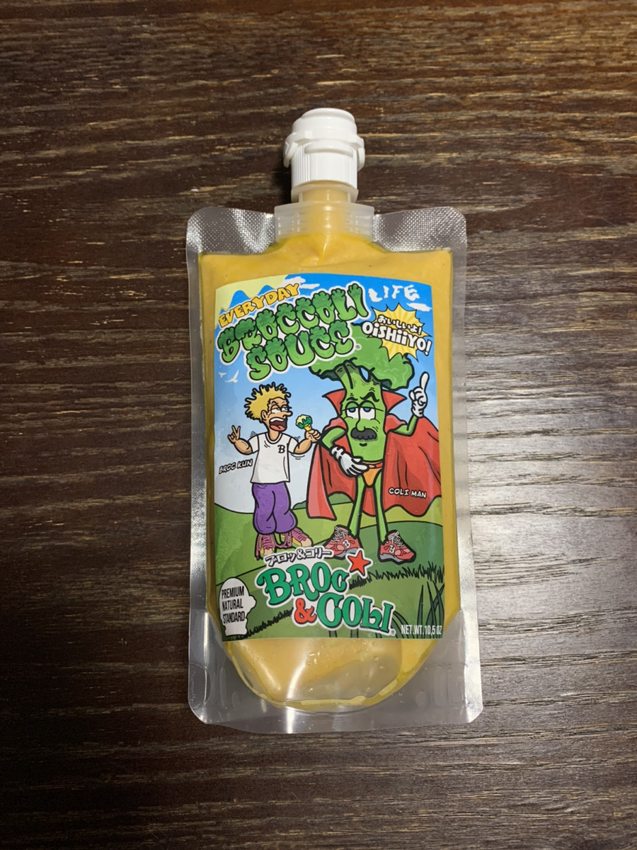 そこへBROCCOLI SOUCEをかけます。ブロッコリーのつぼみにも茎にもしっかりソースが乗ったところをパクリ。ふわっとニンニクが香って、なめらか&クリーミーな食感のソースですね。思いの外やさしい~。商品のキャラクターっぽくソースの味わいもクセ強かと思ったけれど、まろやかなコク旨ソース。この味を何かに例えるなら、うーん、ポテチのコンソメ味に似てるかな。(あの味をソースに変換してみて)