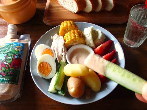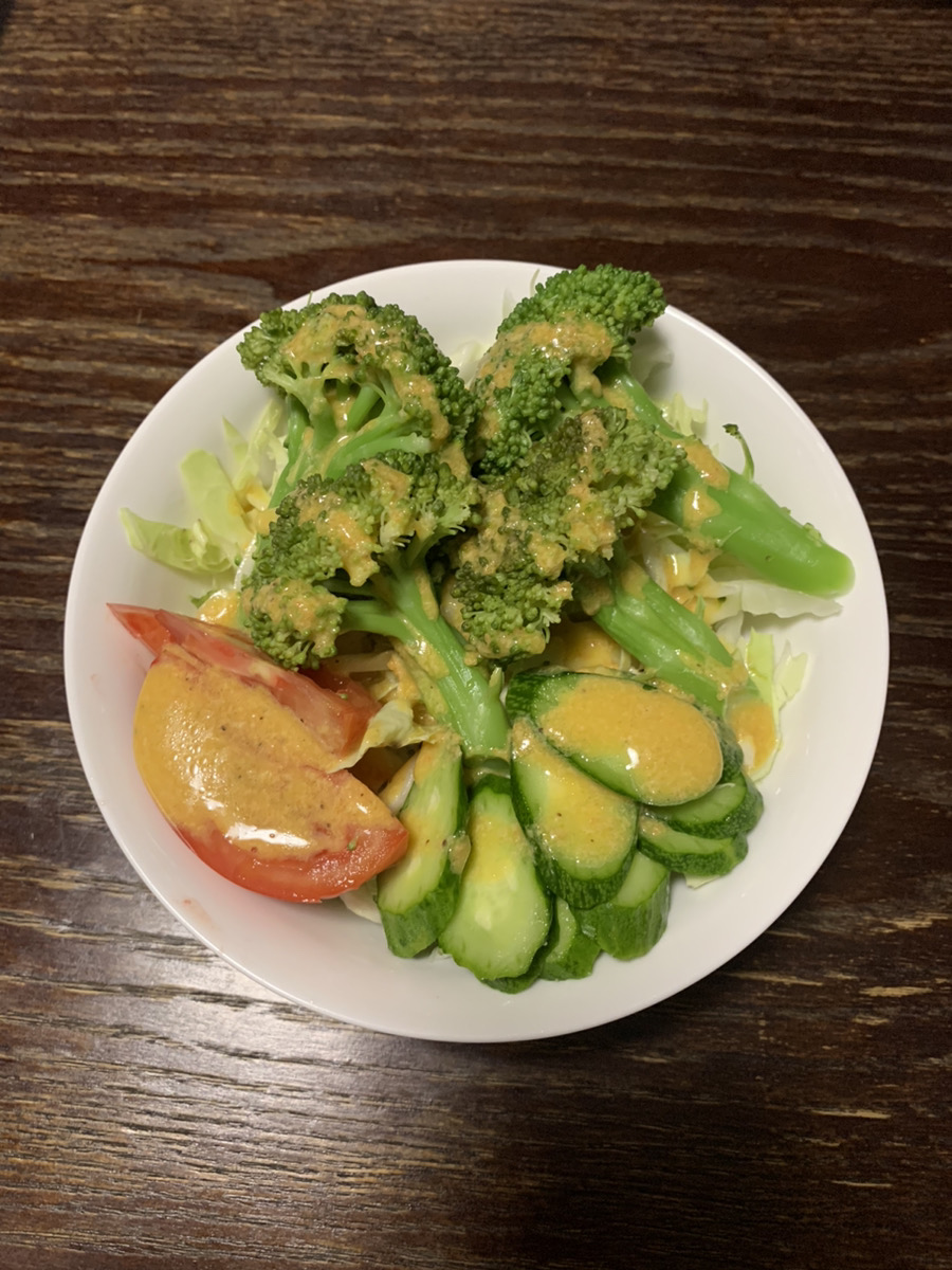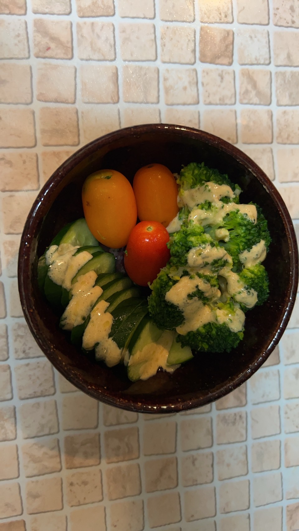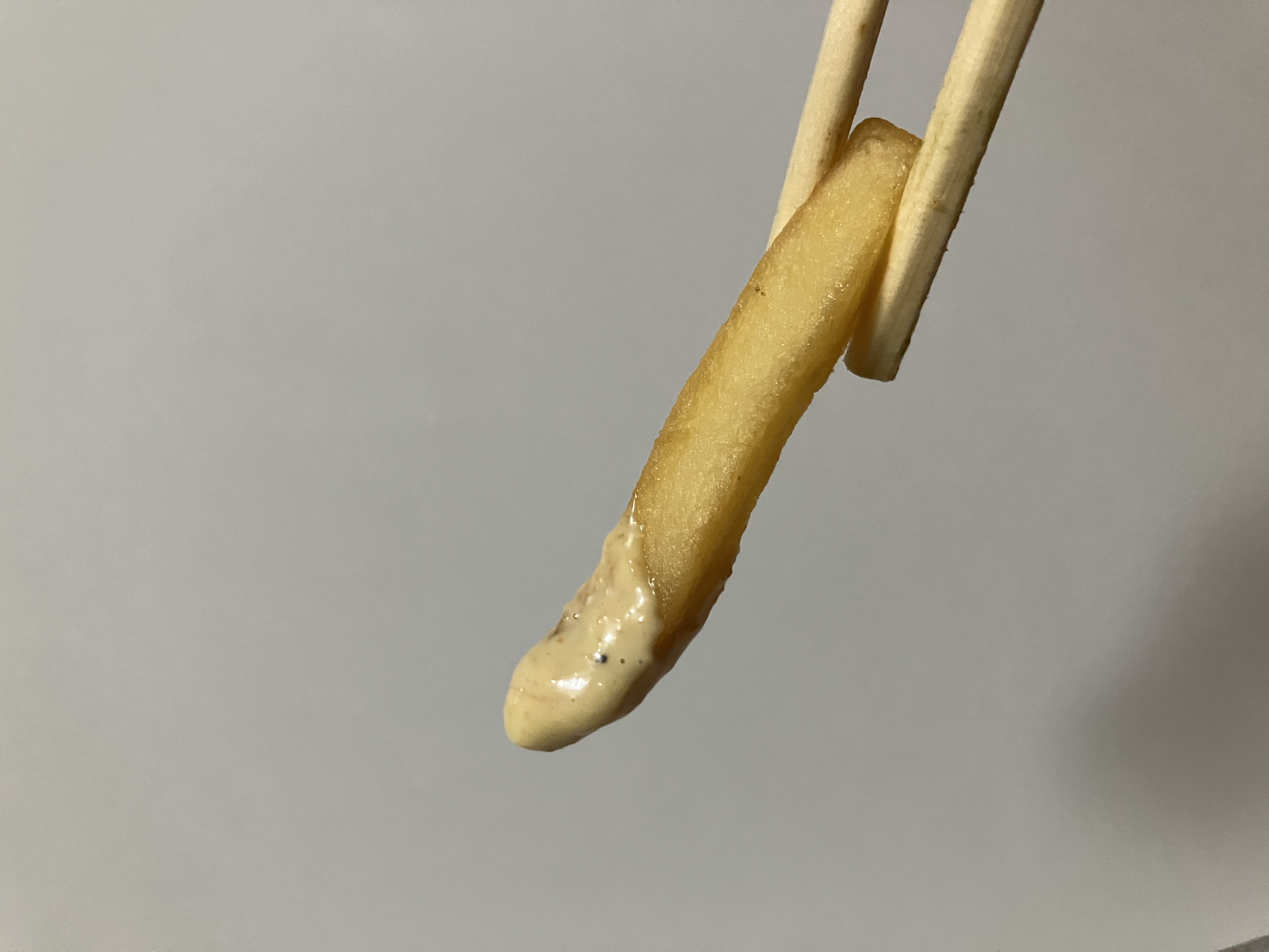 原材料を見るとベースはマヨネーズっぽいけど、食べてみるとそれよりヘルシーな雰囲気。酢が入らないのがマヨとは違うところで、それで酸味はナシ。酸味の代わりに国産野菜(玉ねぎ・人参・ニンニク)の甘さとコク、そしてゴマと香辛料をプラスしています。醤油が入っているのも良くて、斬新なようでいてちゃんと親しみやすい味です。これは全世代に好まれそう。