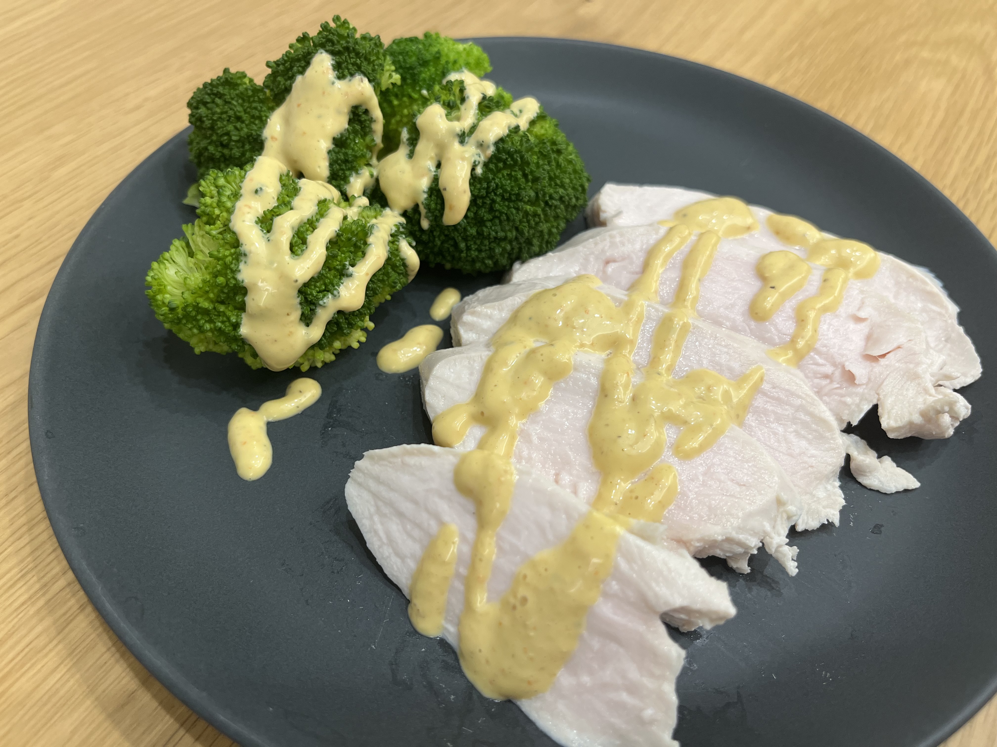 10秒茹でのブロッコリーはコリッコリッ。BROCCOLI SOUCEと合わせるとひと皿ペロリの美味しさで、お店でリピート率100%のメニューというのも頷けます。
