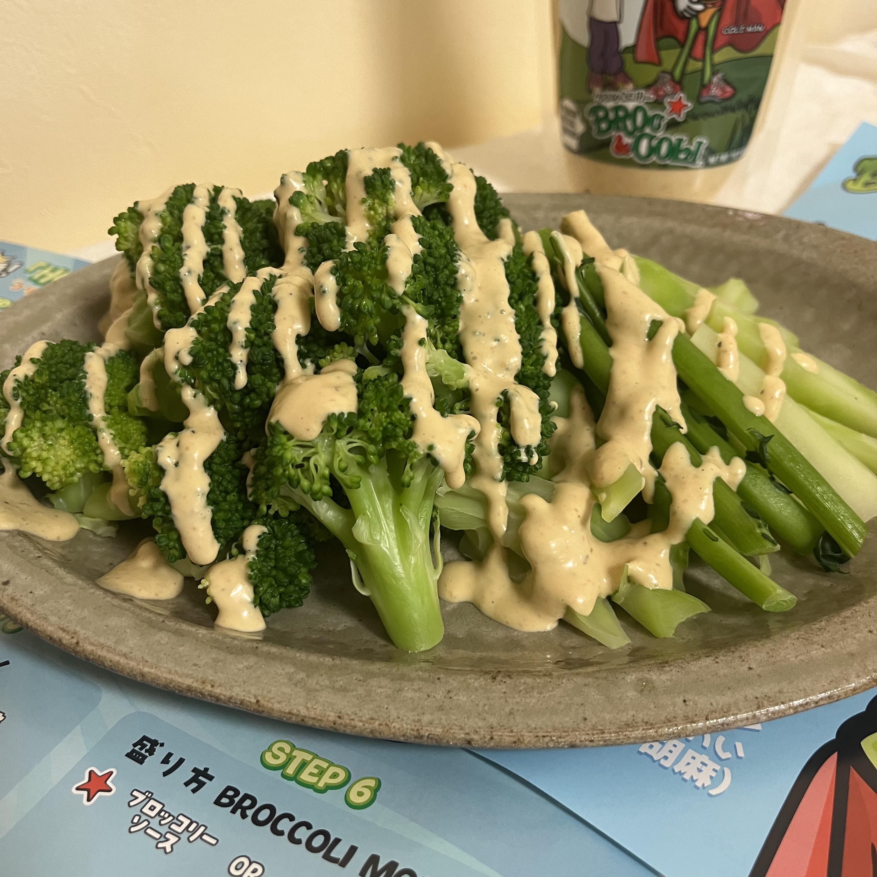 累計3万皿も作られたという「ブロッコリー盛」のブロッコリーが10秒茹での衝撃!そしてこのメニューの専用ソースがBROCCOLI SOUCEというワケ。それは食べてみたーい!どんな味なの?ブロッコリーの食感は?ソースとの相性は?