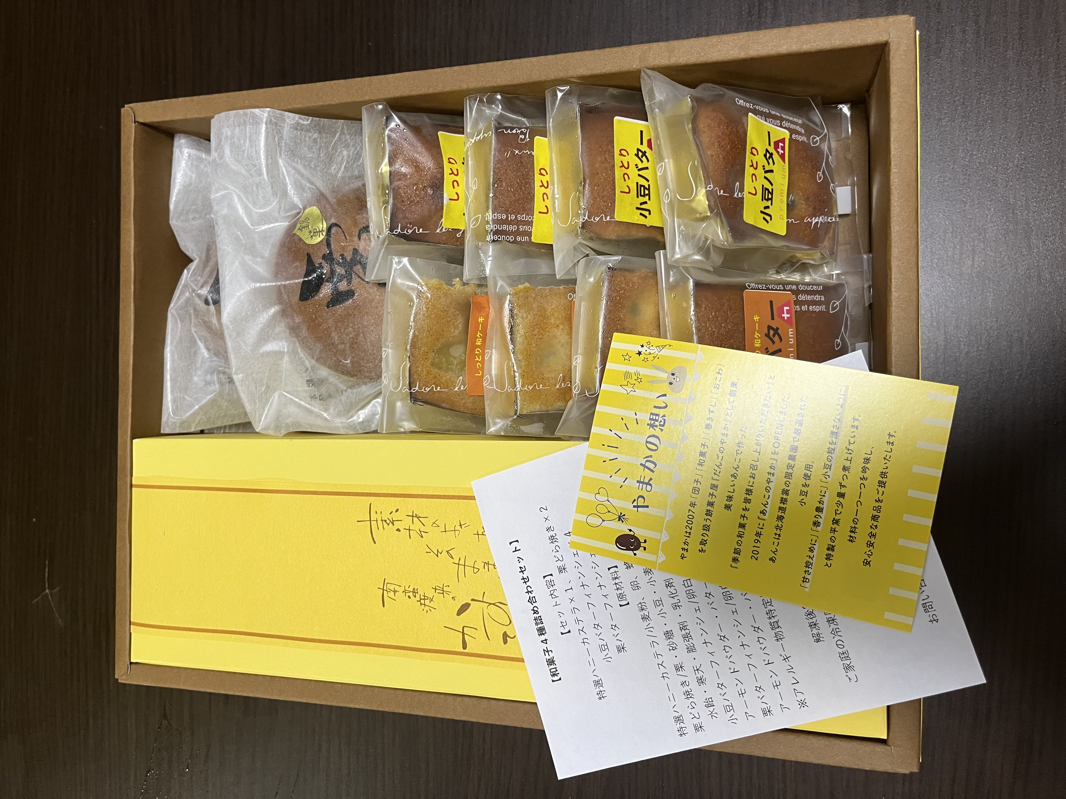 美味しいあんこにこだわった「和菓子詰め合わせ」です。「特選ハニーカステラ」は、とにかくしっとりした生地でザラメが効いていて、手作りでしか出せない味と食感です。「栗どら焼き」は、はちみつたっぷりのしっとり生地に、味わい深い餡とごろっと大きな栗がたっぷり入っています。「フィナンシェ」は、小豆バター、栗バターの2種。バターたっぷりのフィナンシェに、ふっくら煮あげた小豆や栗を合わせています。しっとり贅沢な仕上がりです。異なる味わいのセットなので食べ比べが楽しめます。化粧箱に入って届くので贈り物にもおすすめです。