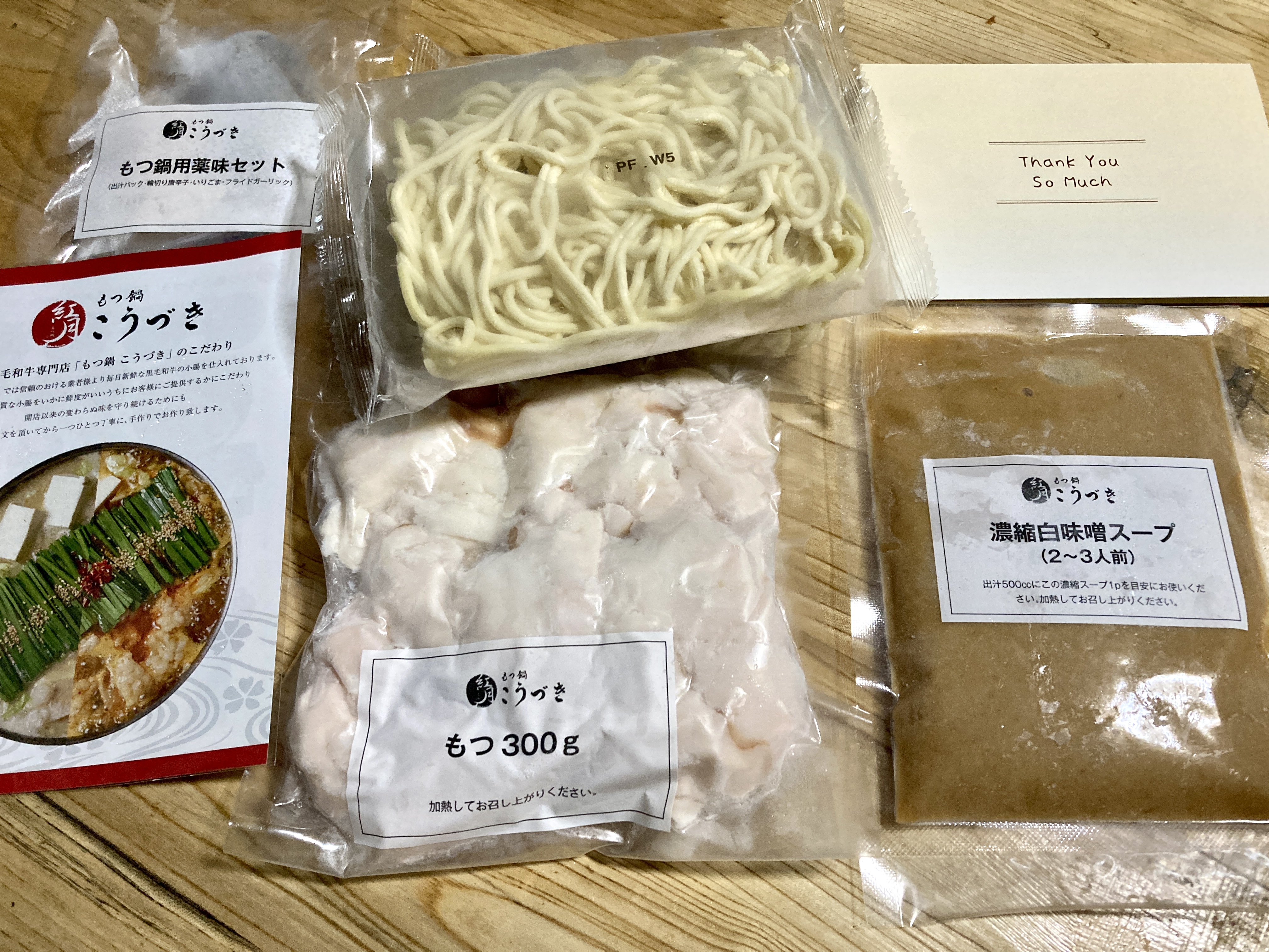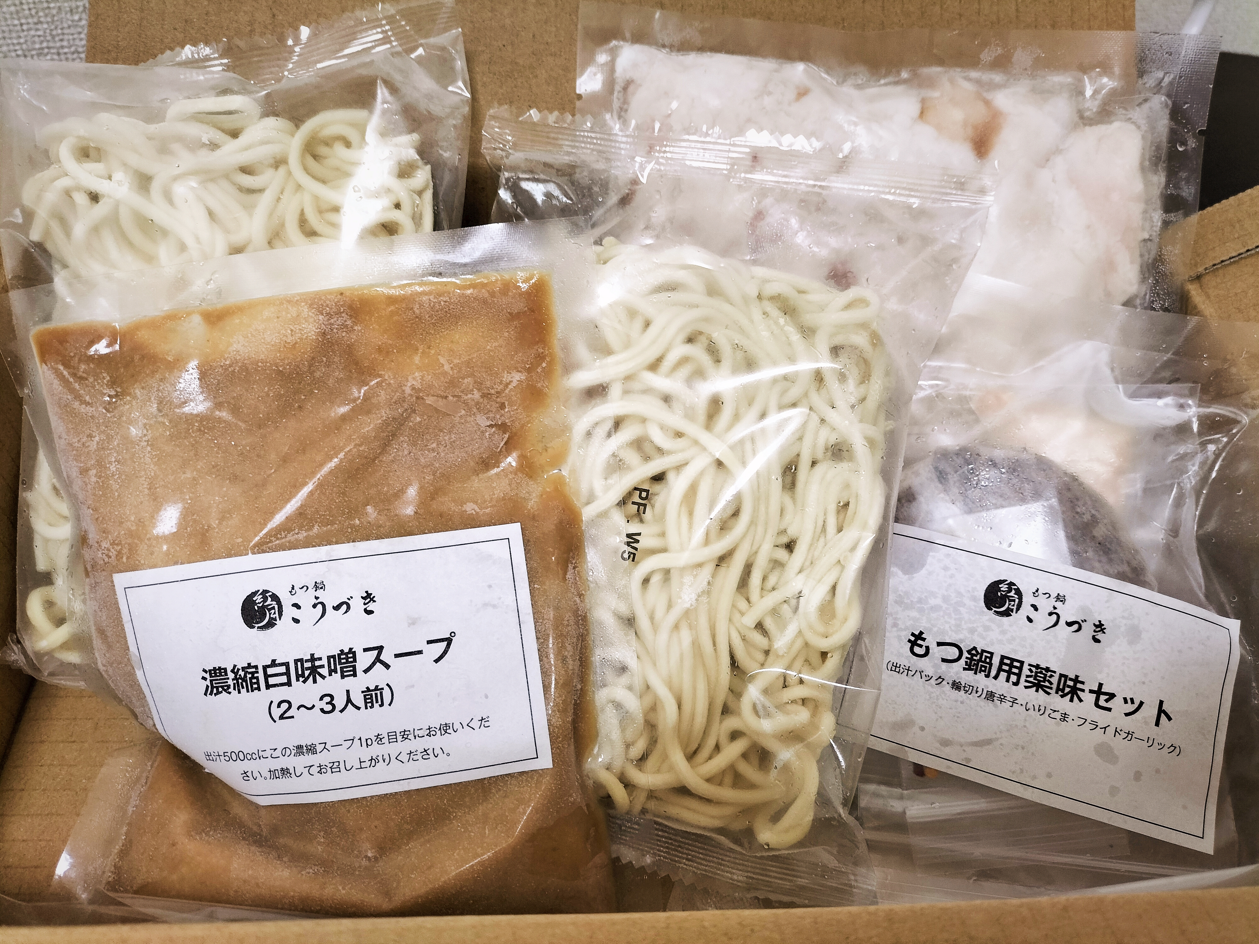 福岡のご当地グルメ「もつ鍋(味噌味)」です。上品でスッキリとした甘味とコクがある「あご出汁」を使用。プリプリの「黒毛和牛もつ」の旨味を引き出します。スープに使用している「米こうじ」は、旨味が凝縮した上品な香りとコクが特長。風味豊かな西京味噌をベースに仕上げています。赤みそ等4種の味噌と甘みのある西京味噌を絶妙な配合でブレンドしているので、もつ肉と野菜の味わいを引き立たせています。店舗でしか楽しめなかった味が自宅で楽しめます。