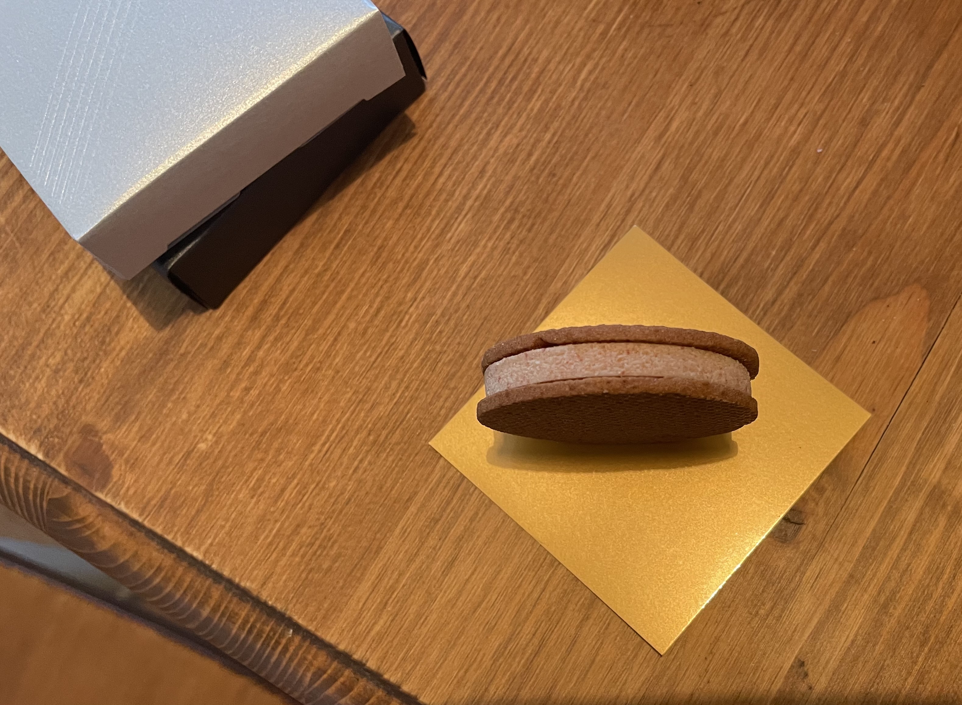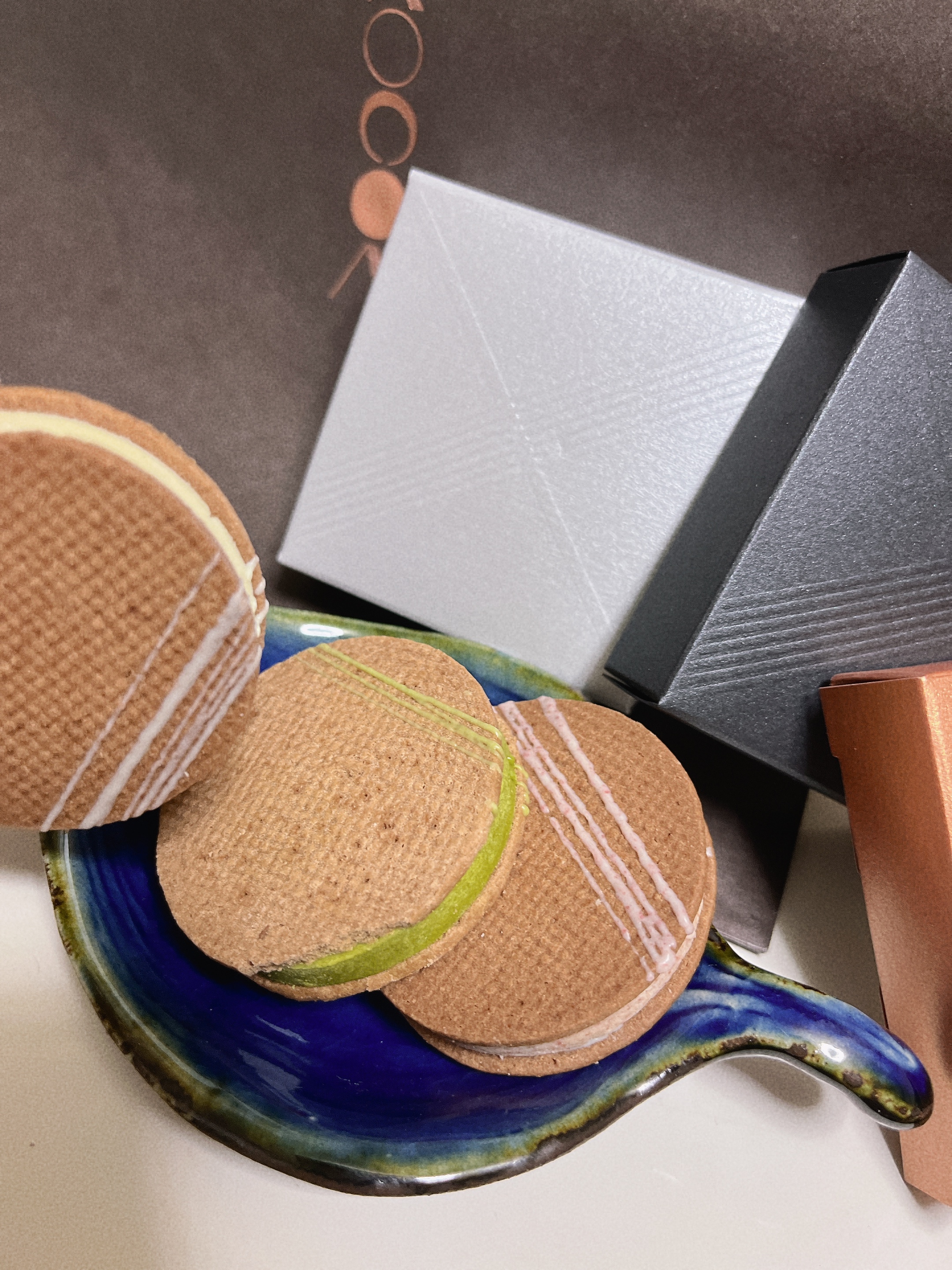 チョコレートをサンドしてあるクッキーが一般的なクッキーよりも口溶け柔らかでチョコと一緒に楽しめる感じがとても合うなと思いました。五感で味わうをコンセプトとしており、まさに今までにない味わいが楽しめて食べるのが新鮮でした。とても美味しかったです。