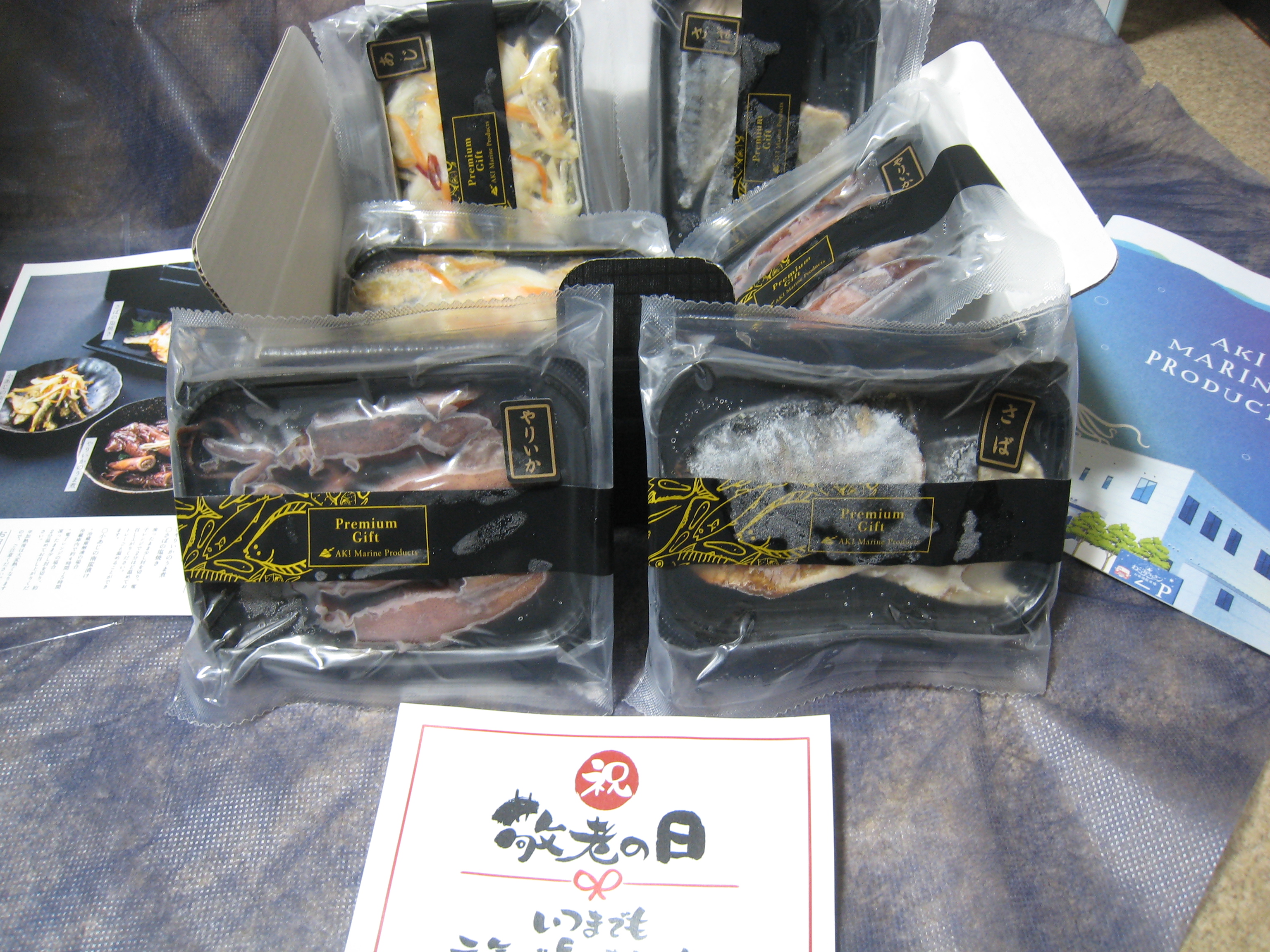 早速、梱包を開くと風呂敷に包まれた商品に敬老の日のメッセージカードが目に入ってきました。