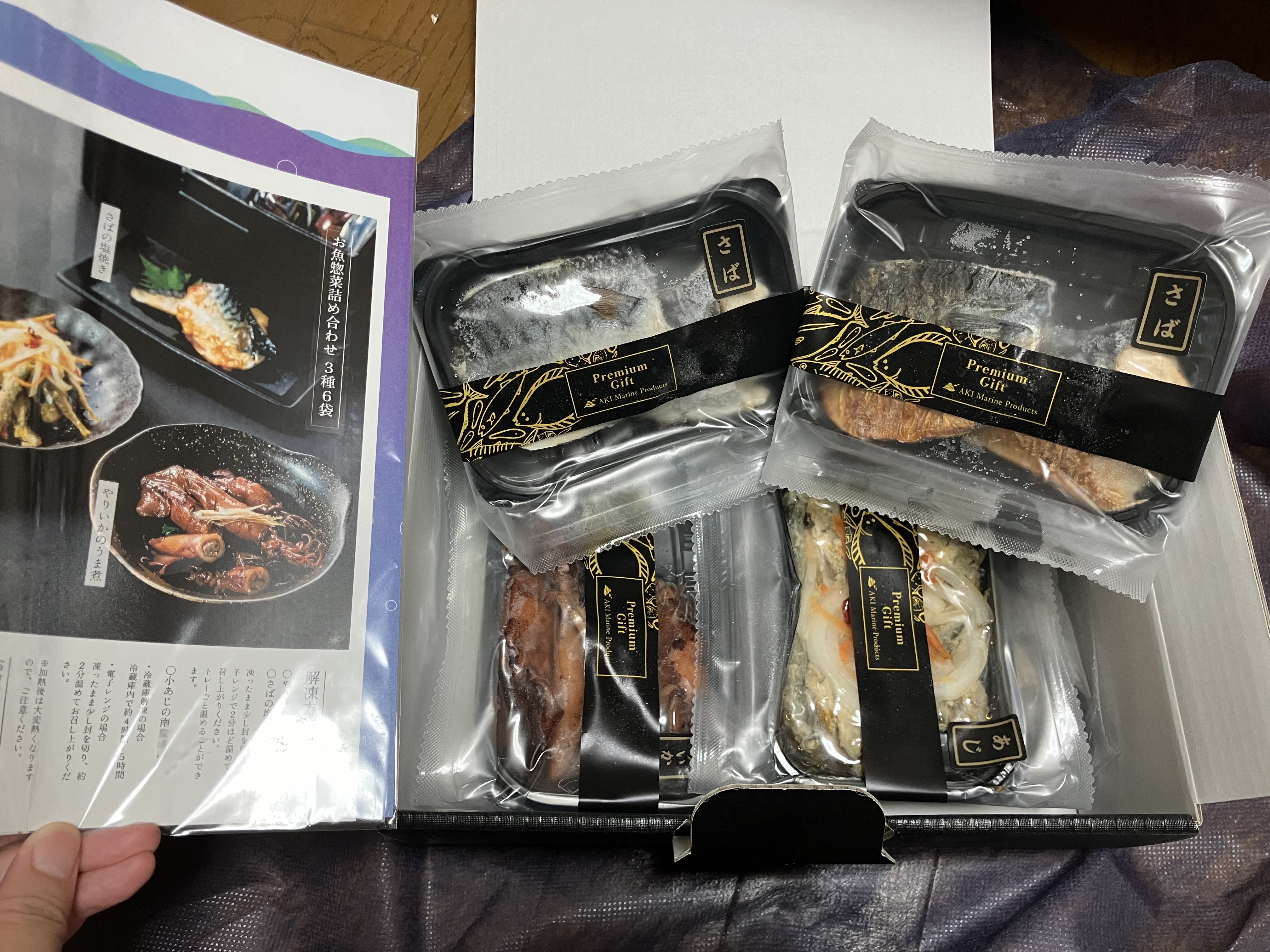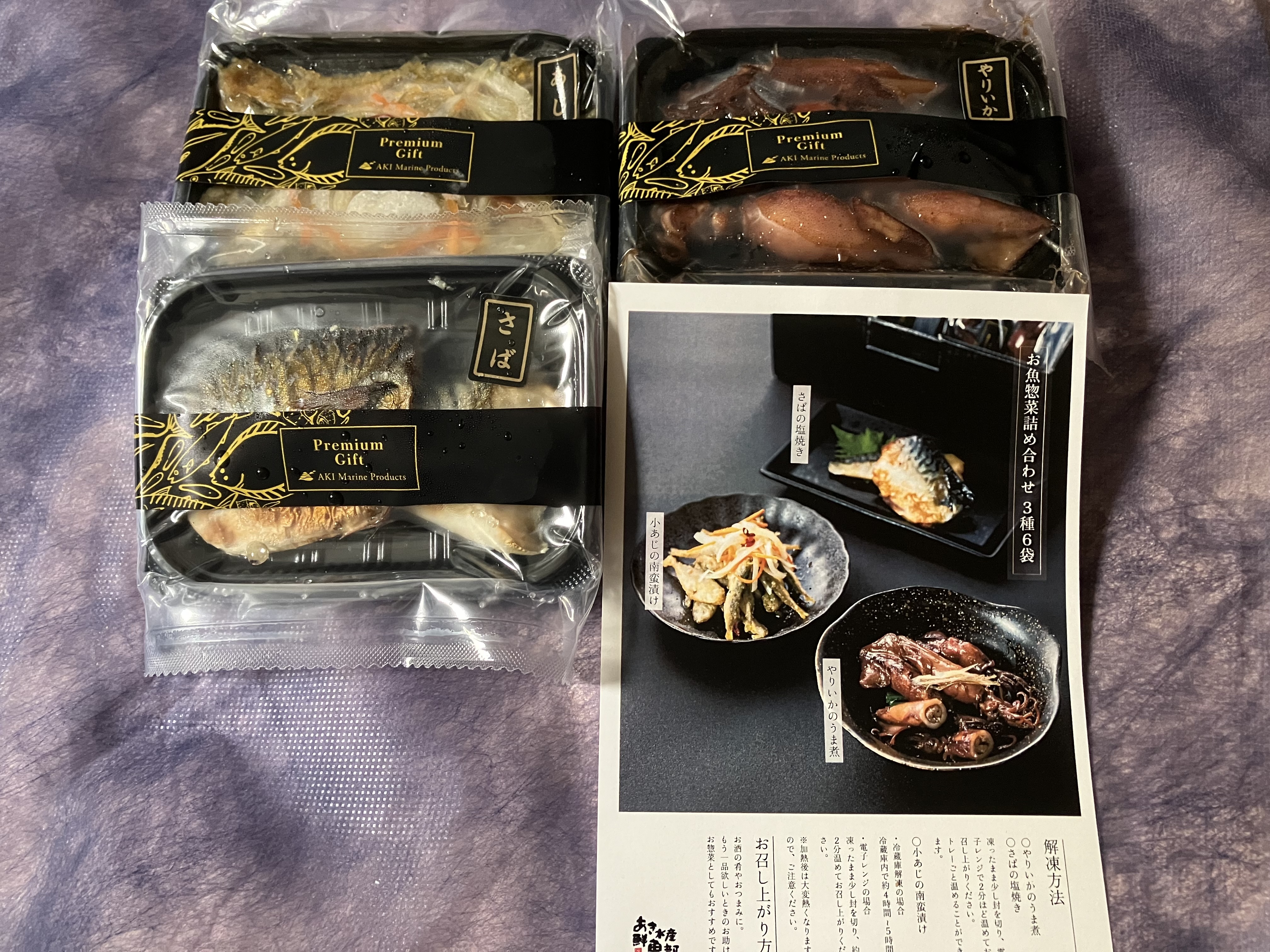 海鮮総菜食べ比べギフトセットです。時間をかけてゆっくり柔らかく、甘辛く味付けた「やりいかのうま煮」、瀬戸内海産の新鮮な小あじをカラッと揚げて、甘酢に絡めた「小あじの南蛮漬け」、自然の塩味を活かした「さばの塩焼き」の3種。異なる味わいのセットなので食べ比べが楽しめます。ギフト箱入りで風呂敷包みされた状態で届くので、贈り物にもおすすめです。