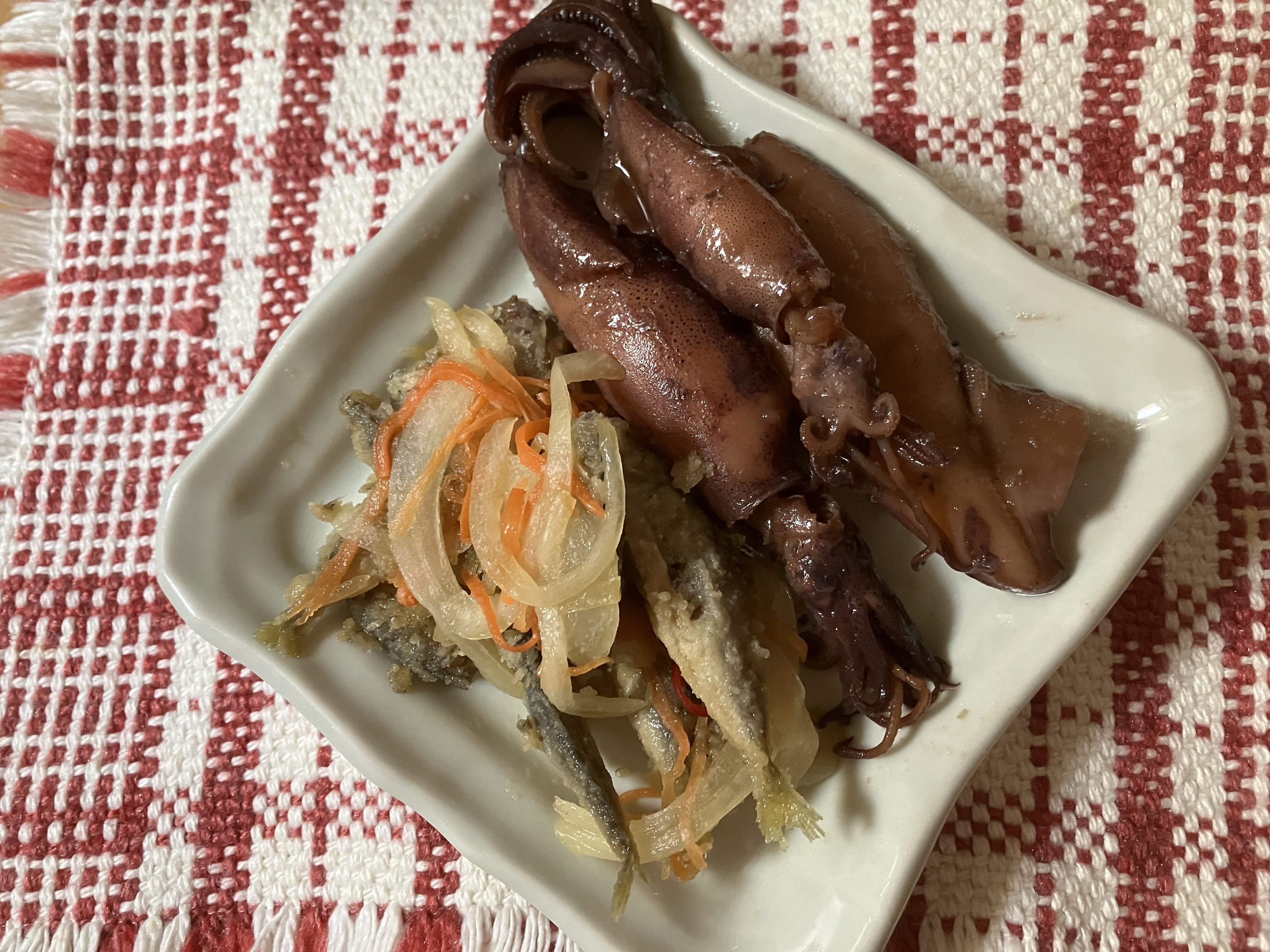 時間を掛けてゆっくり柔らかく甘辛く味付けされているだけあって、柔らかくて丸ごと一口で食べてしまえるのですが、もったいなくてゆっくり味わっていただきました。なかに子持ちのいかがありラッキーでした。全てにある訳ではないようです。