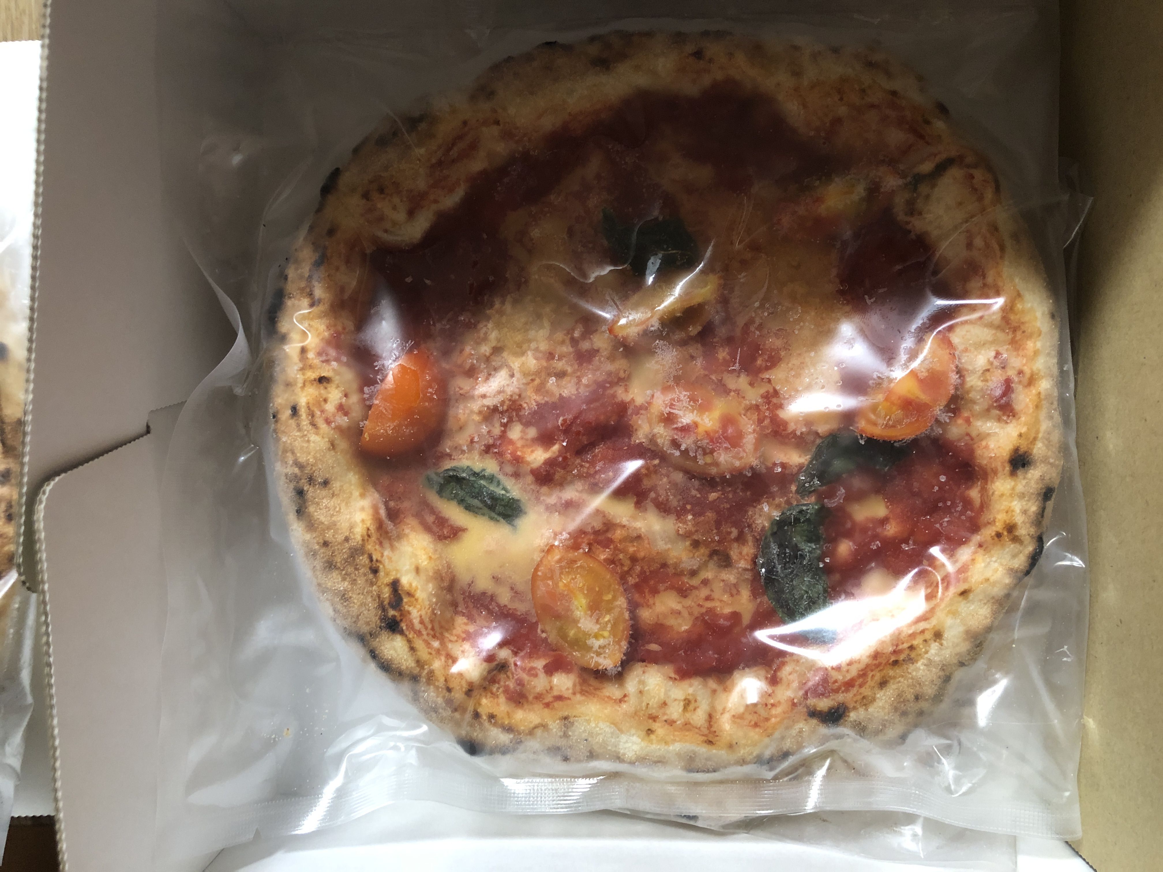 まずはお店で1番人気の「これぞナポリピッツァ」なマルゲリータからいただきます。解凍後にオーブントースターでリベイクすればOK!