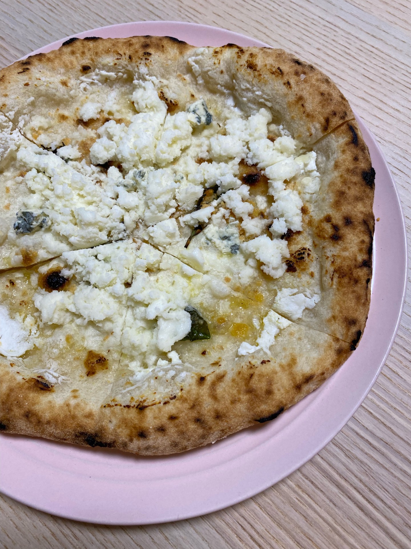 3種類を食べて思うのはこのセットの絶妙さ。ピザの王道のマルゲリータ、溶けるチーズを使わないコサッカ、その逆でチーズが主役のクアトロフォルマッジ。この組み合わせによってトマトソース・チーズの良さがよくわかり、それぞれの美味しさが堪能できました。