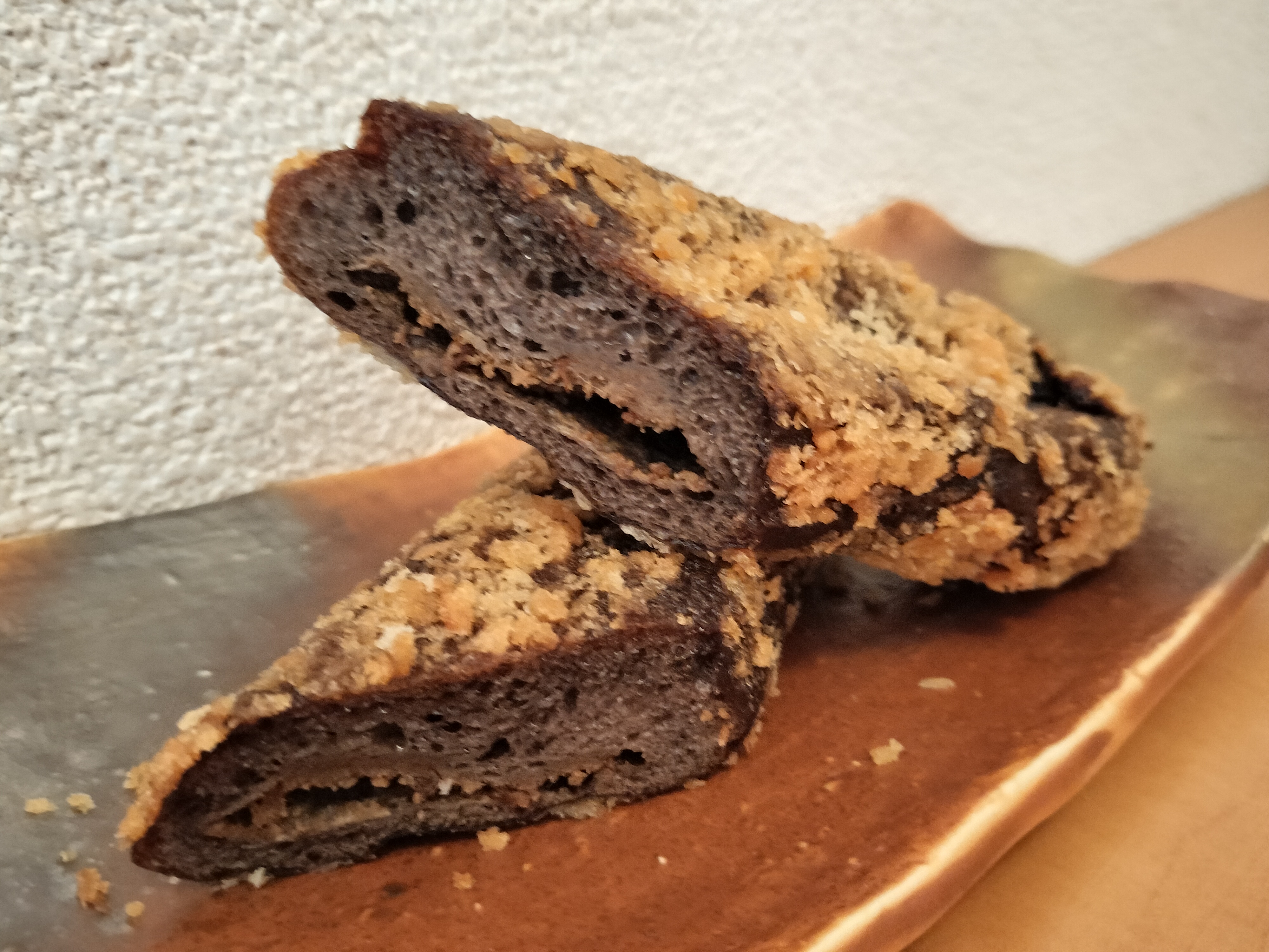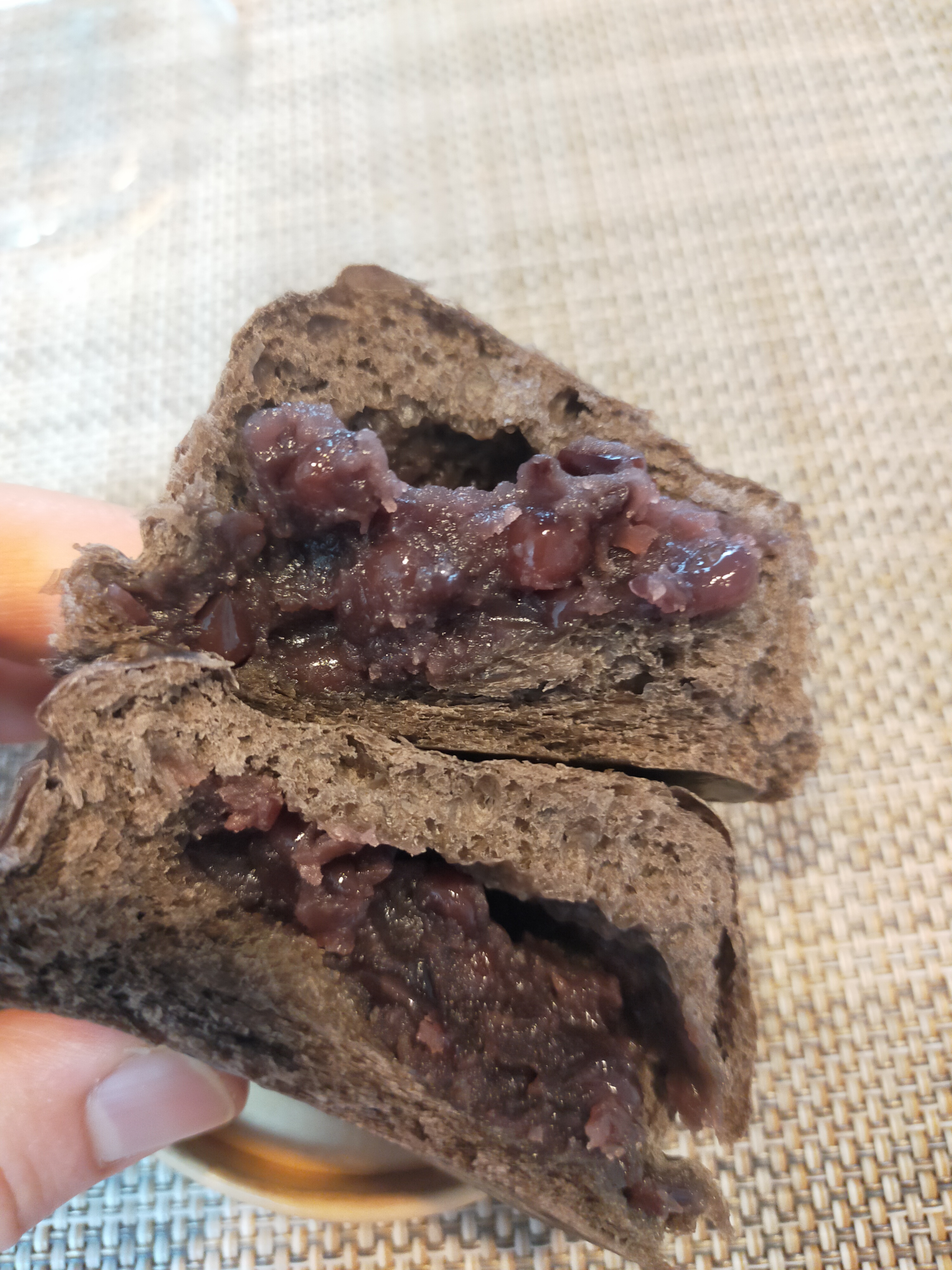 シルクハットの黒あんパンは自然解凍でいただきました。生地はやはりしっとりしています。中のあんも丁度よい甘さで美味しいです。半分に切ってみてわかりましたが、あんが上の方に入っているのでパンとあんのバランスが良かったです。シルクハットだけあって、帽子の微妙な窪みなど作る方のこだわりを感じました