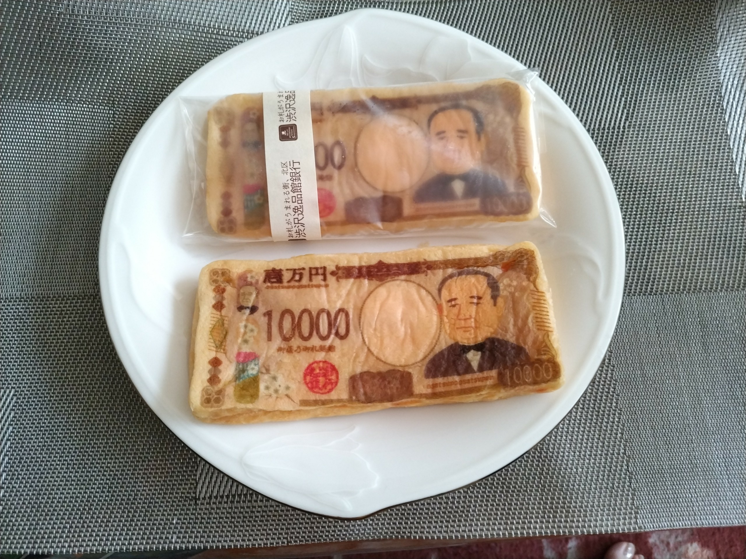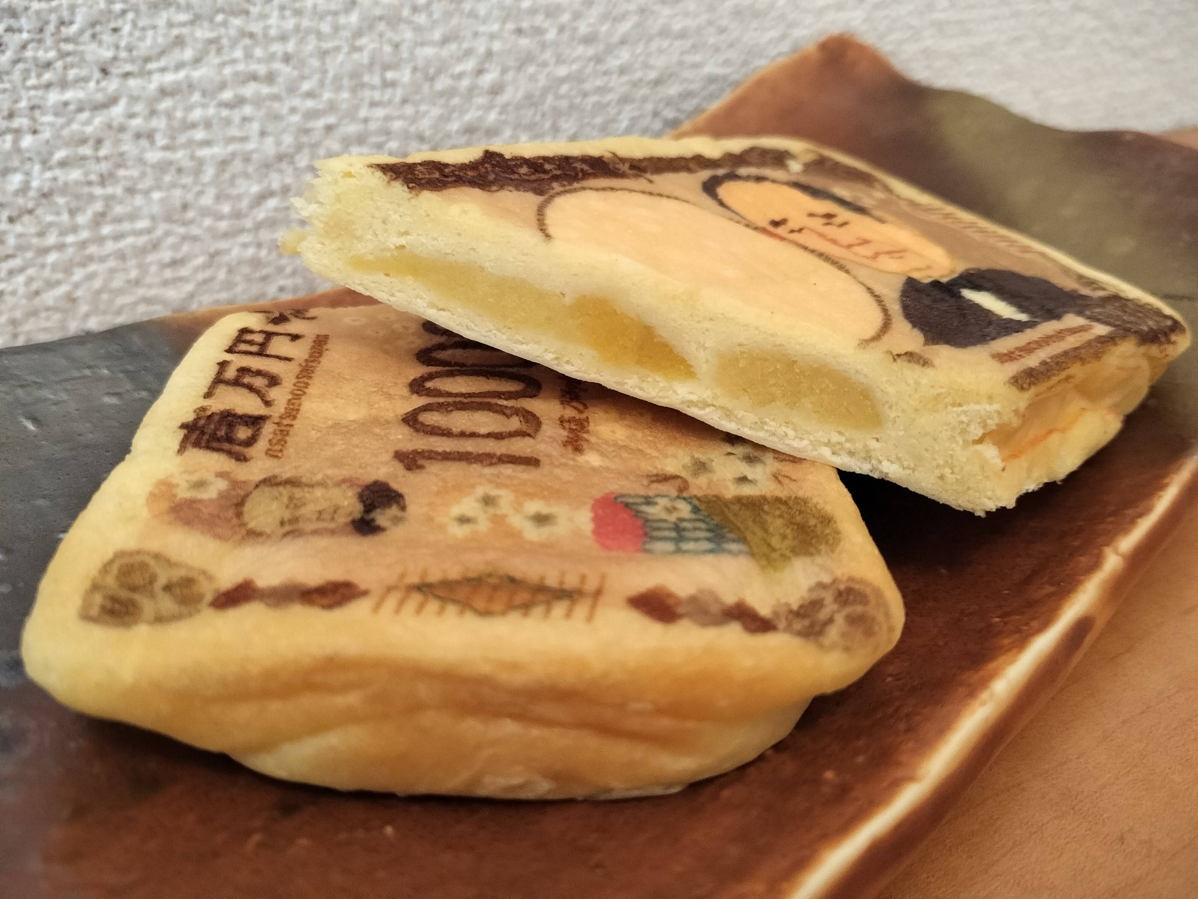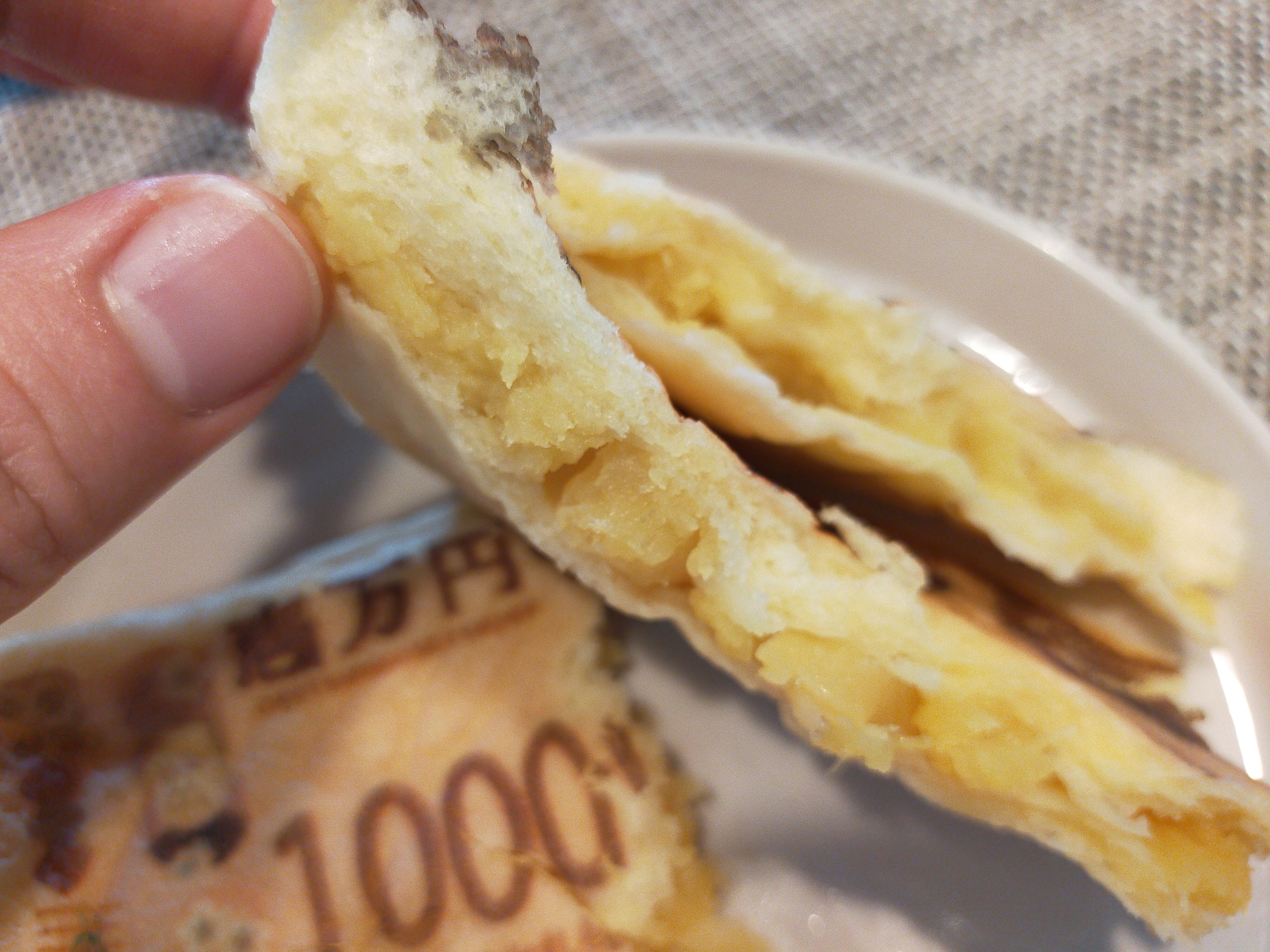 一番目を引いたお札パンは、冷凍なので解凍は常温の部屋(15〜20℃)で5時間ほどで解凍でき、レンジで15秒ほど温めるだけです。生地は思っていた以上にシットリしています。スィートポテト?甘くて美味しいサツマイモの風味が口いっぱいに広がりました。しっとり感とサツマイモの甘さ。こうきたか!!!バター風味も加わりアッパレです。美味しいです。黒カレーパンはステッキをイメージしてます。説明書通りレンジで温めオーブントースターで2分ほど焼きました。カレー好きなので、カレーの香りだけでワクワク感が増します。カレーは辛すぎず。甘すぎず。丁度よいカレー味です。ステッキをイメージした、細長い形は食べやすかったです。