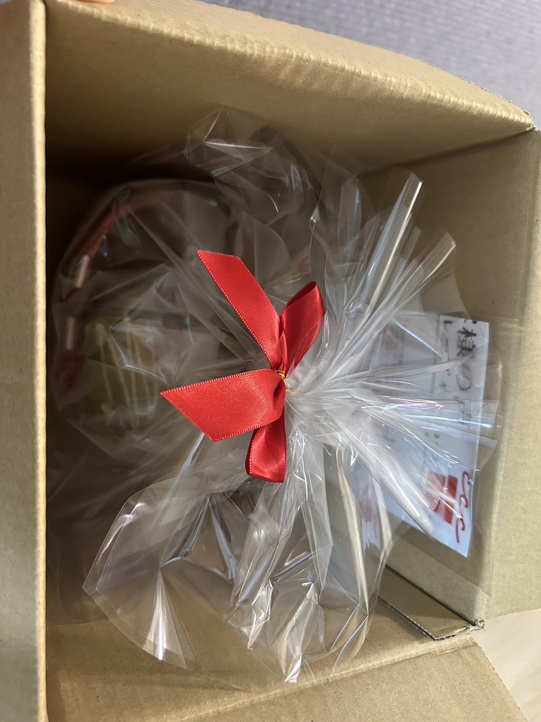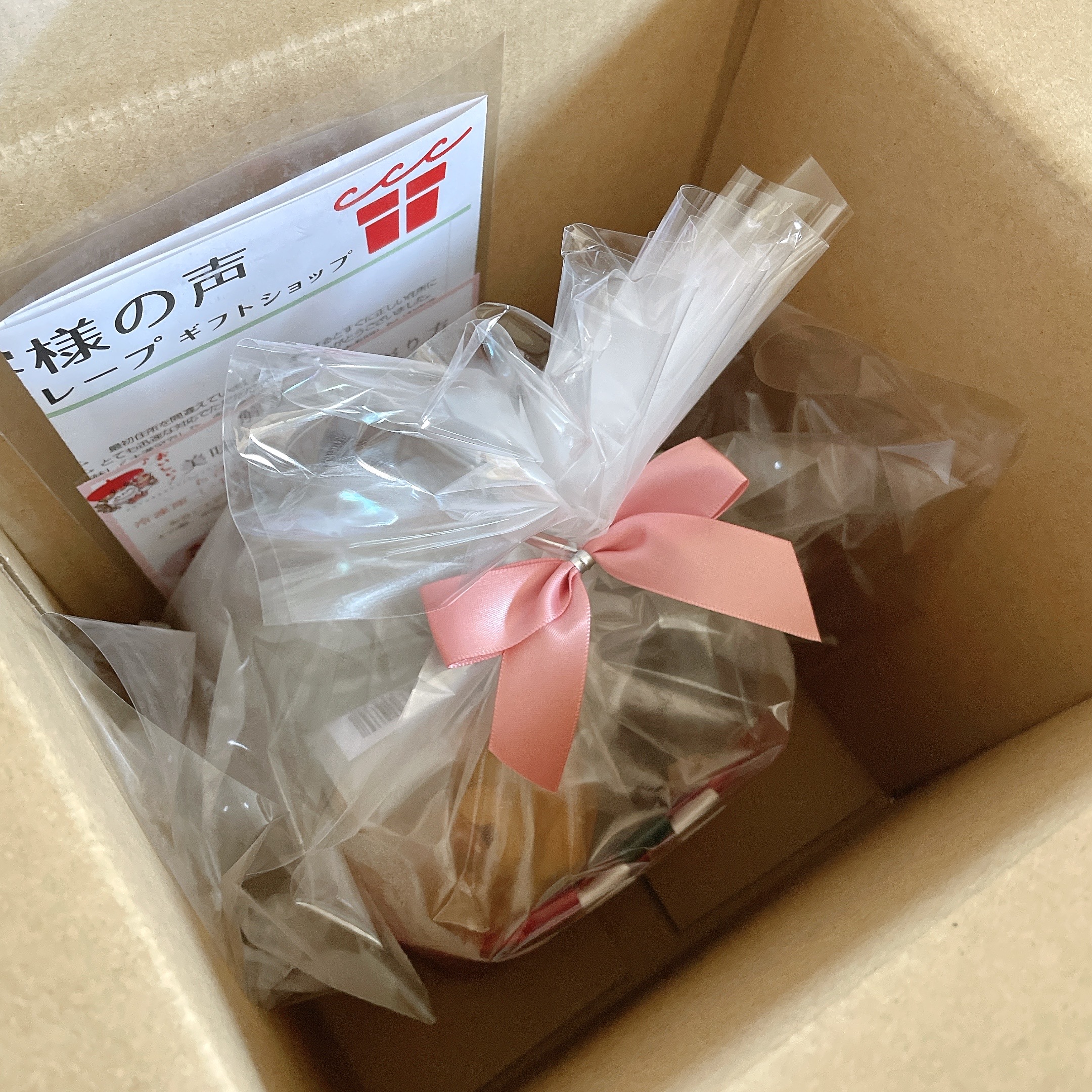 箱を開けた時まるで花束のような大きなリボンのついたラッピングにうっとり。