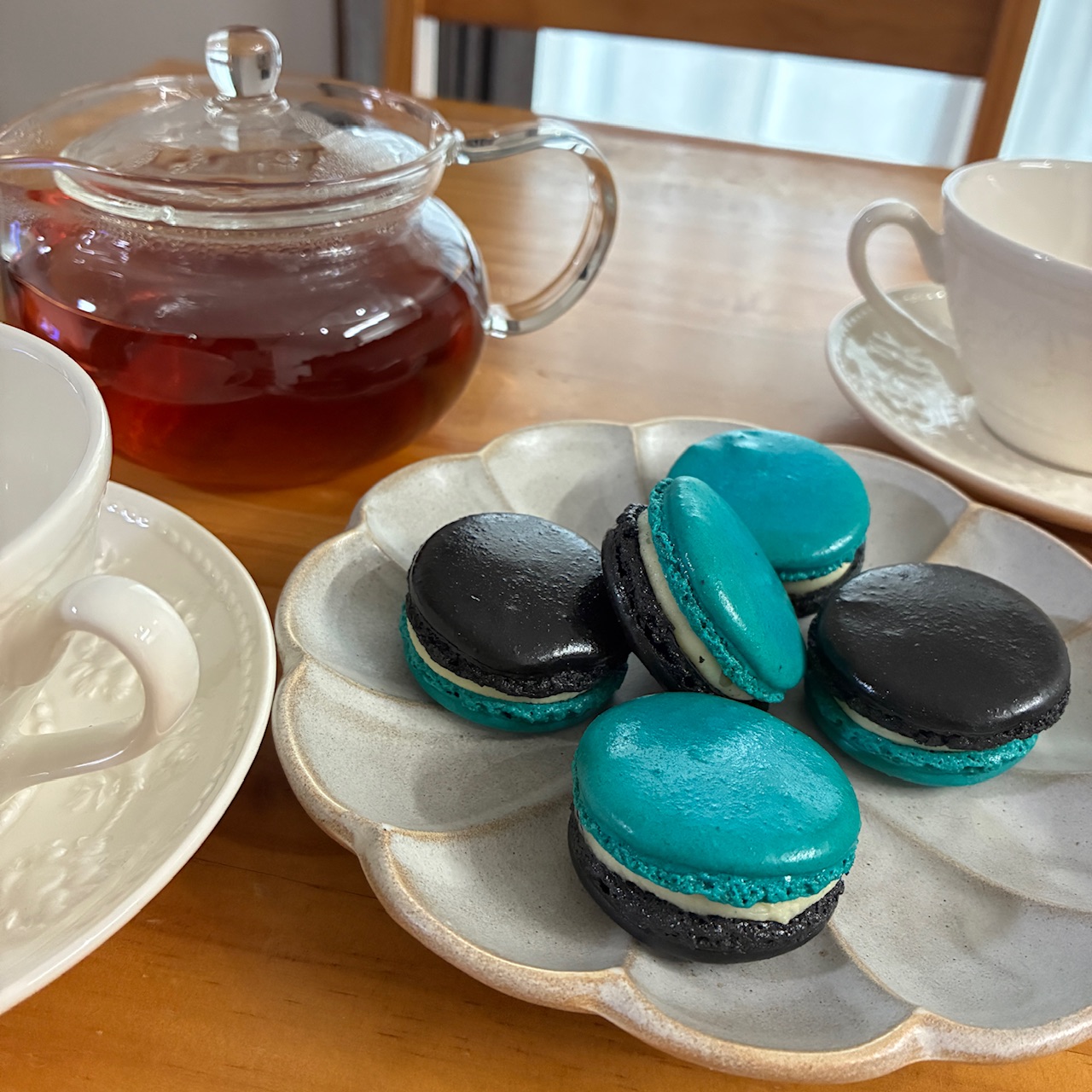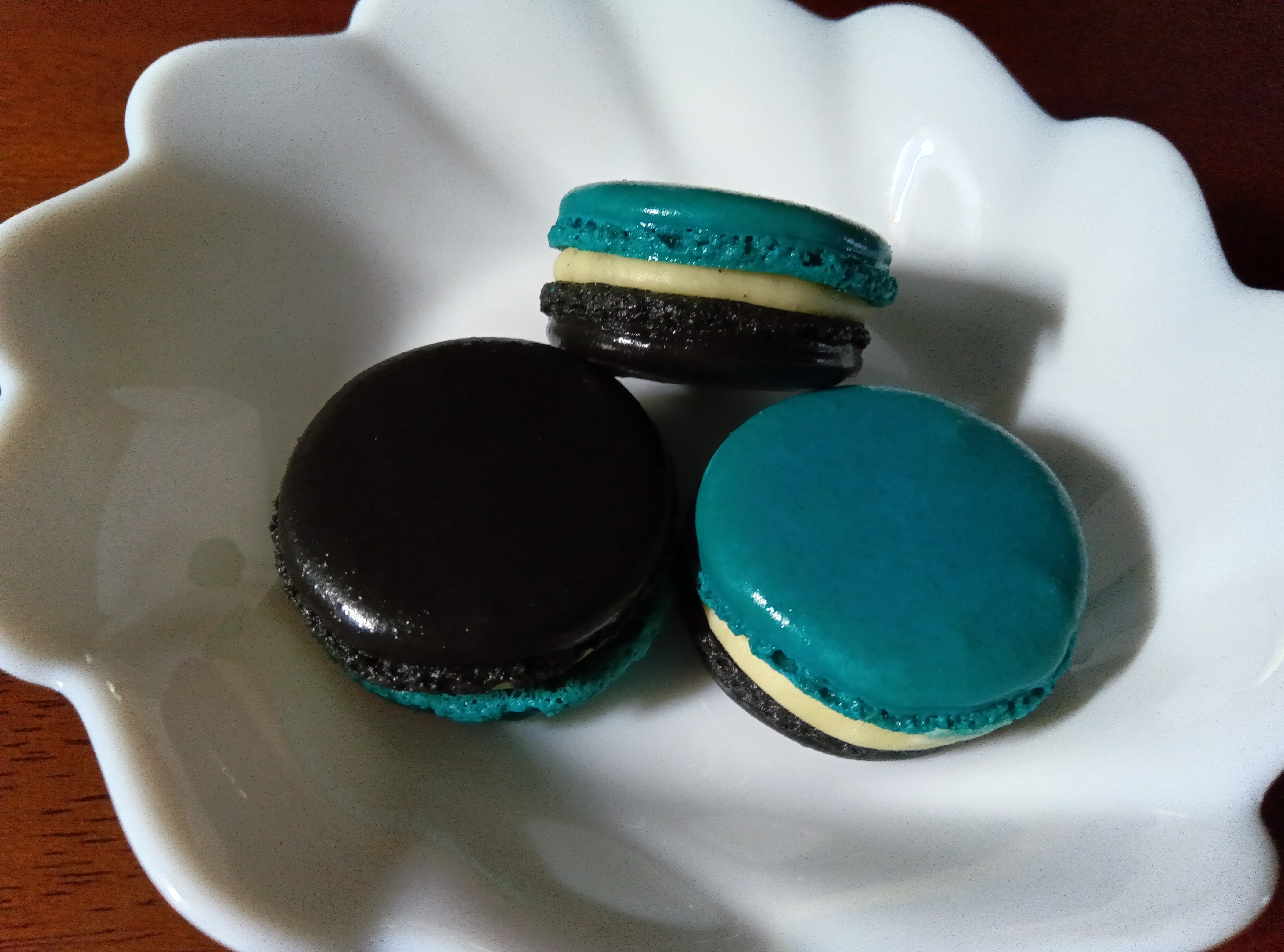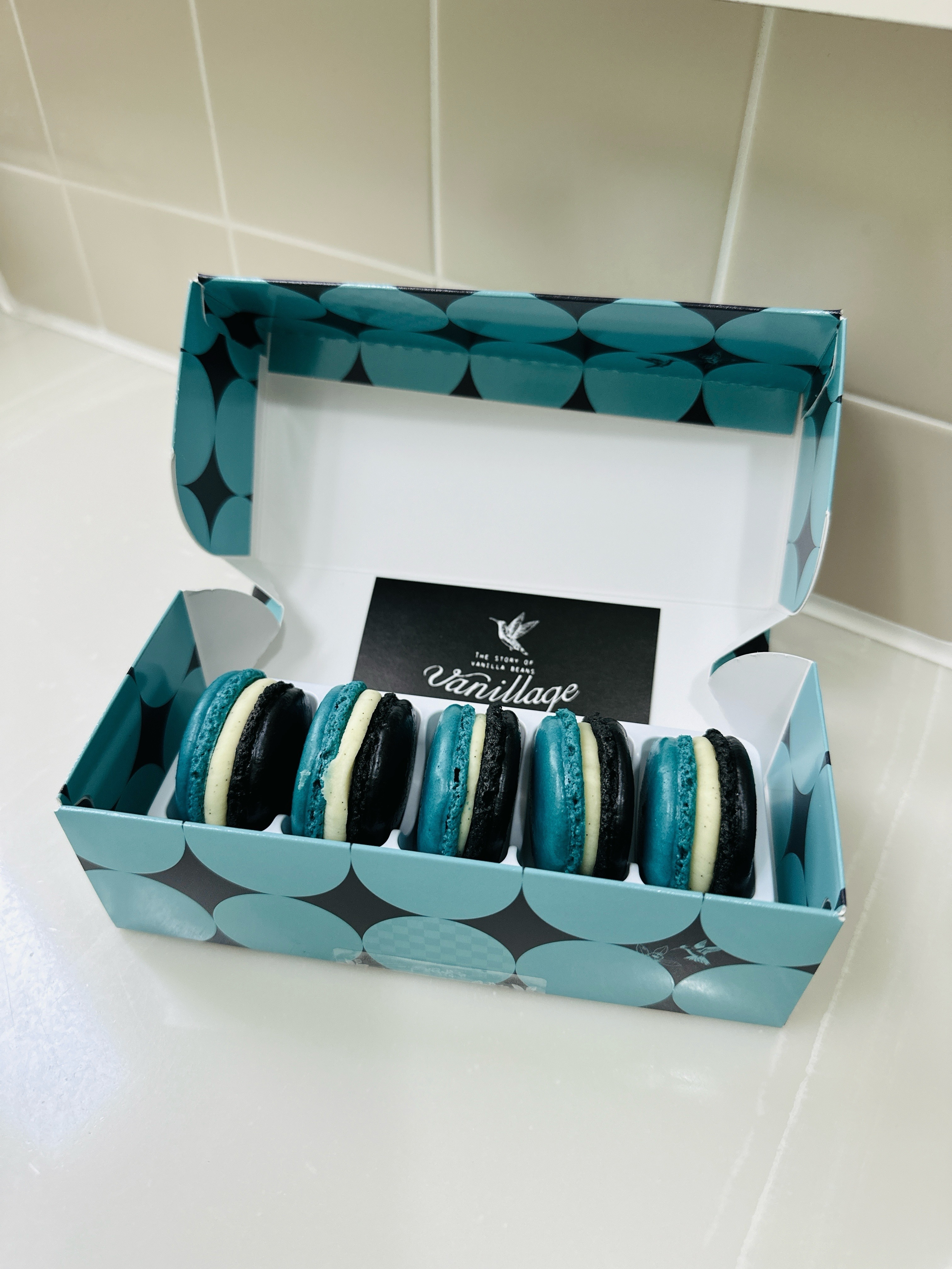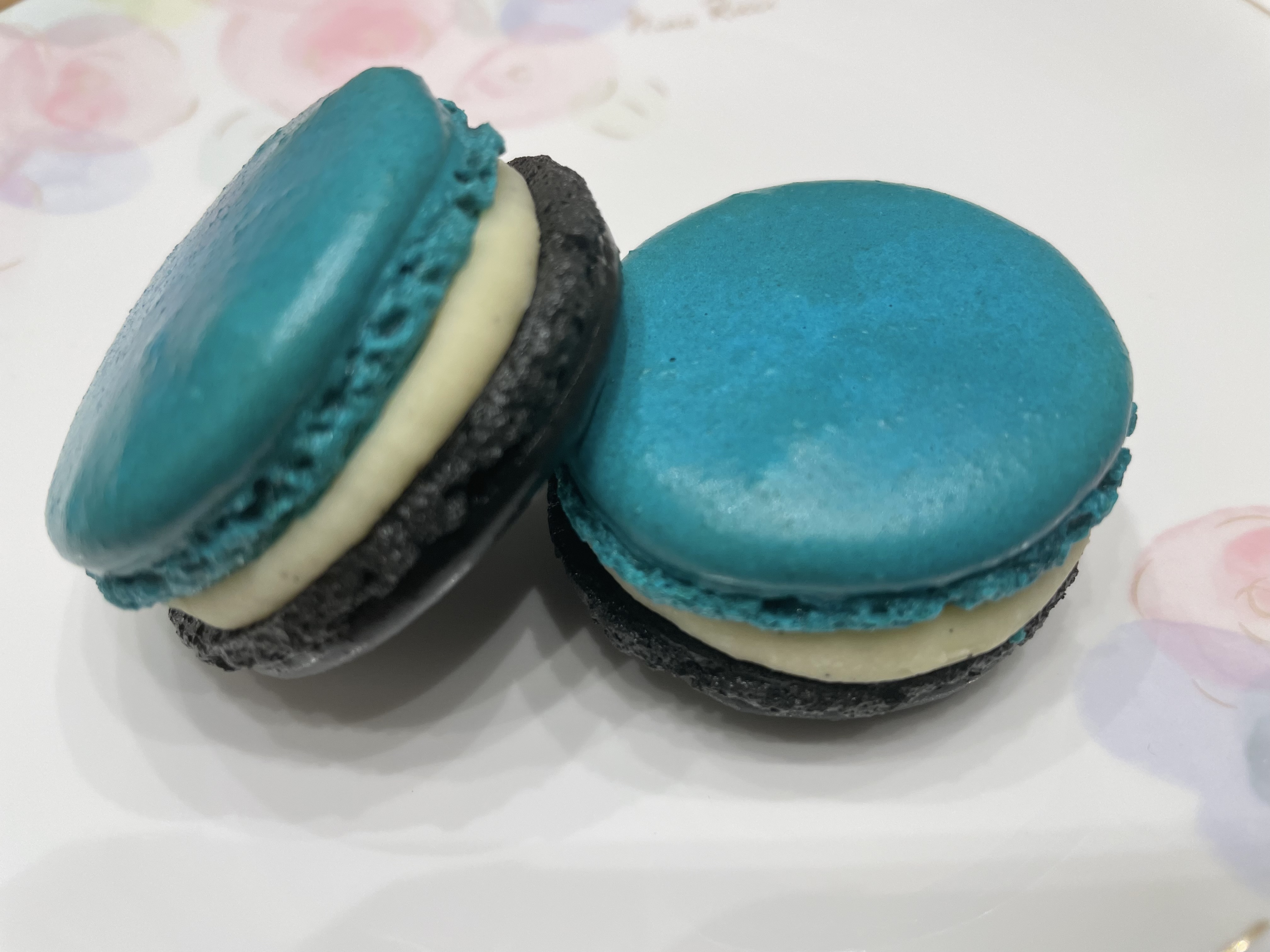 箱を開けると、初めて見る青と黒のマカロンがこれまた可愛らしくて。