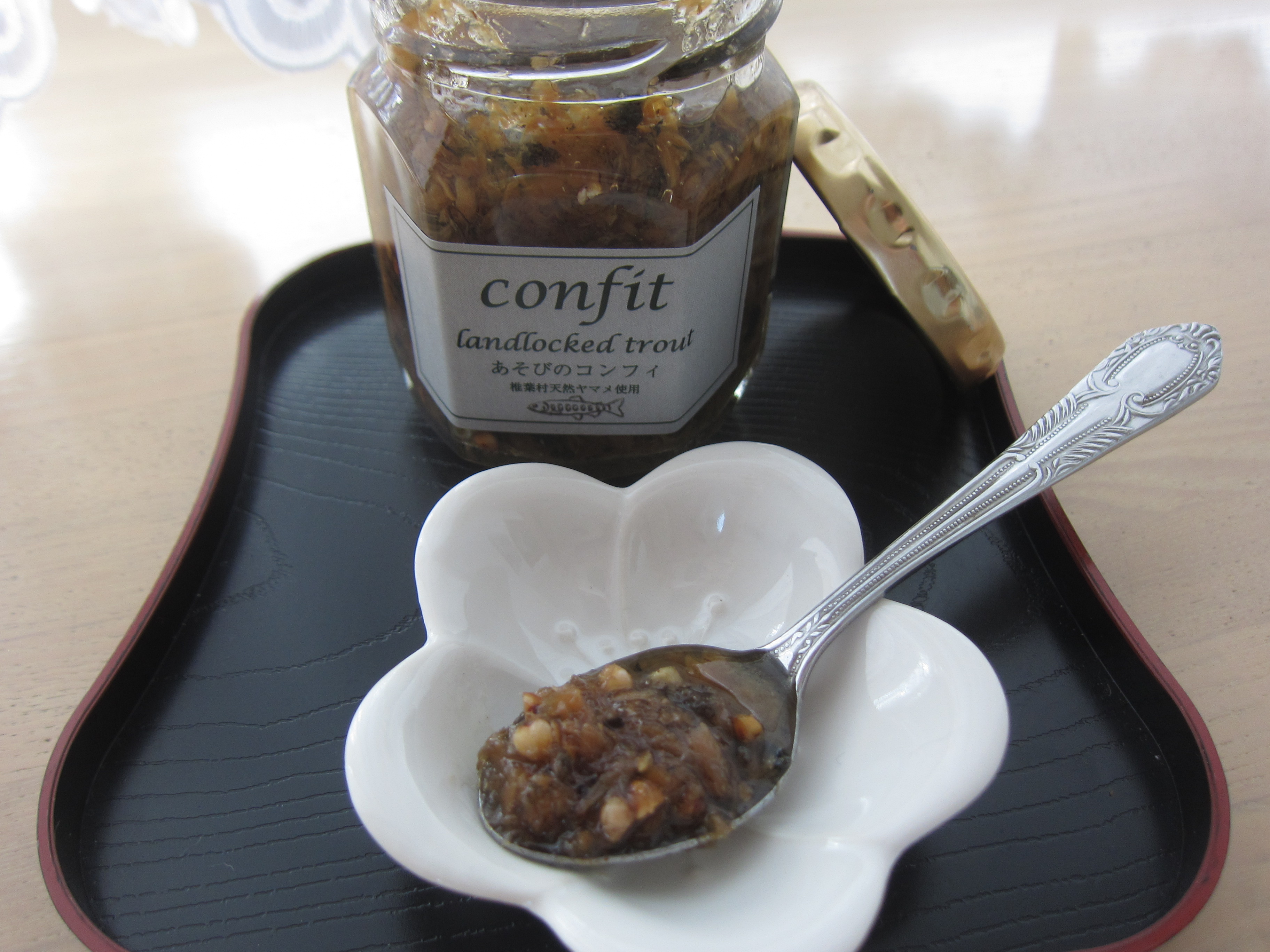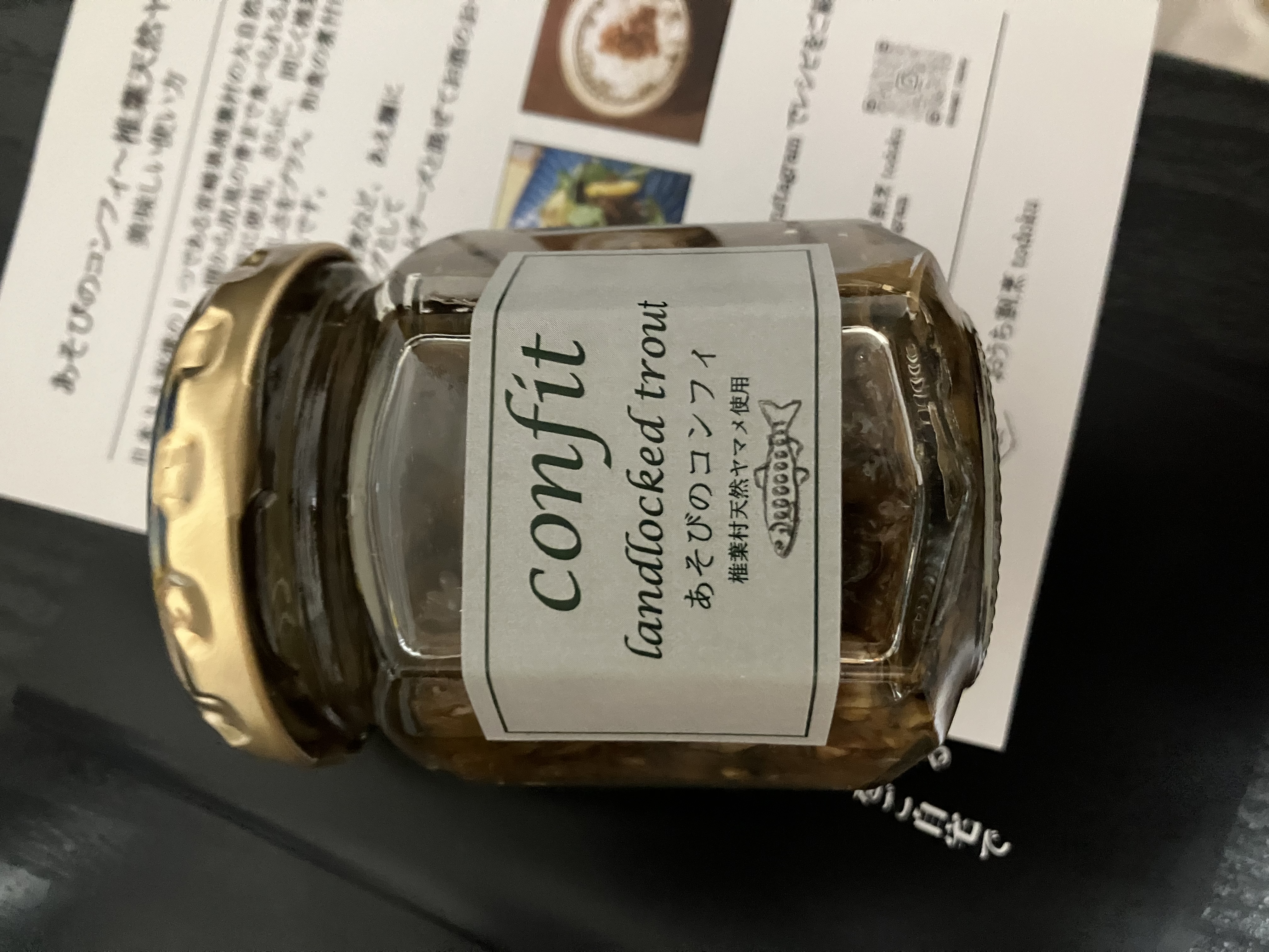 東神田「あそび割烹 さん葉か」、人形町「炭手前 鷽」の料理人が考案した「ヤマメの瓶詰め」です。日本の3大秘境の1つである宮崎県椎葉村の大自然の中で育った天然のヤマメを、1瓶に1尾贅沢に使用し、頭から尻尾の骨まで食べられるようじっくりと煮込んで作り上げました。さらに、椎葉村の炒った蕎麦の実を加え、香ばしさをプラス。和食の煮付けをイメージした醤油ベースの佃煮の様な商品。そのままでご飯のおかずやお酒のおつまみに、また、和え麵やサラダのトッピングなど、幅広く利用でき便利です。